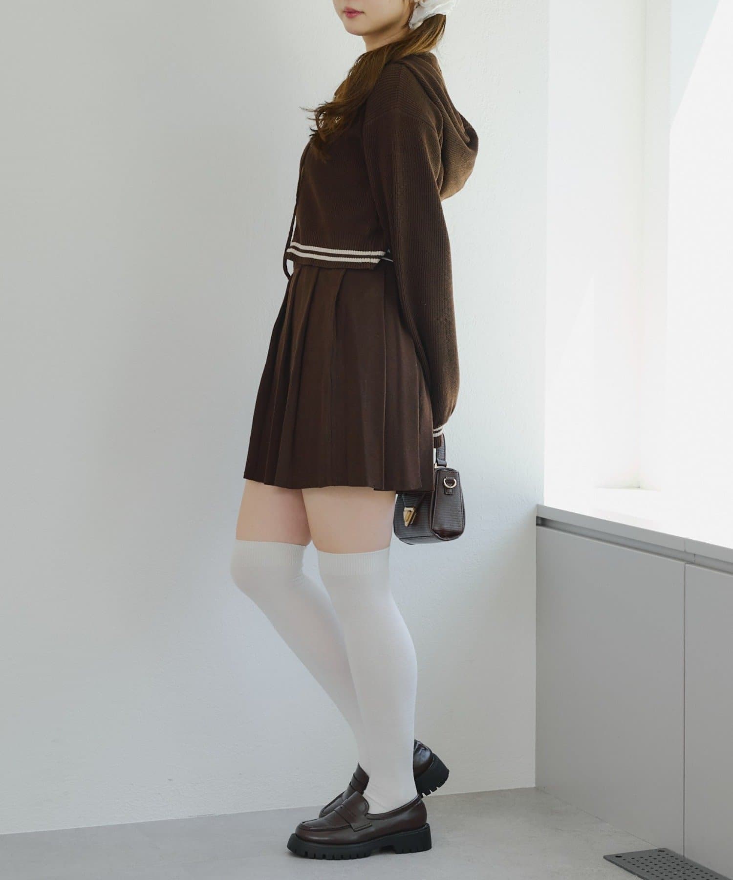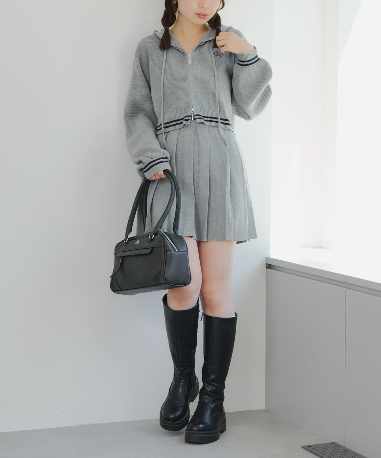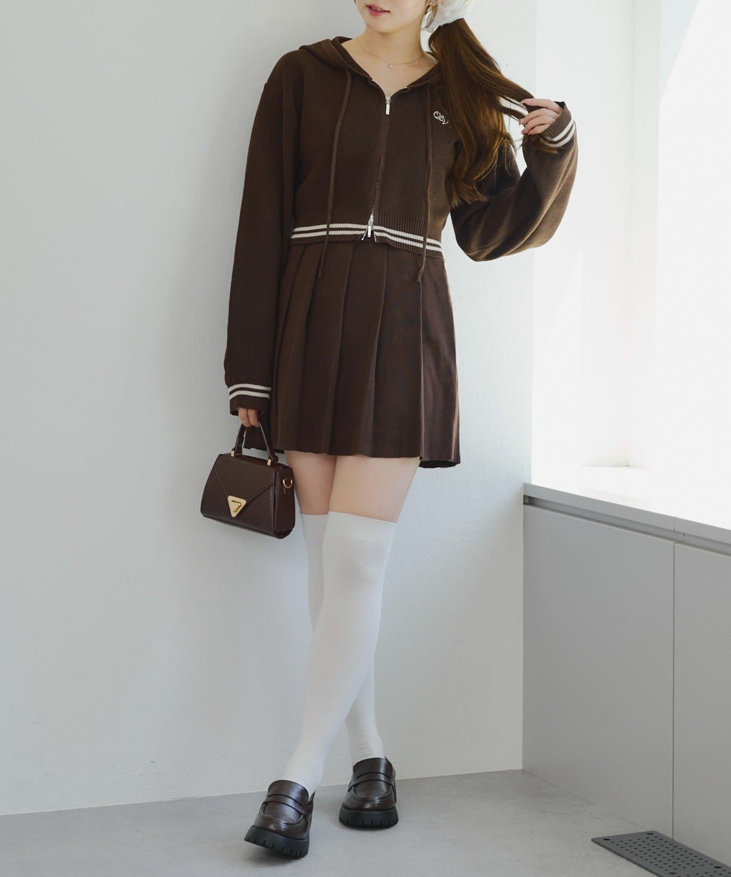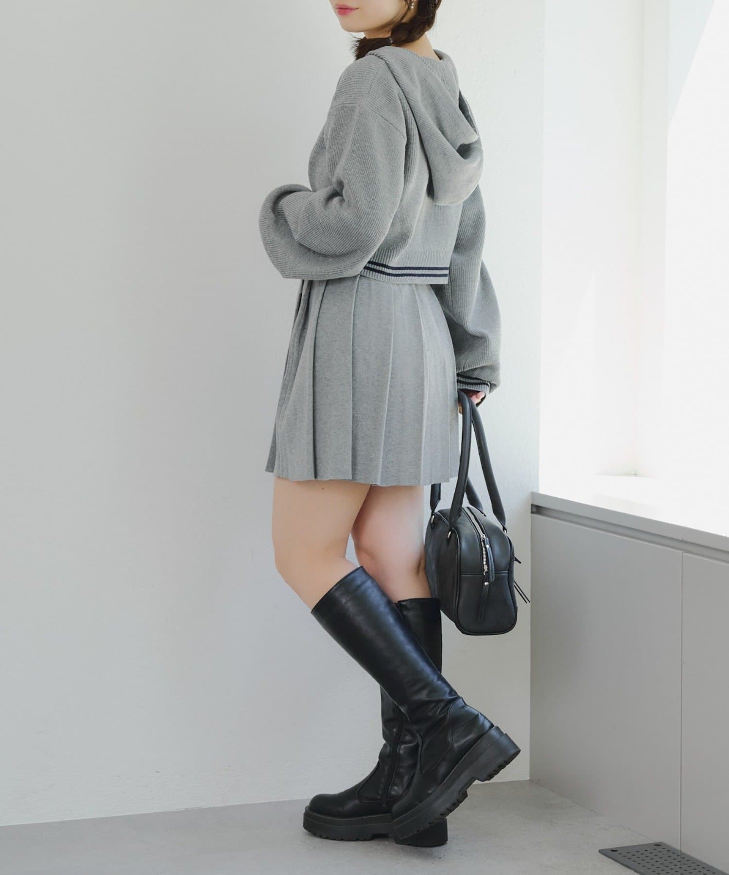 ・パーカーとスカートのニットセットアップ
