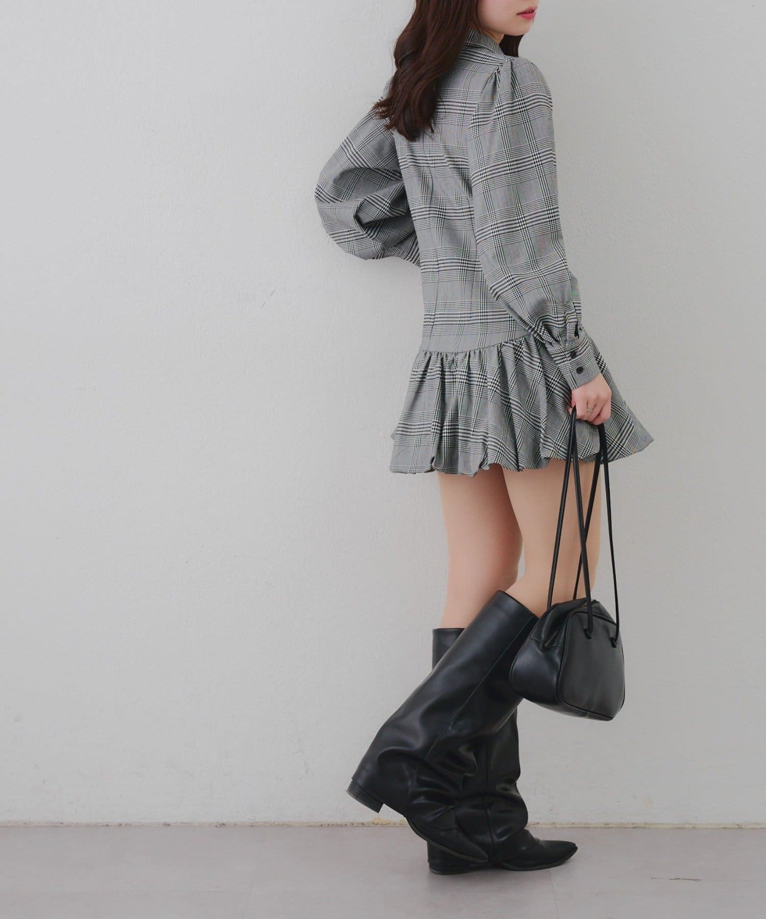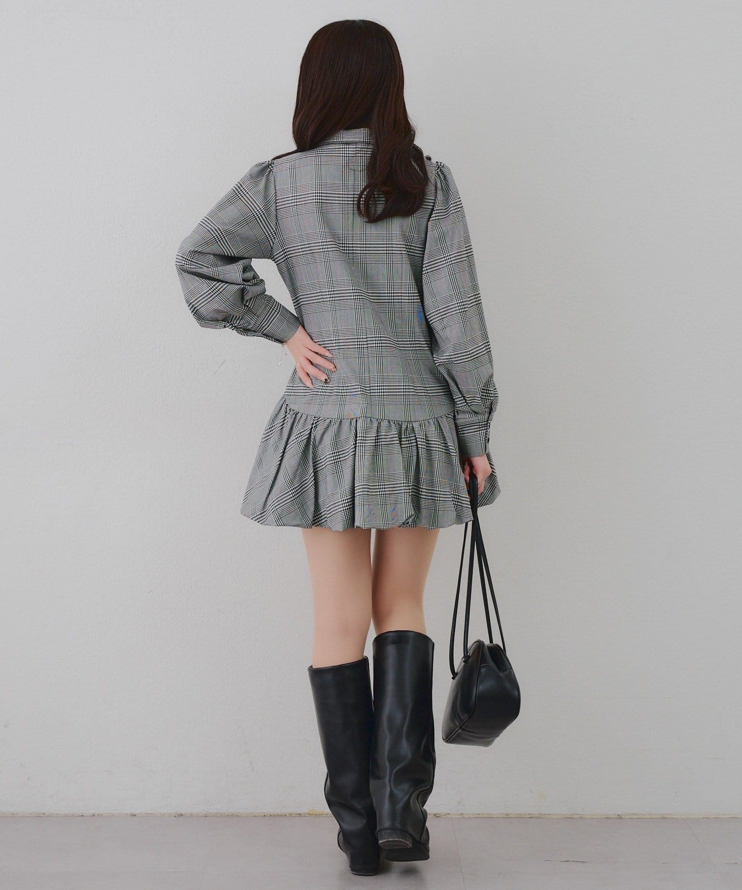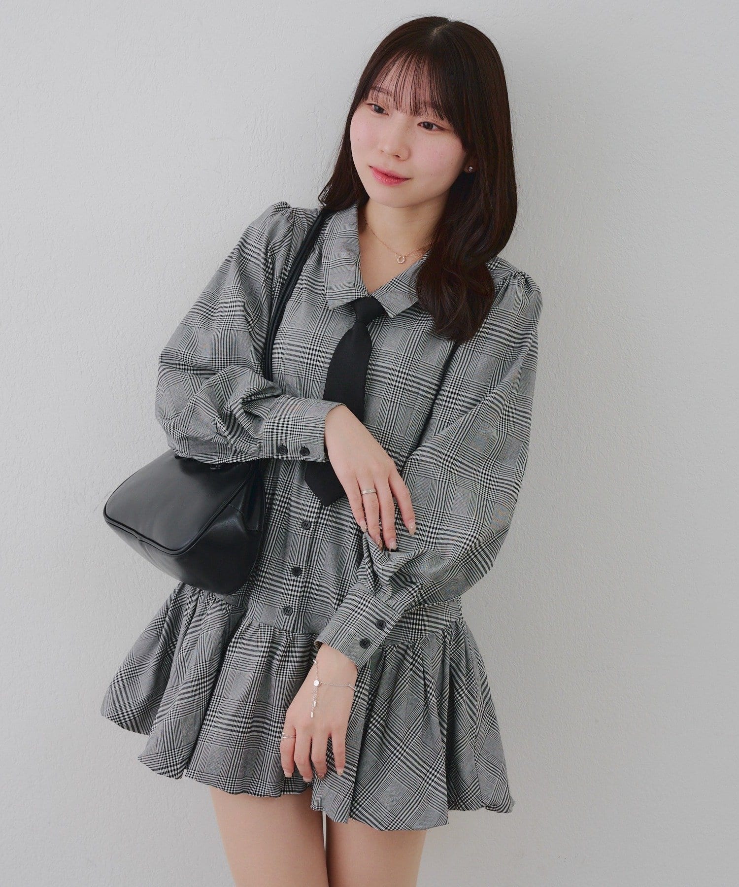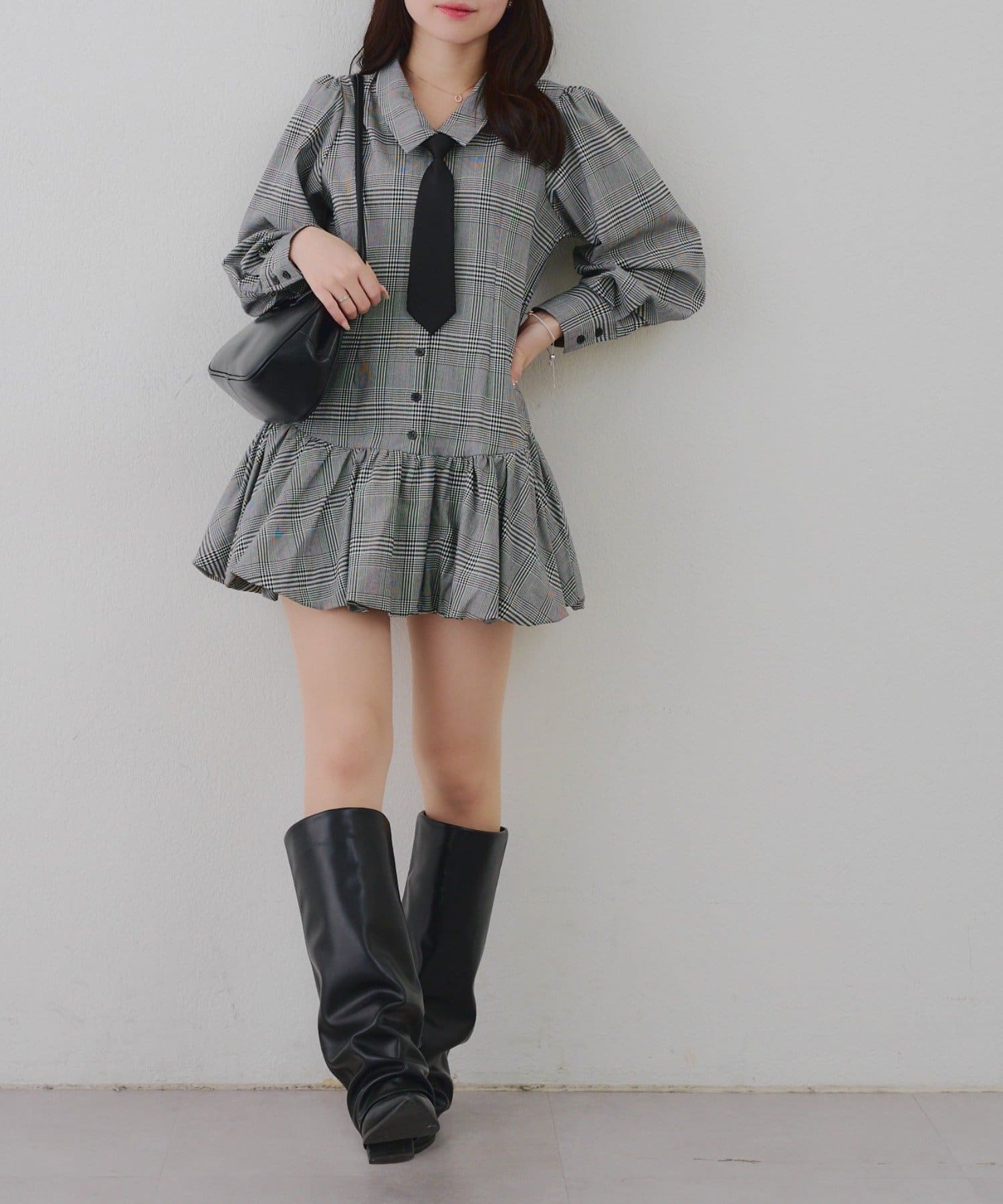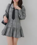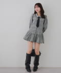 【RMAF】ネクタイ付裾バルーンミニワンピース