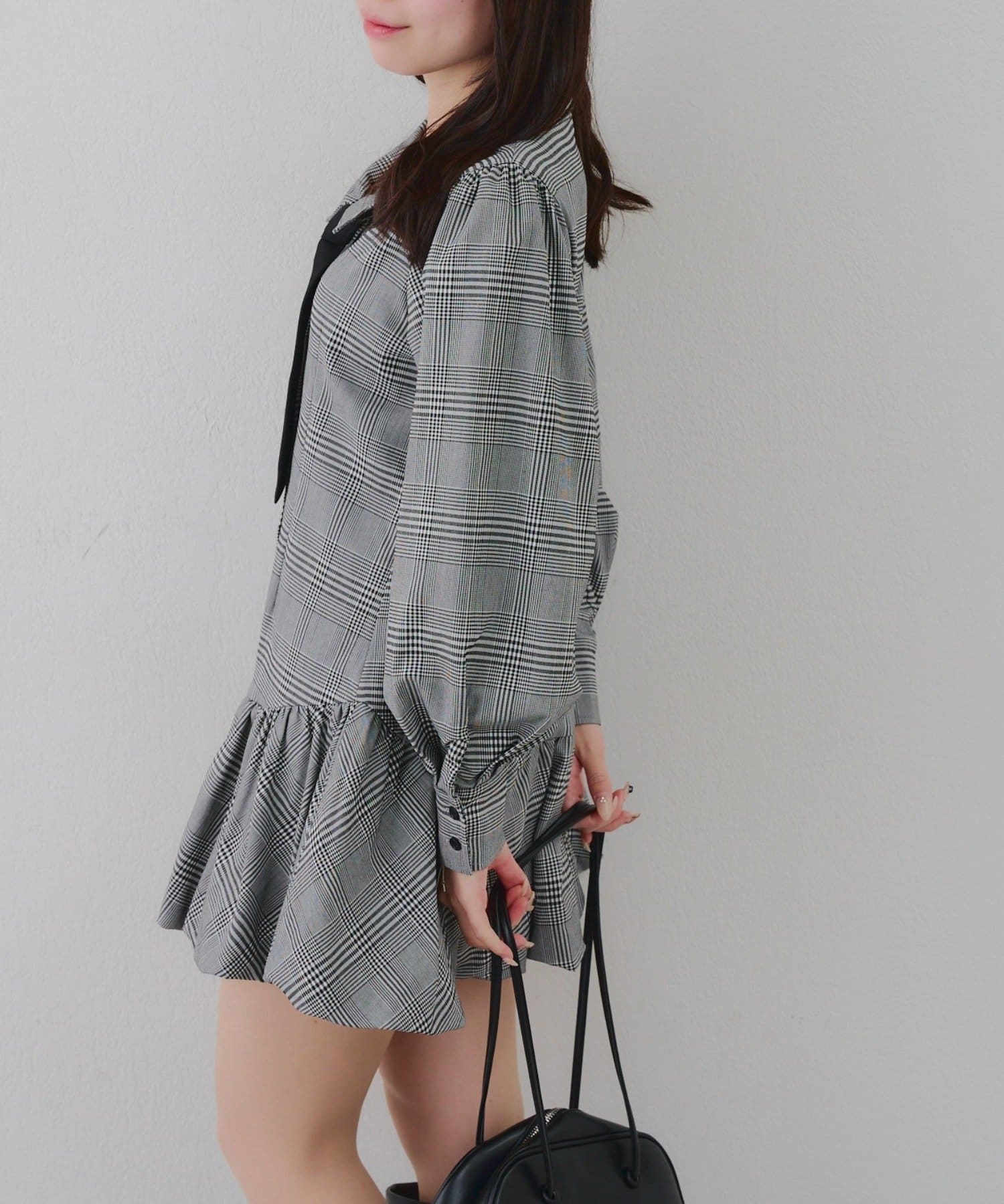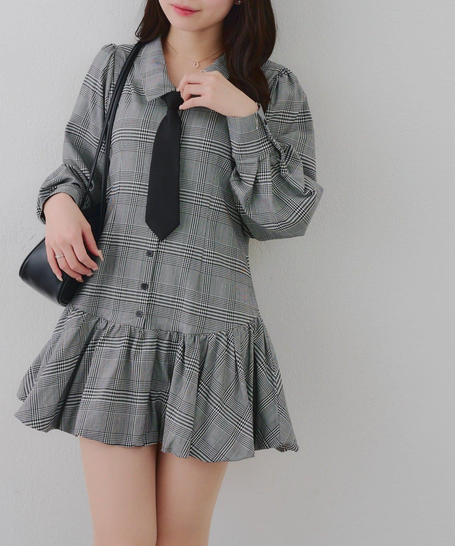 ・ネクタイ付きでクラシカルな雰囲気のトレンドワンピース