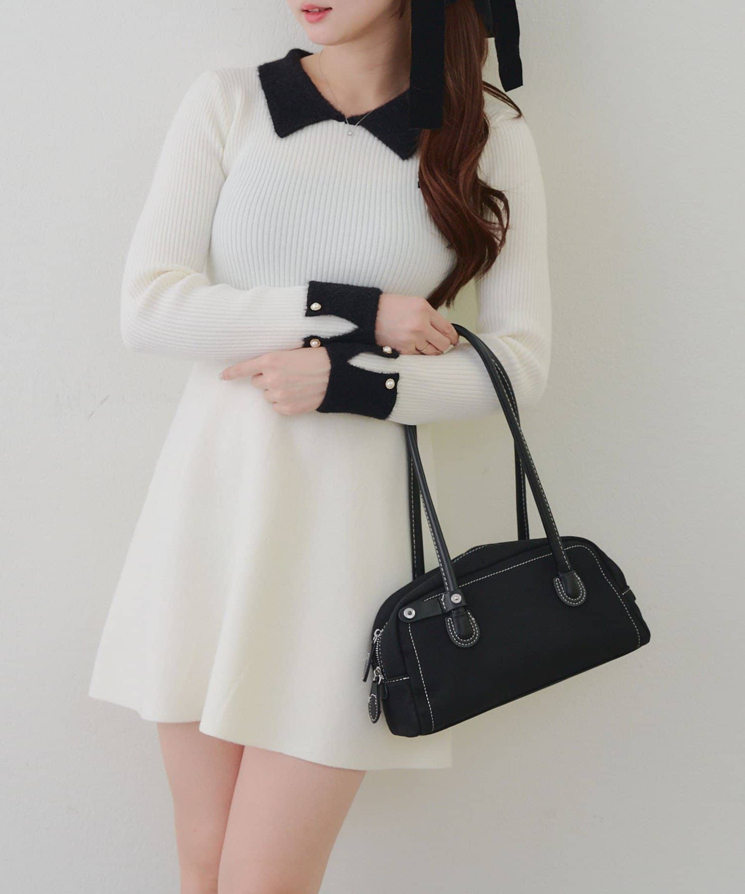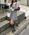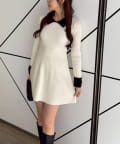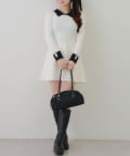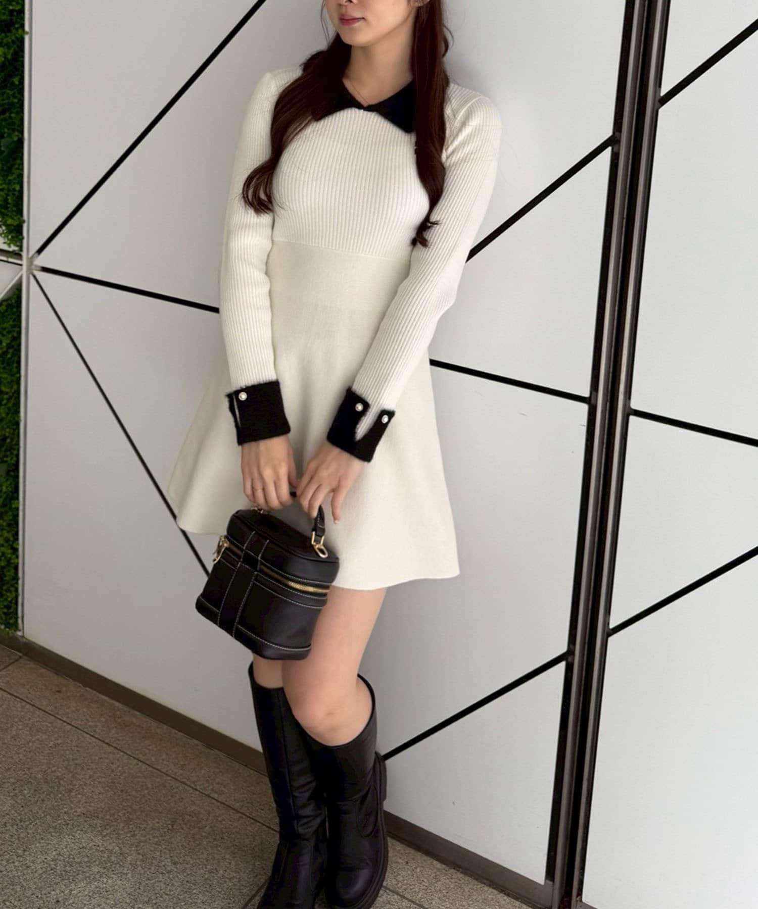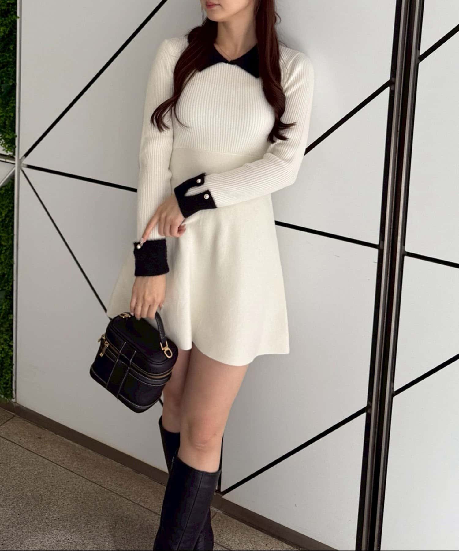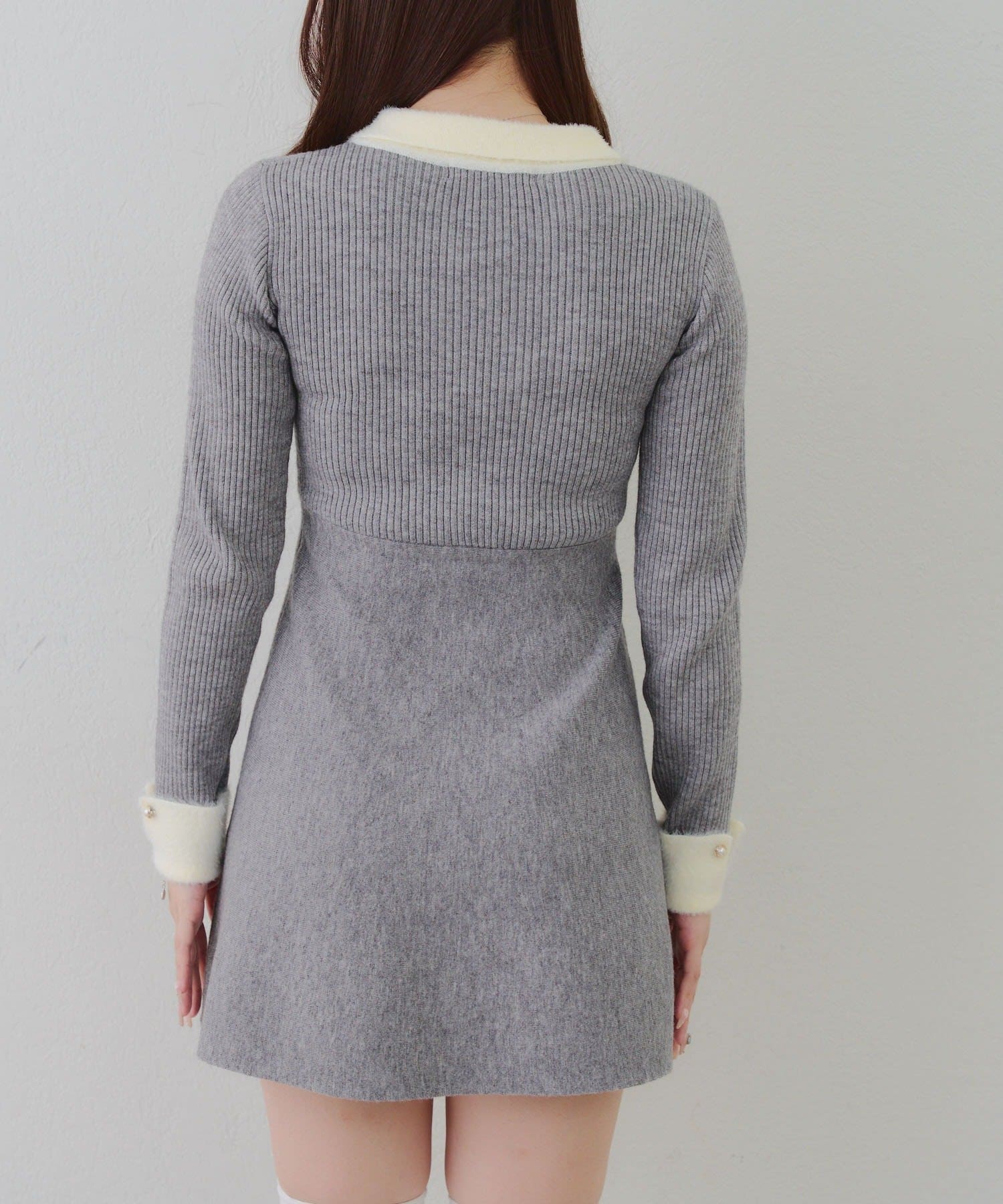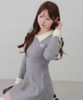 TOP > NICE CLAUP / OLIVE des OLIVE OUTLET > レディース > ワンピース > ワンピース > 【RMAF】フェザー衿リブニットワンピース