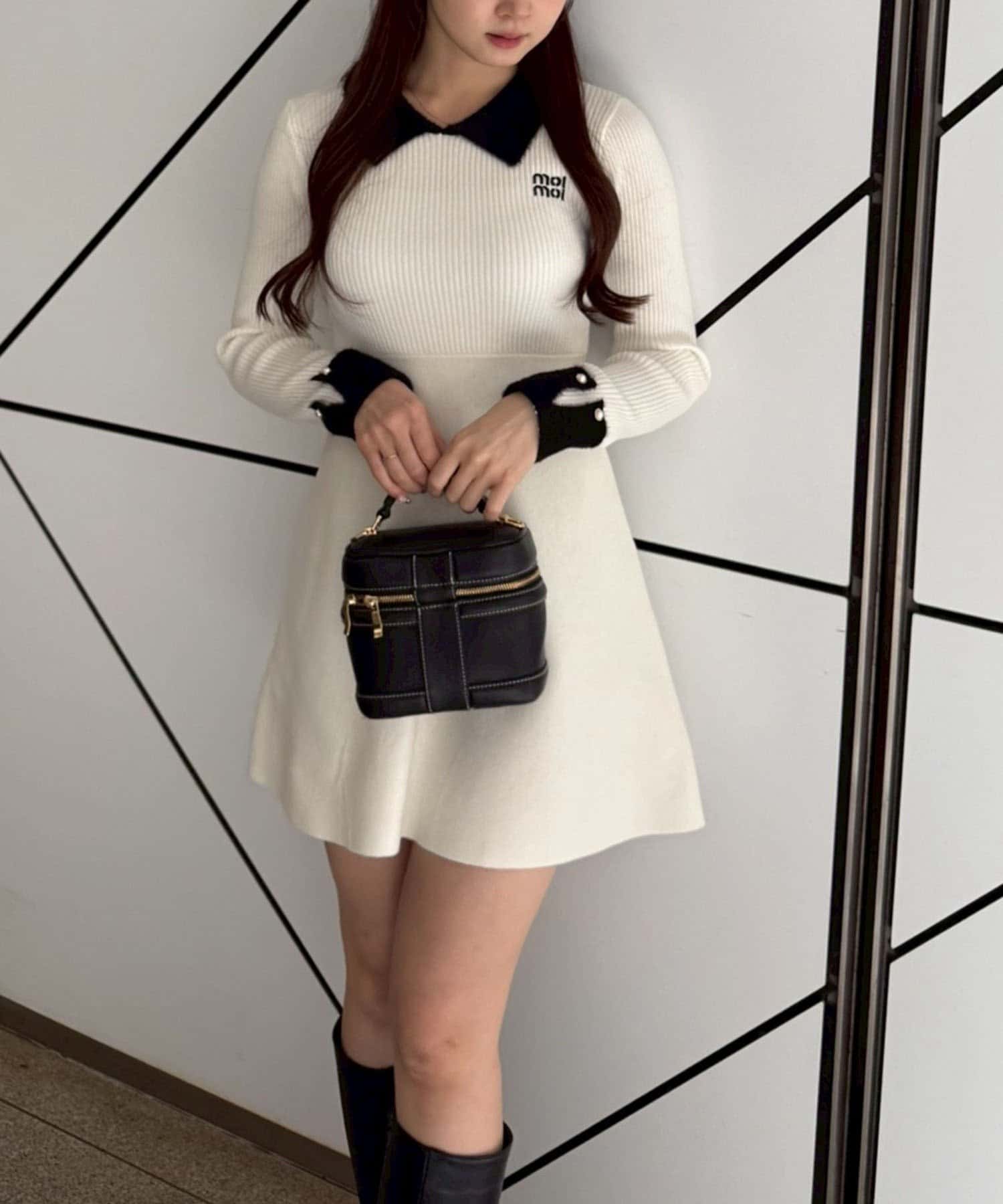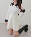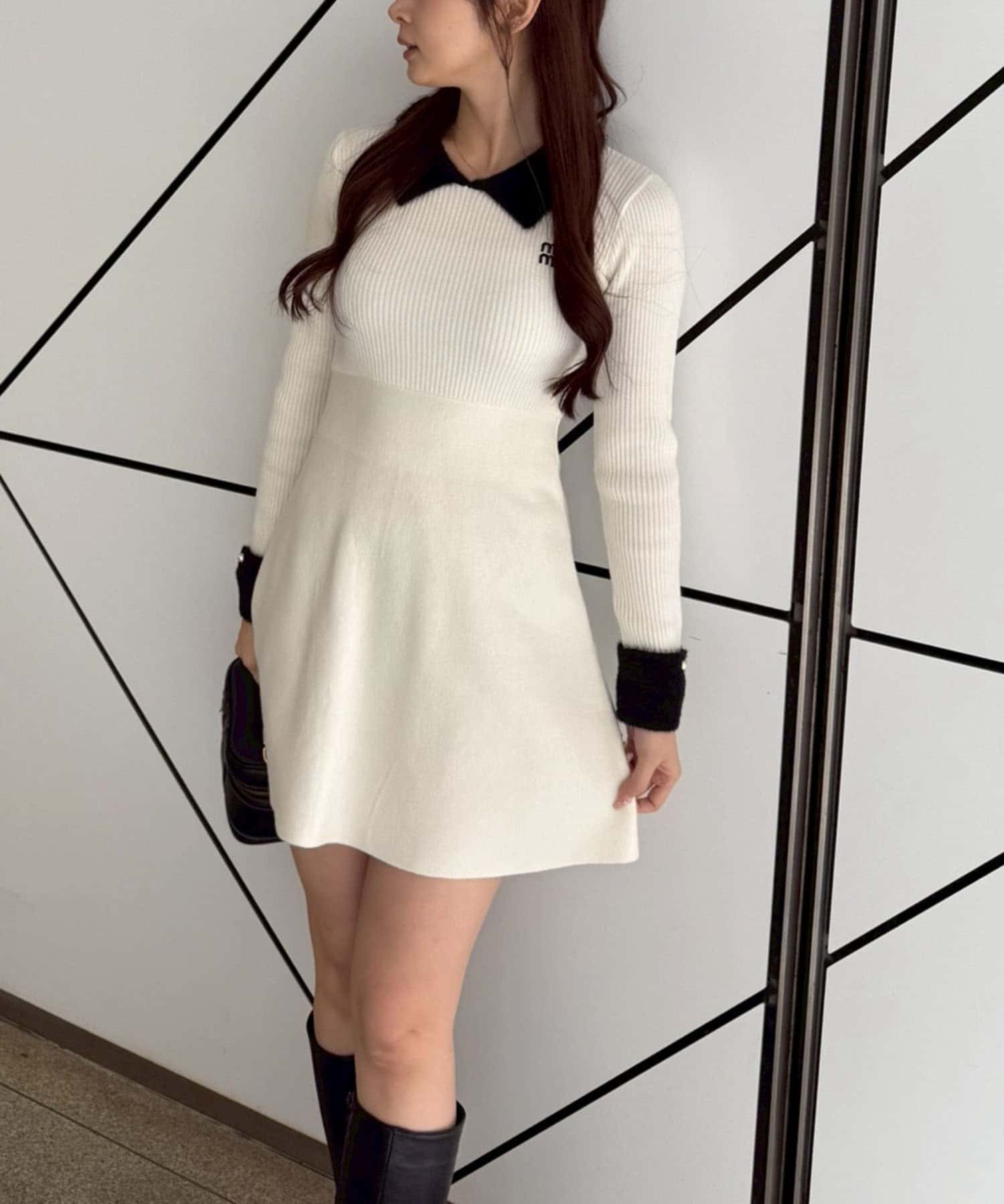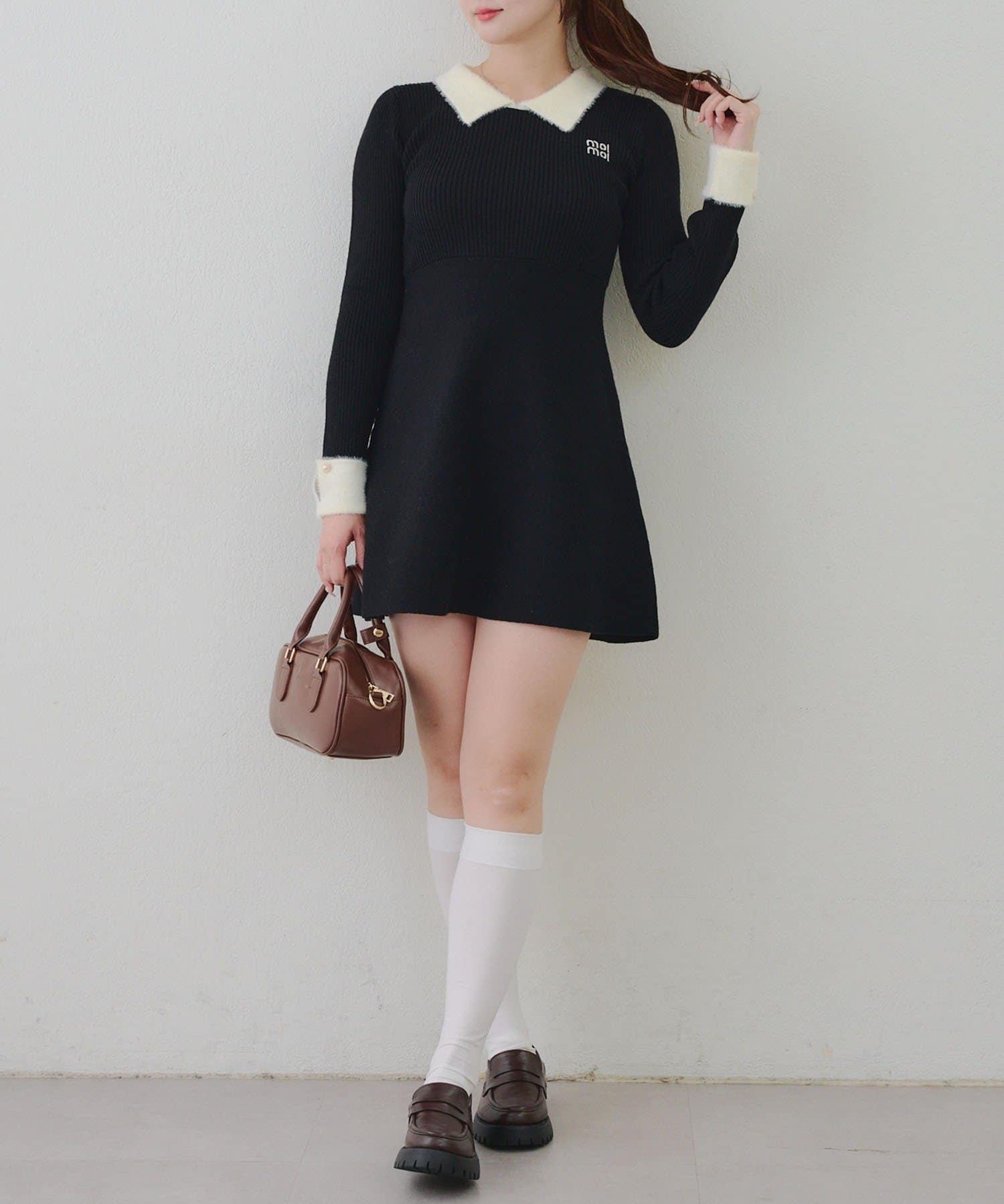 NICE CLAUP / OLIVE des OLIVE OUTLET(ナイスクラップ  / オリーブ デ オリーブ アウトレット) 【RMAF】フェザー衿リブニットワンピース