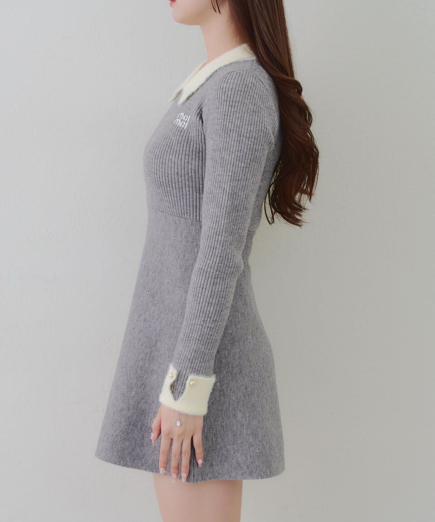 • NICE CLAUP / OLIVE des OLIVE OUTLET(ナイスクラップ  / オリーブ デ オリーブ アウトレット) 【RMAF】フェザー衿リブニットワンピース