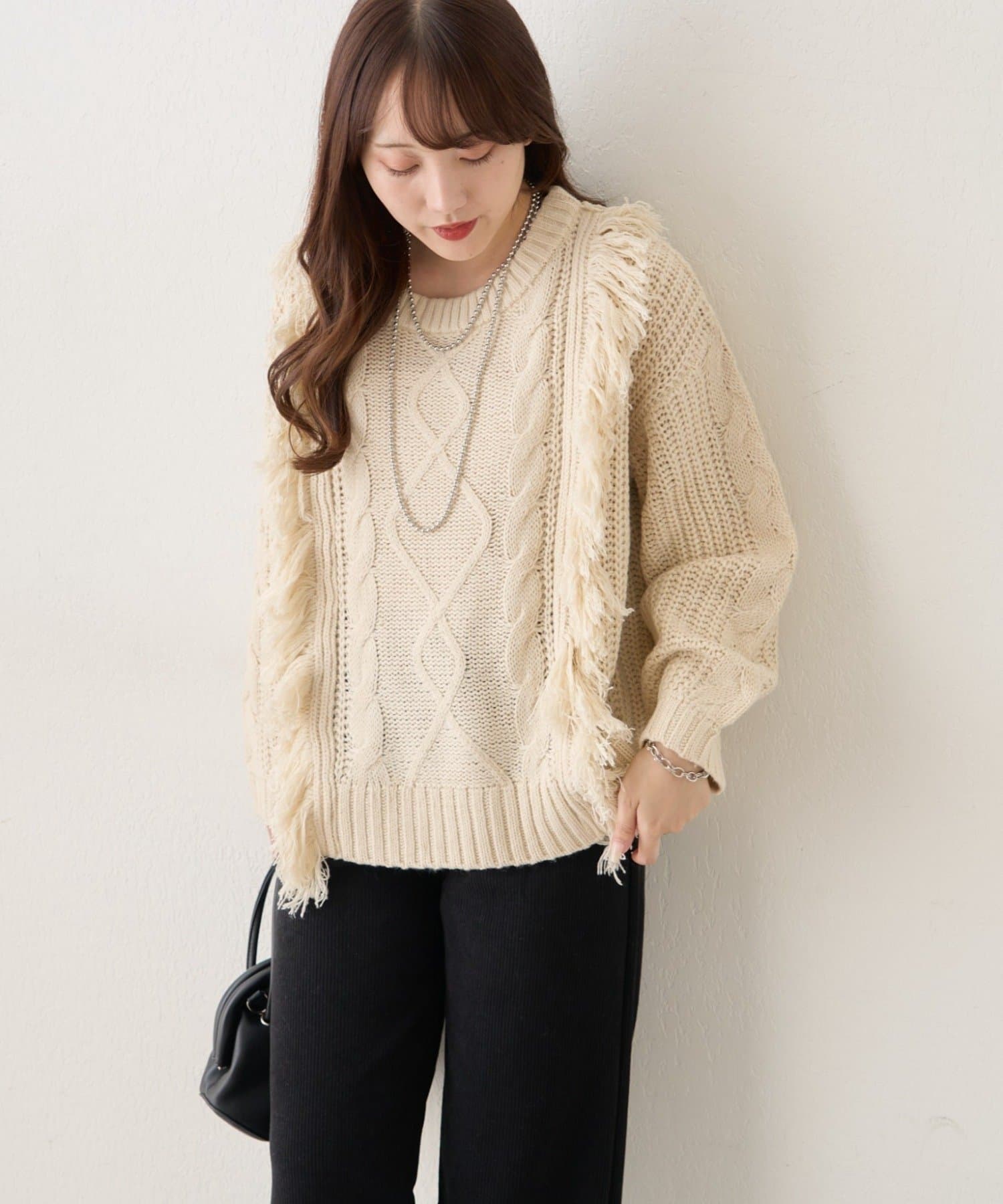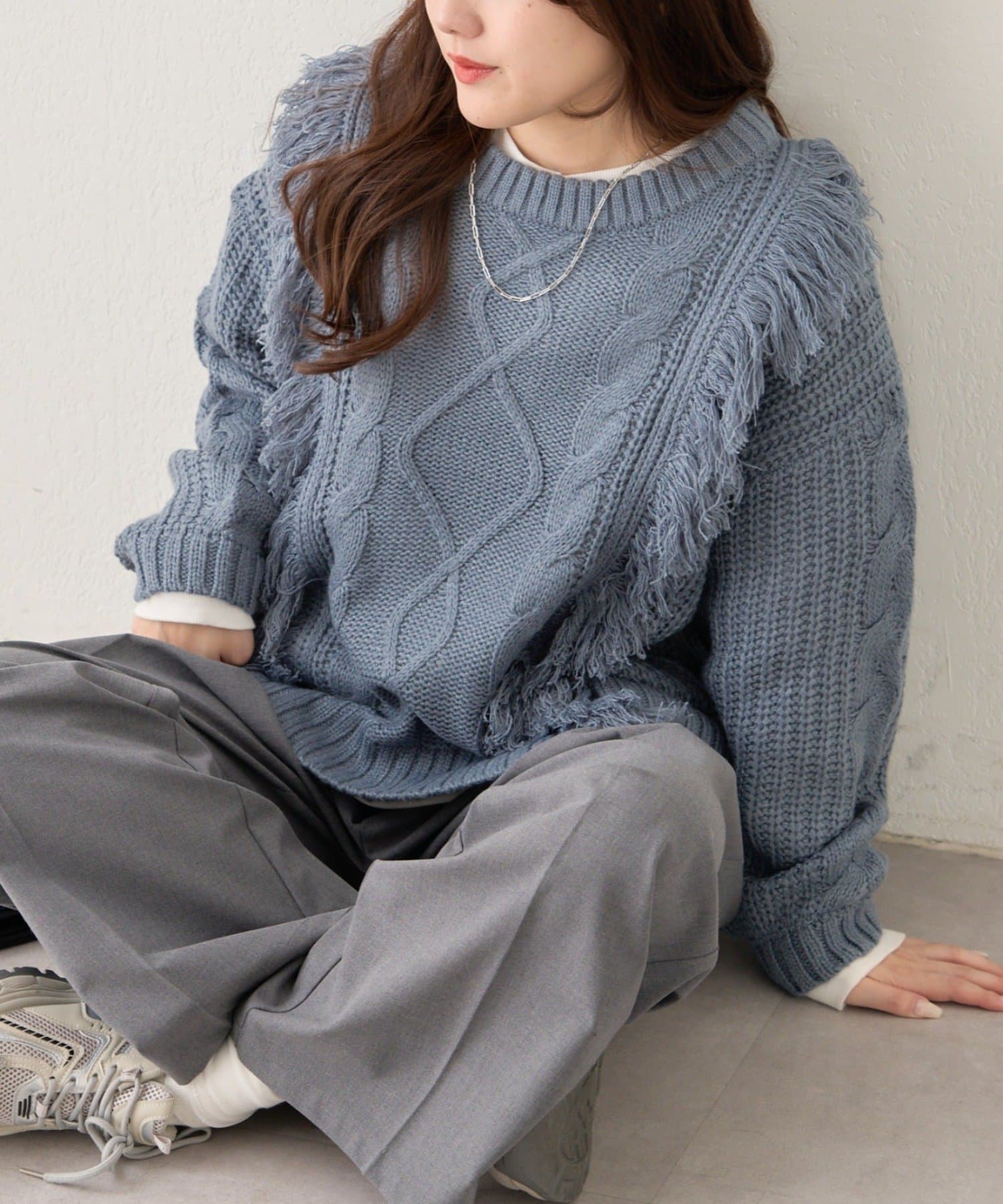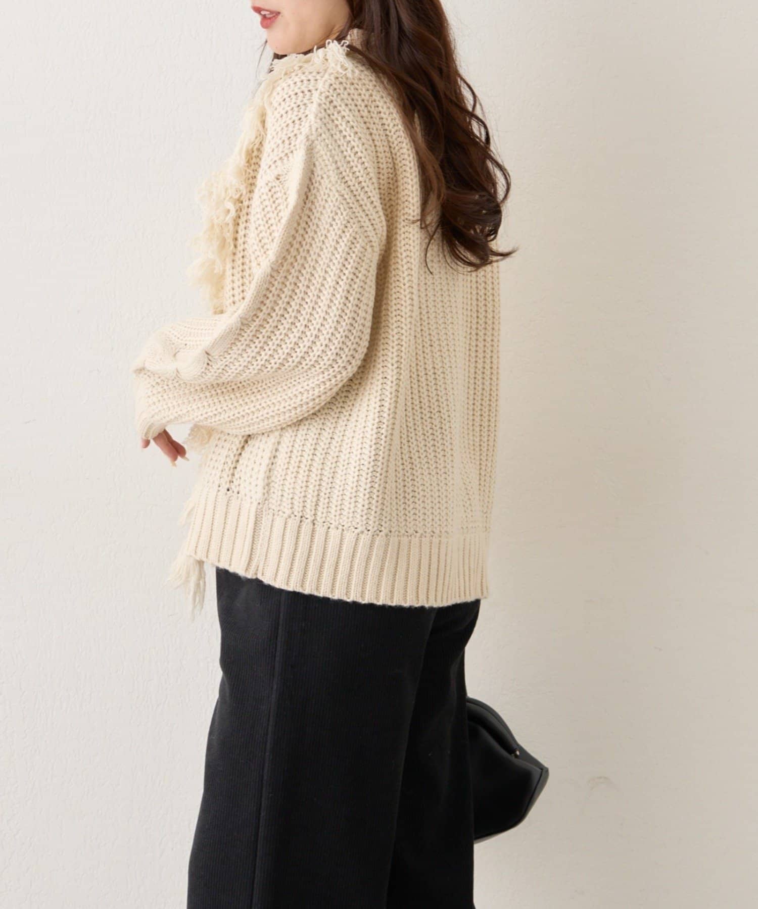 ・フリンジ加工がコーデの主役になるニットプルオーバー