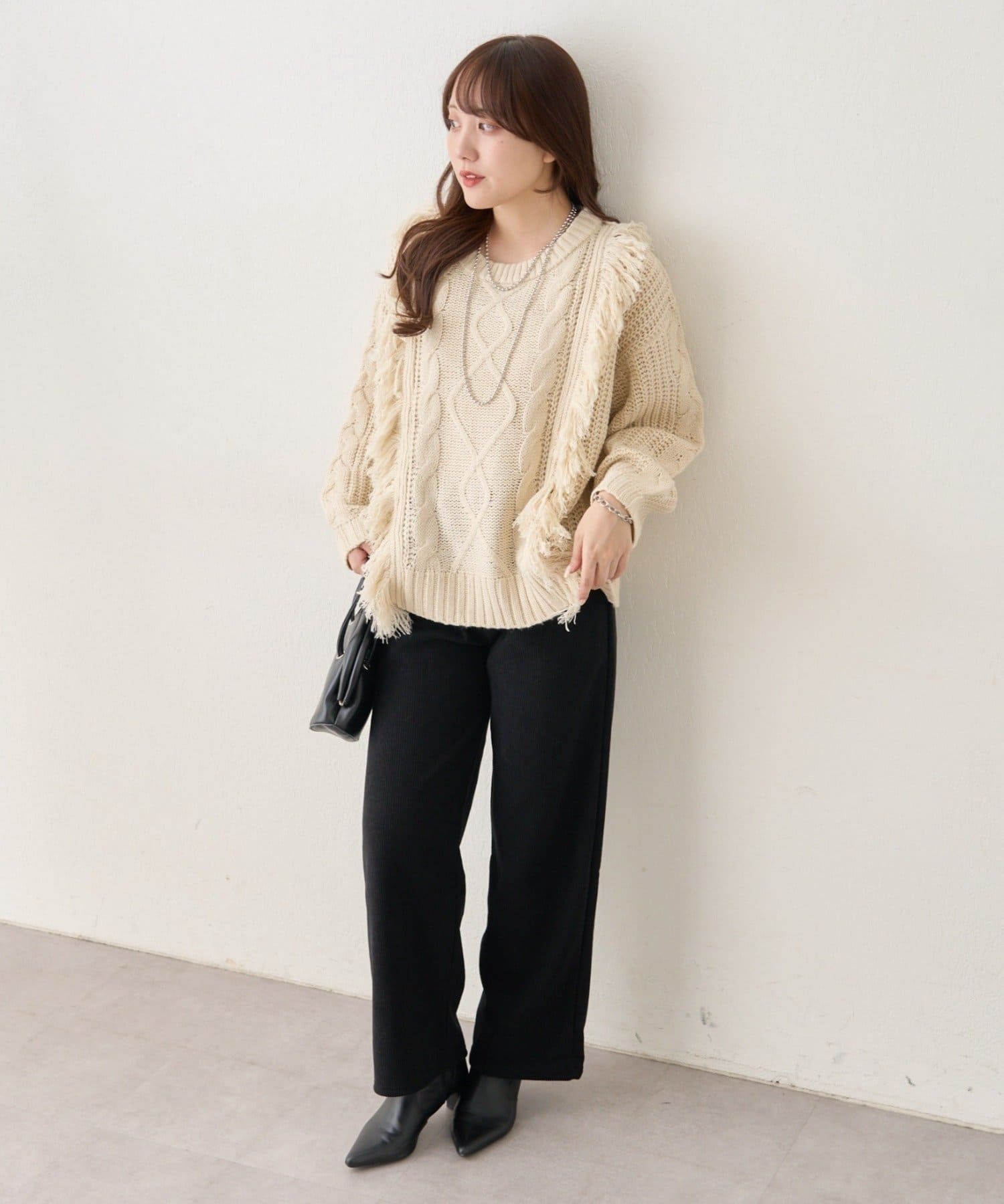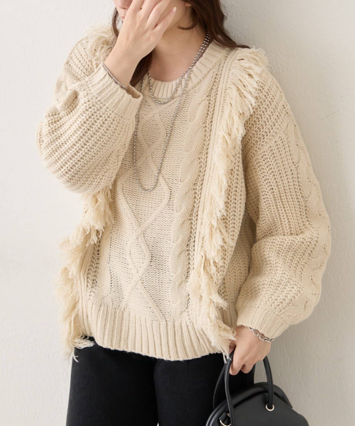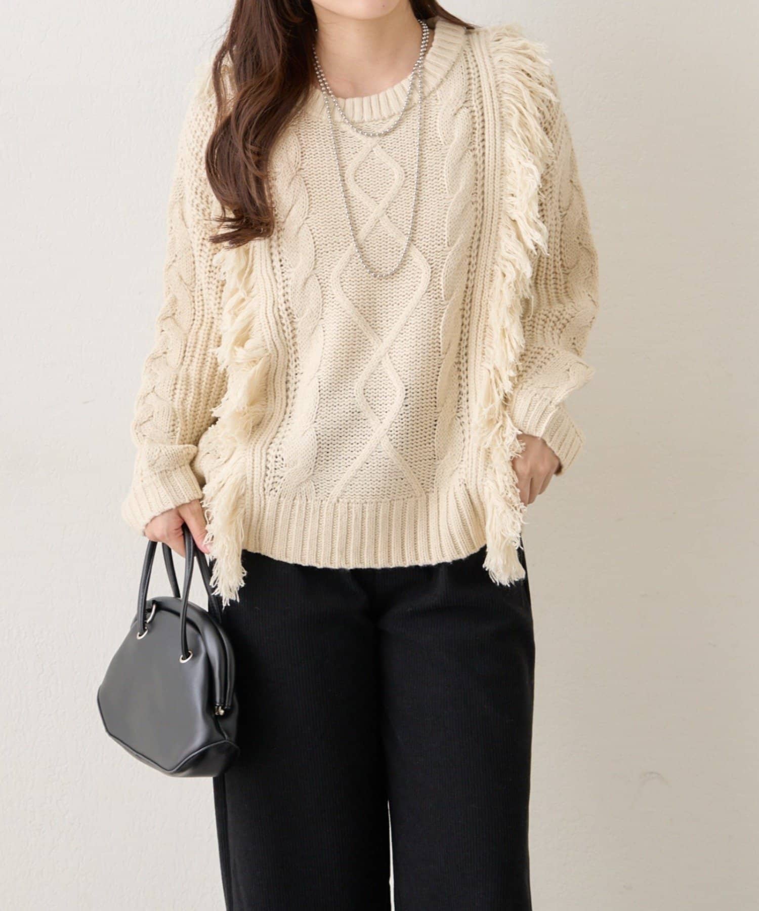 ・フリンジ加工がコーデの主役になるニットプルオーバー
