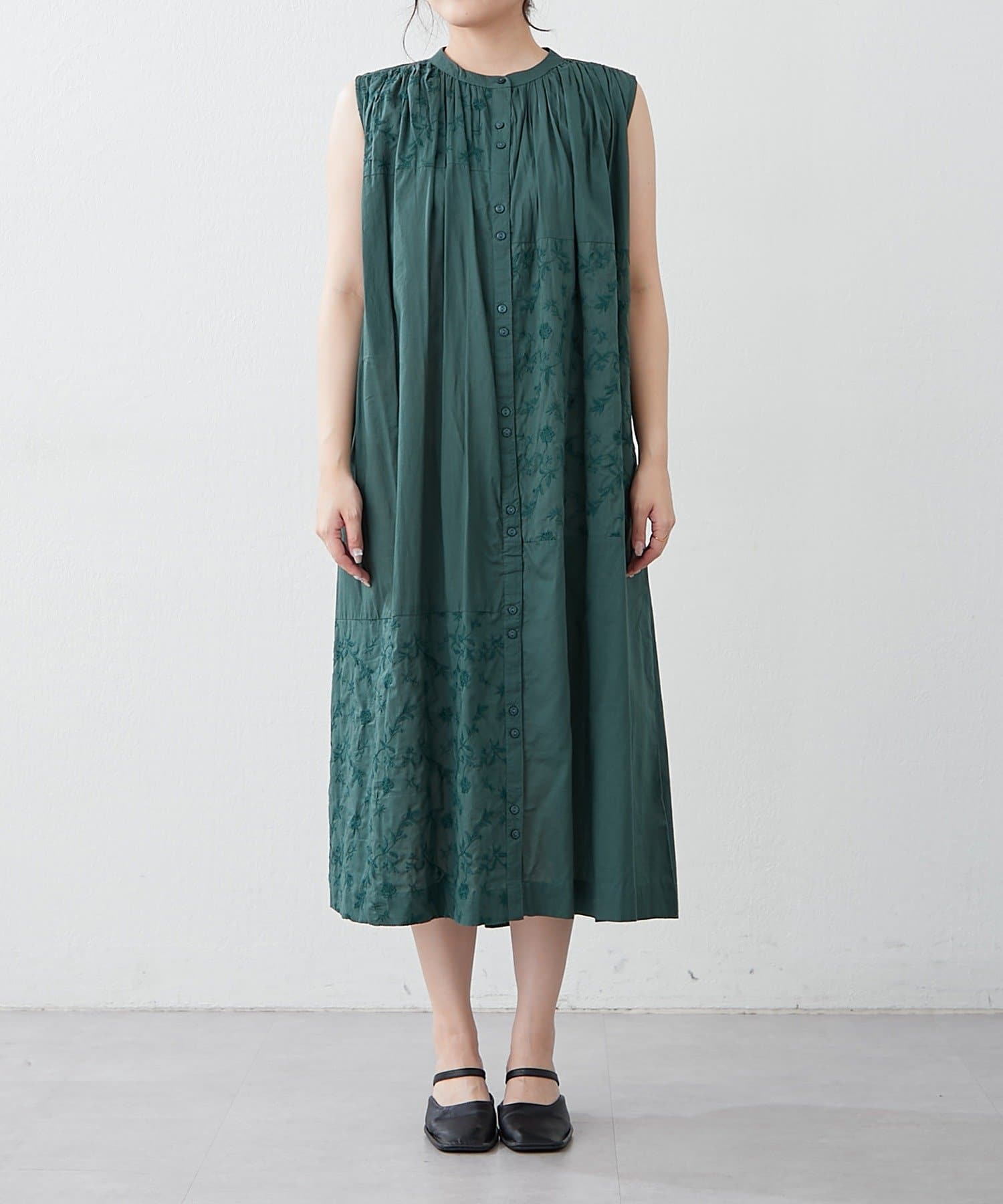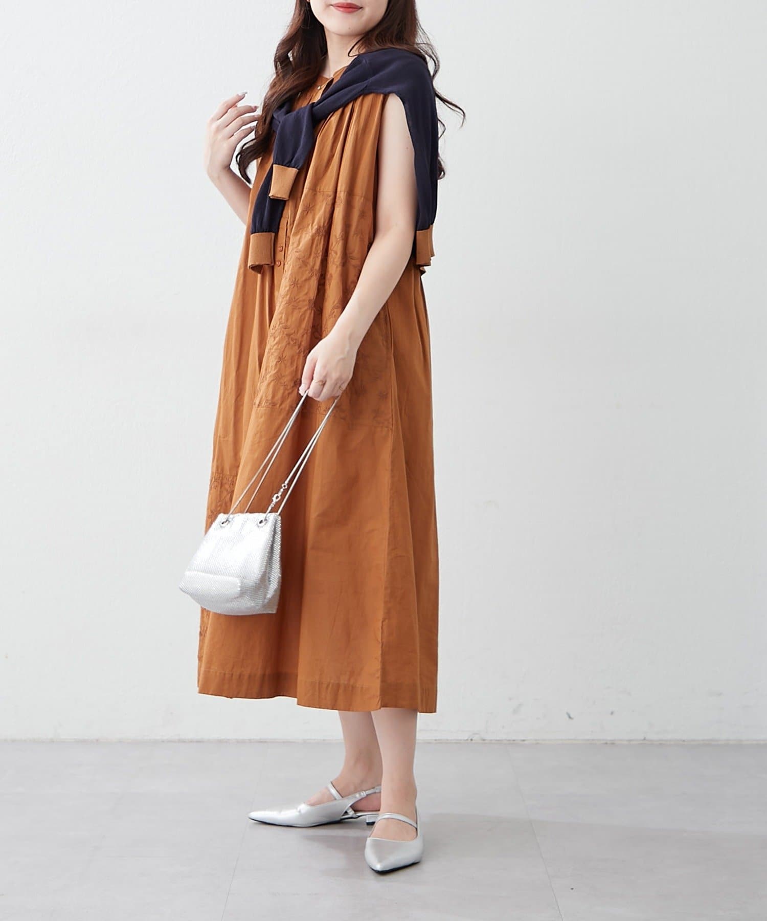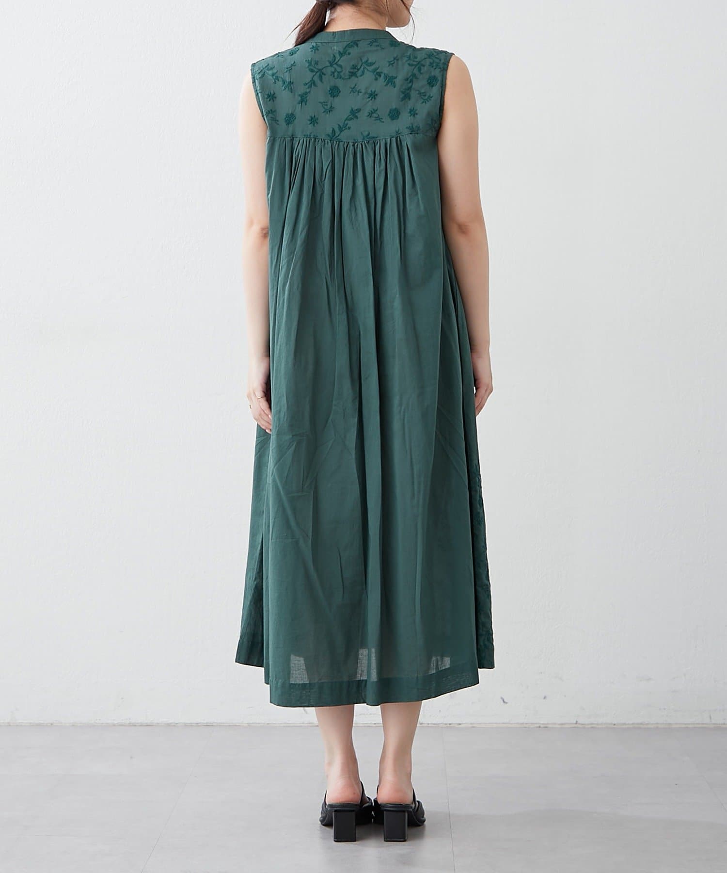 【NAO】インド綿100%、刺繍ノースリワンピース