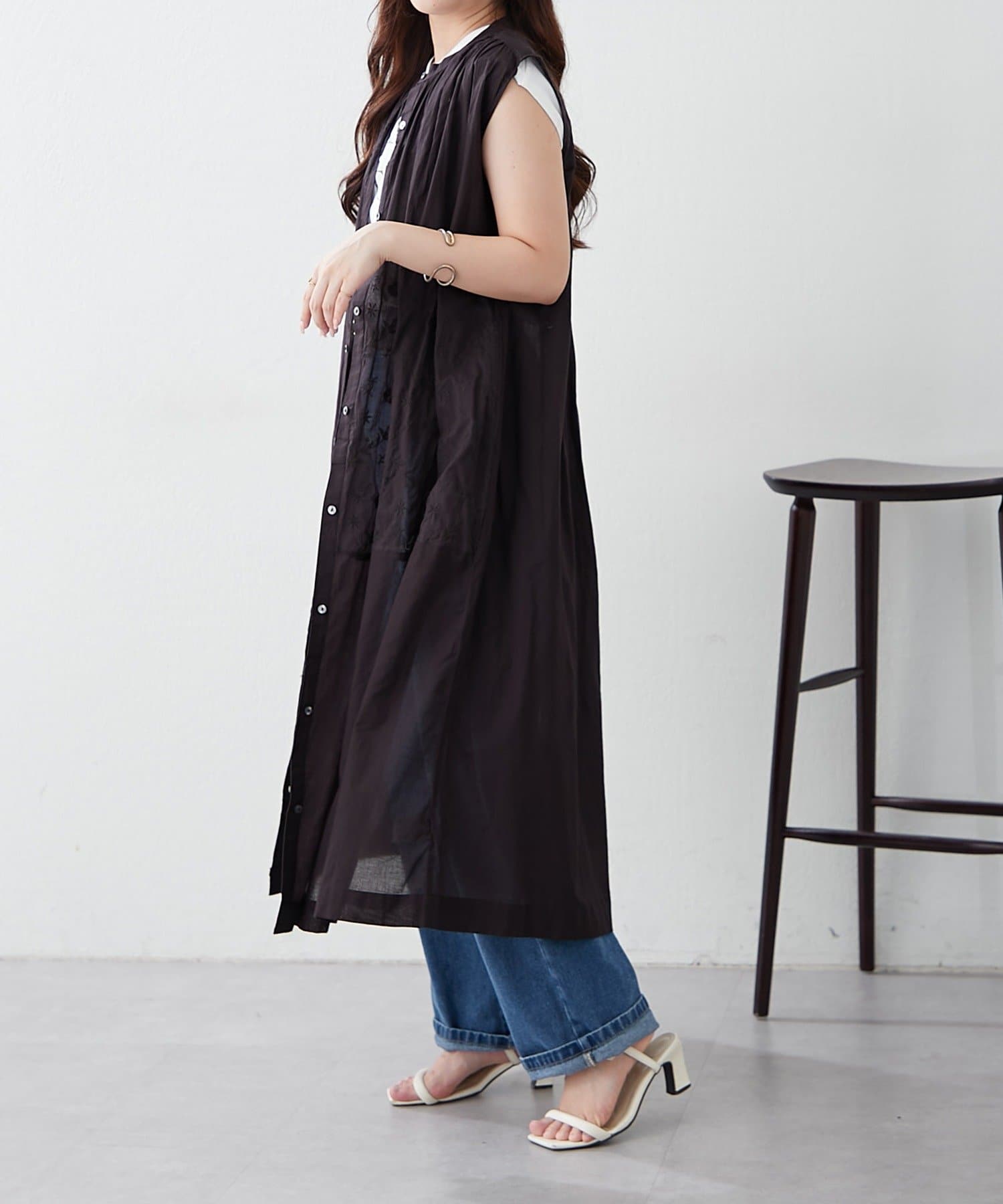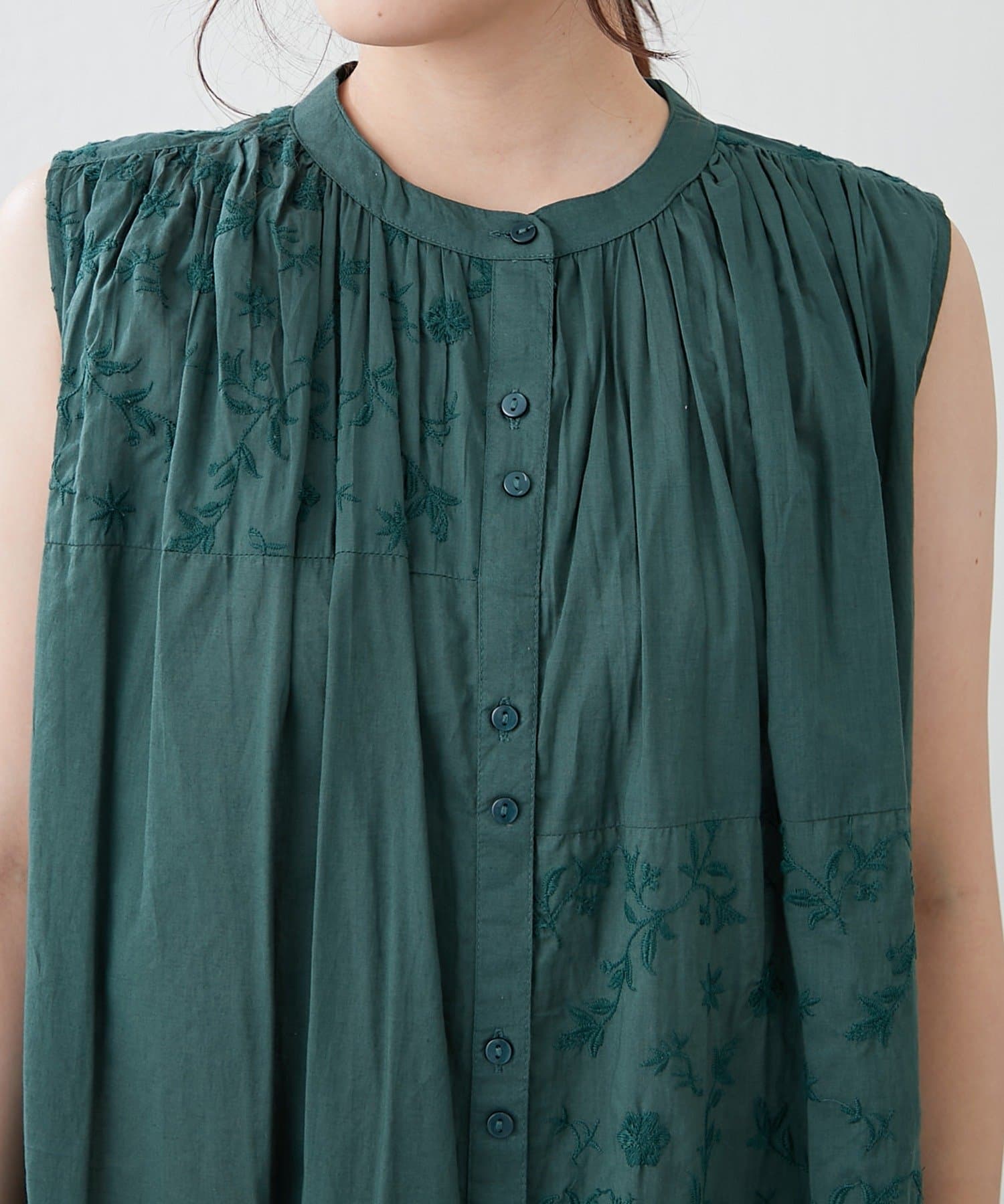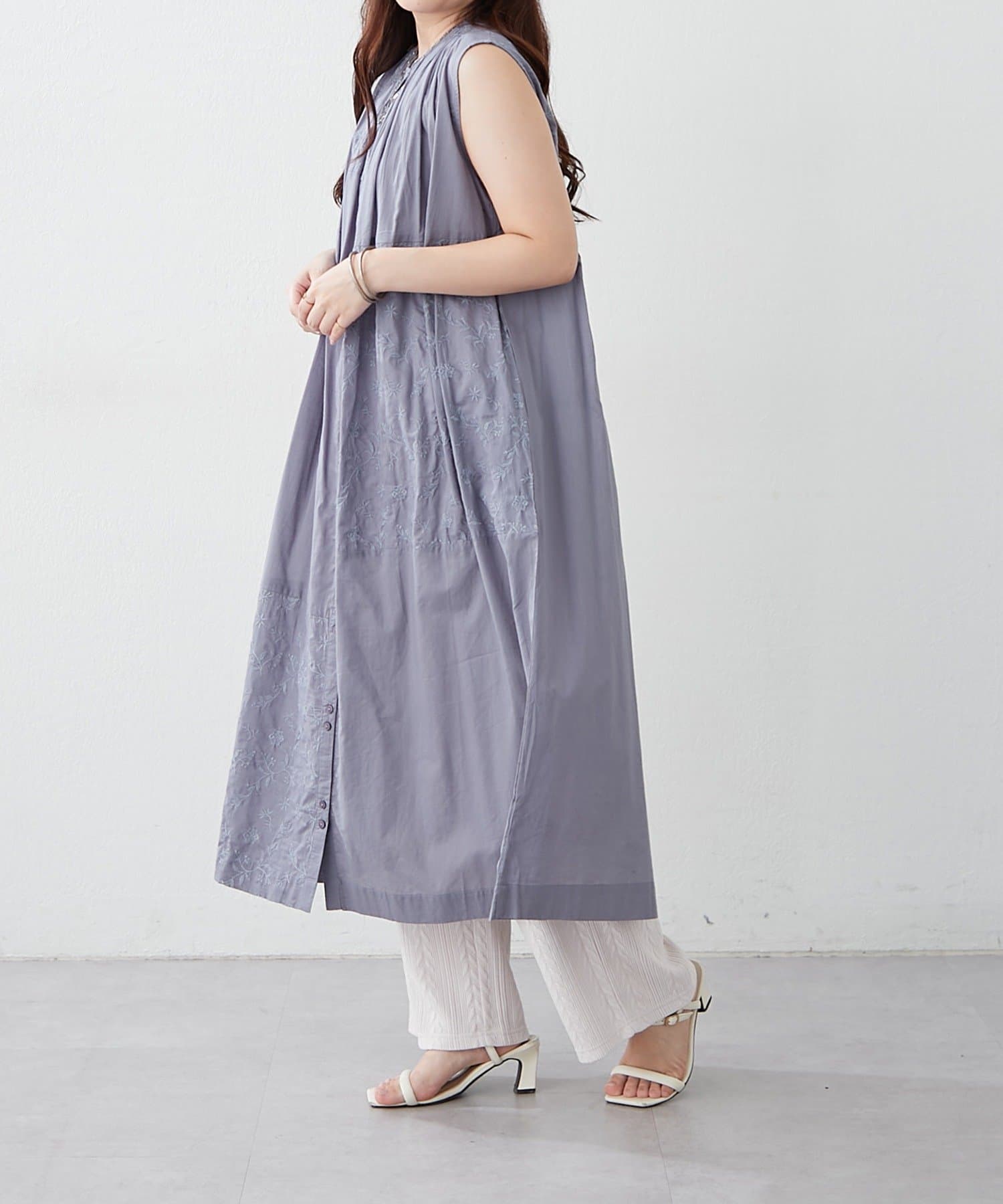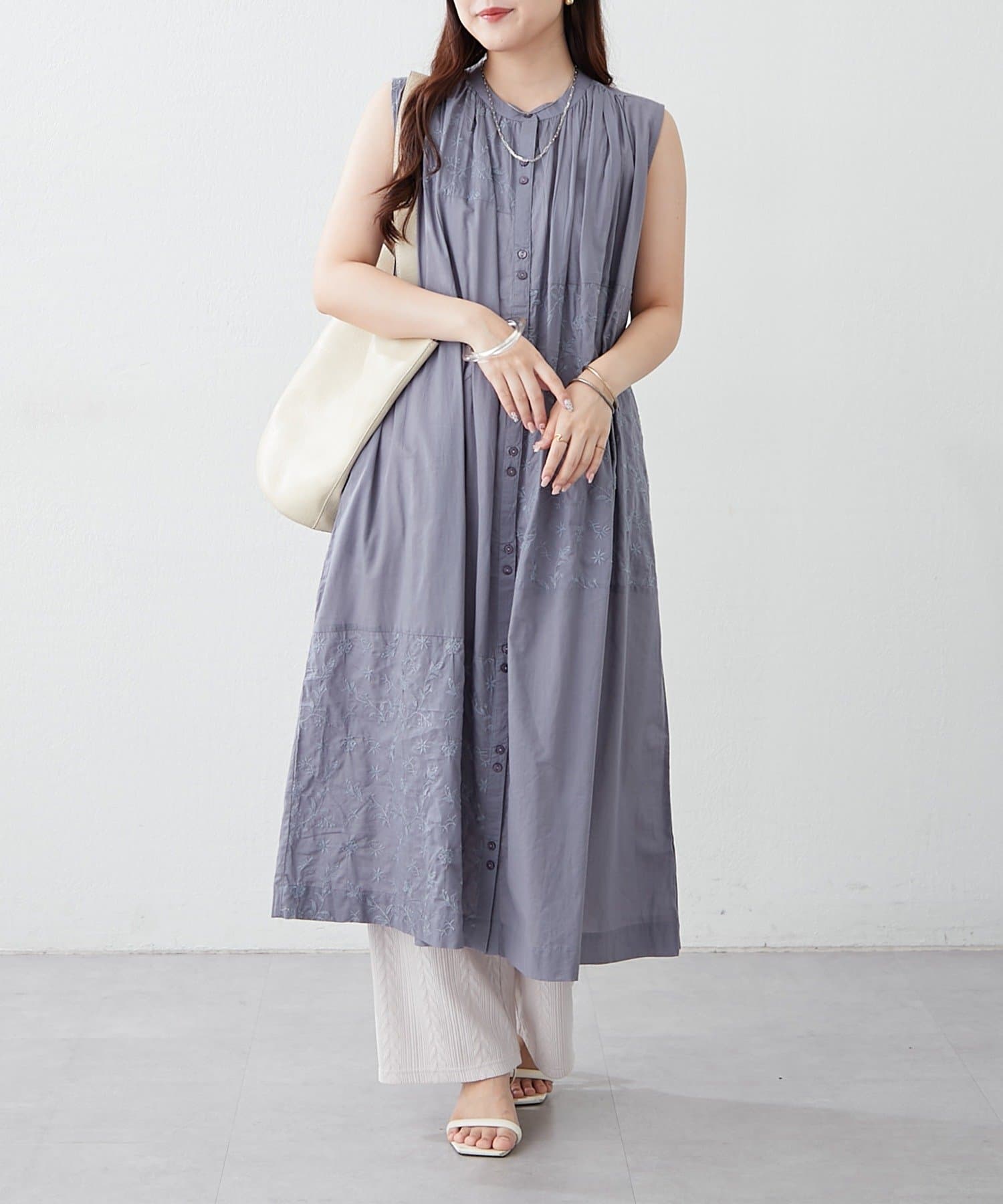 【NAO】インド綿100%、刺繍ノースリワンピース