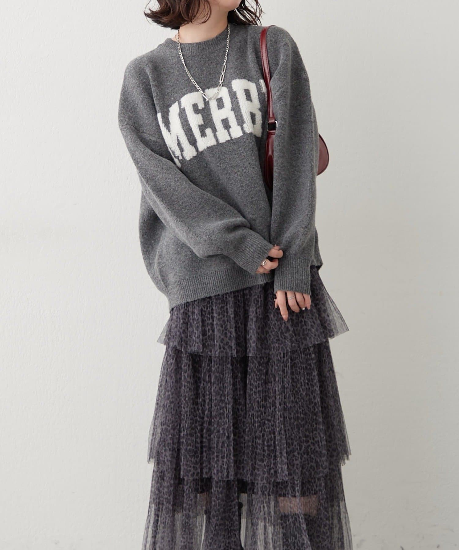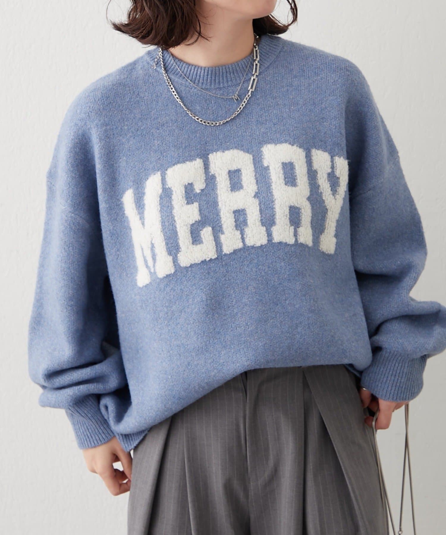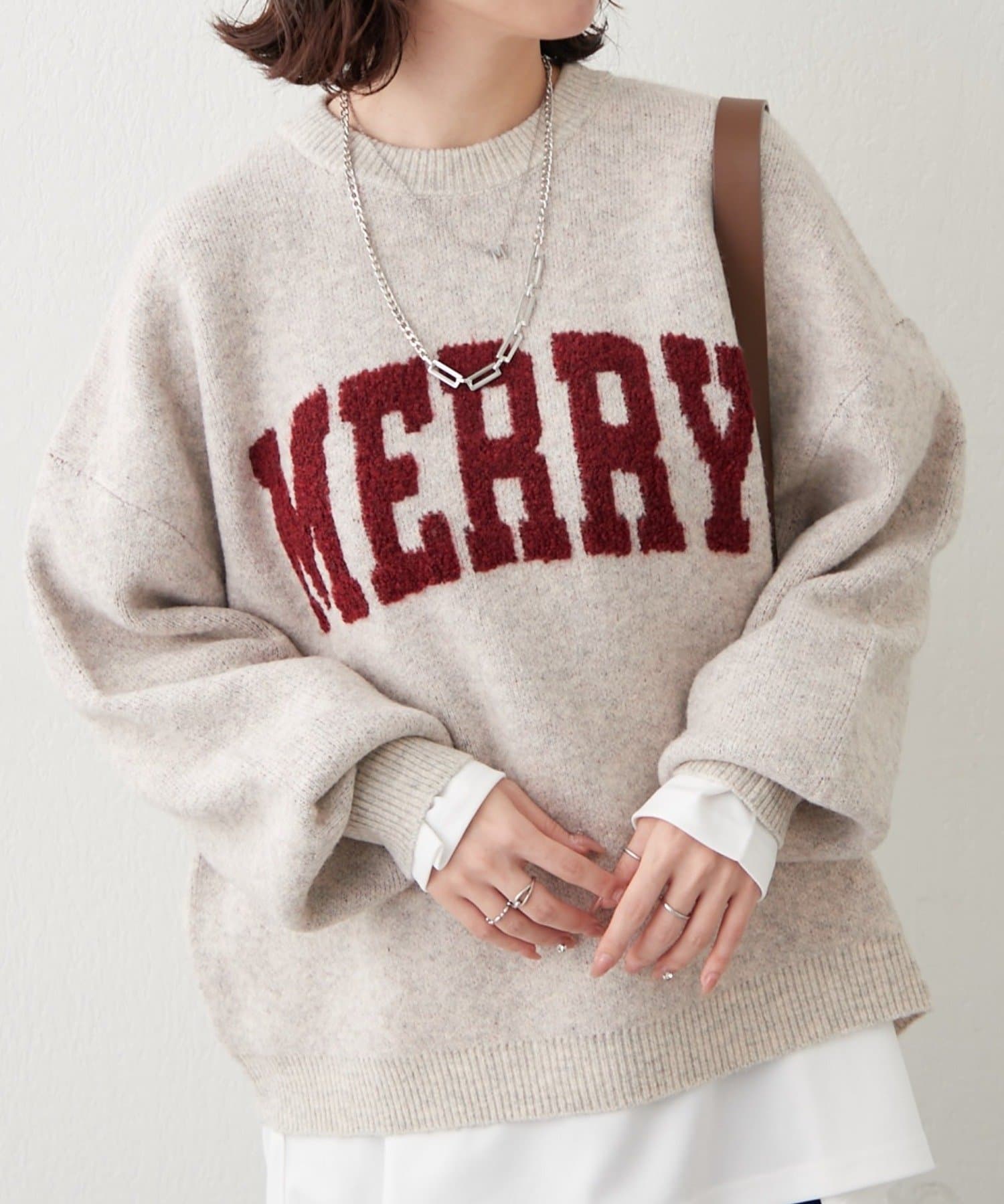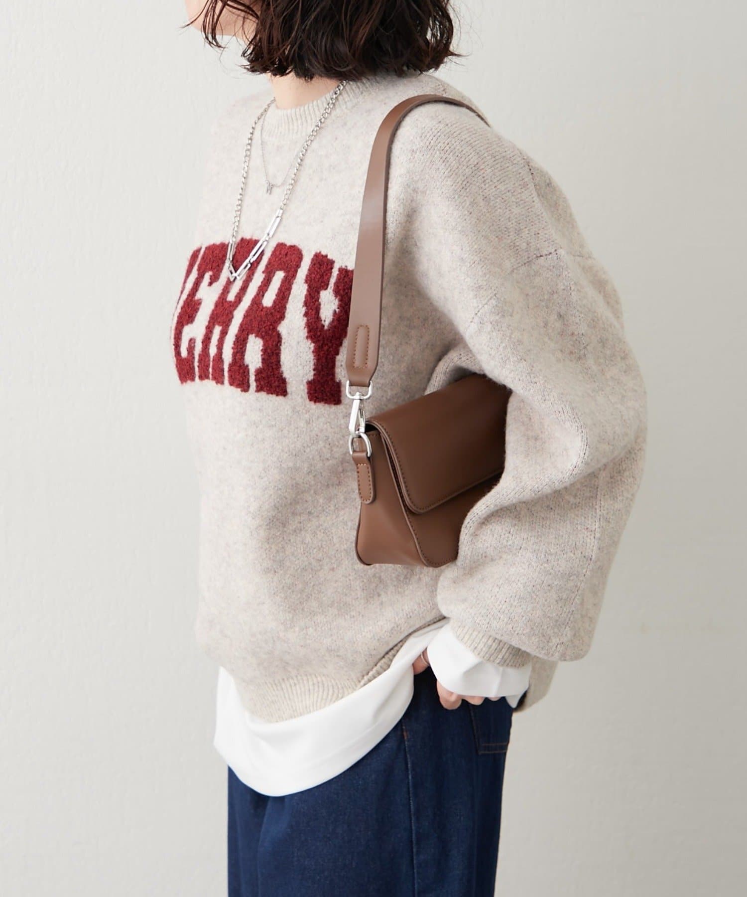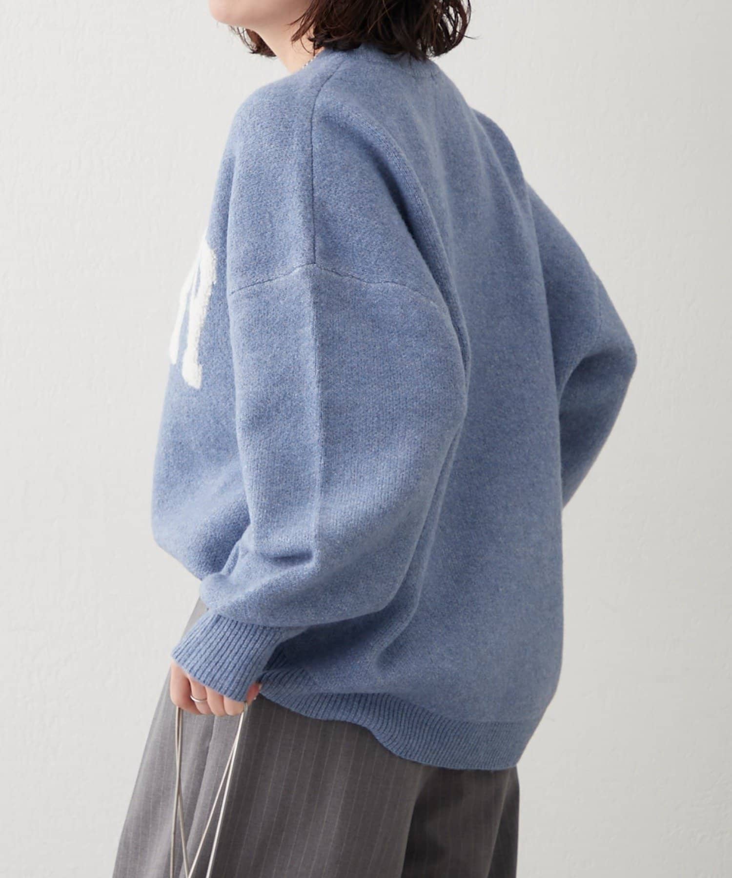 ・ぷっくり感のあるロゴデザインが目を惹くニットプルオーバー