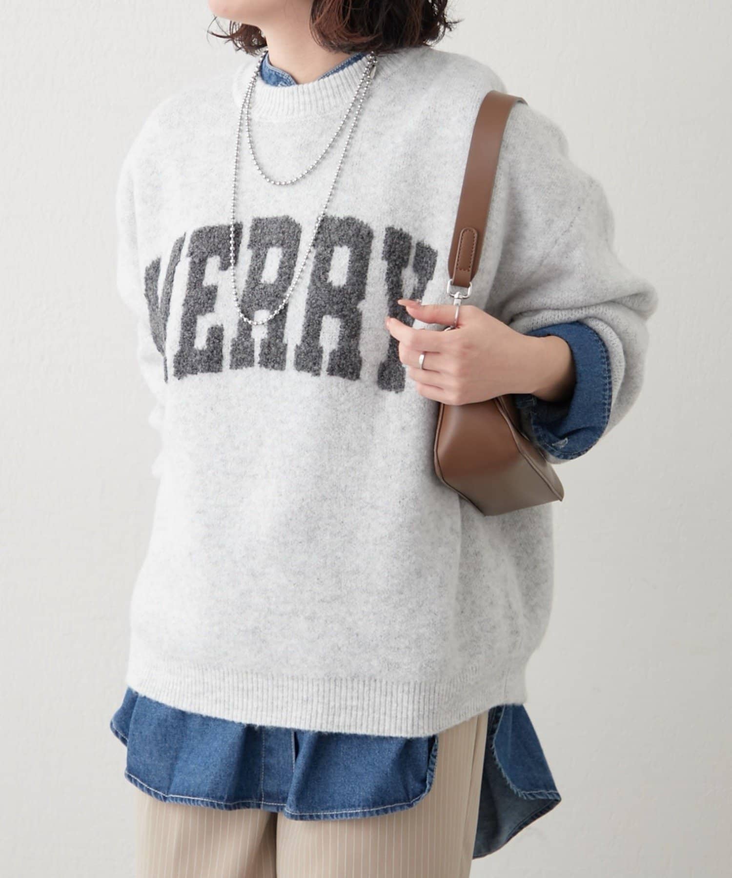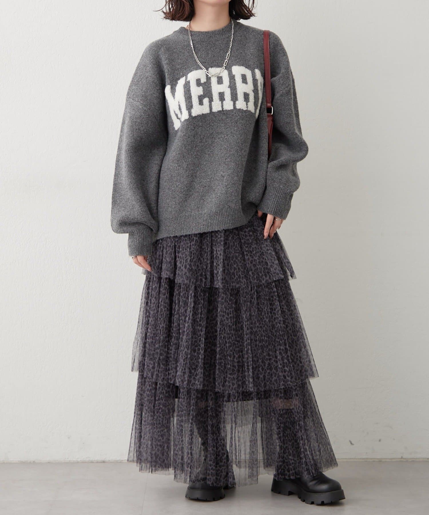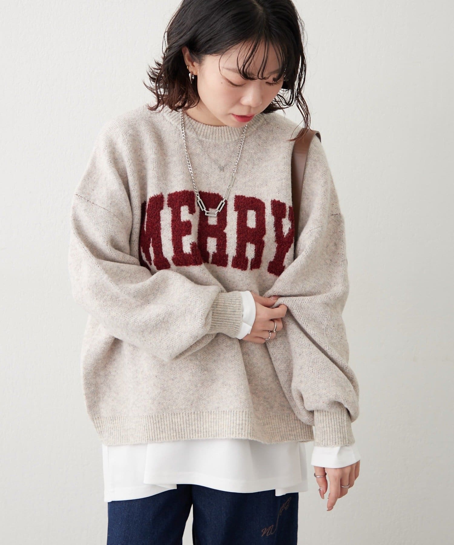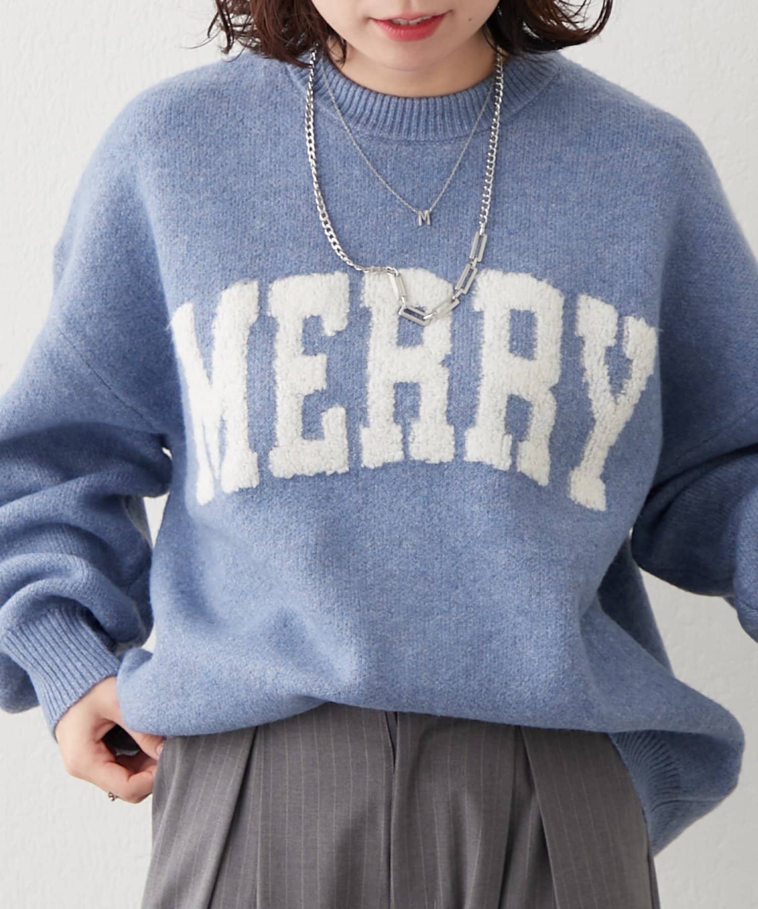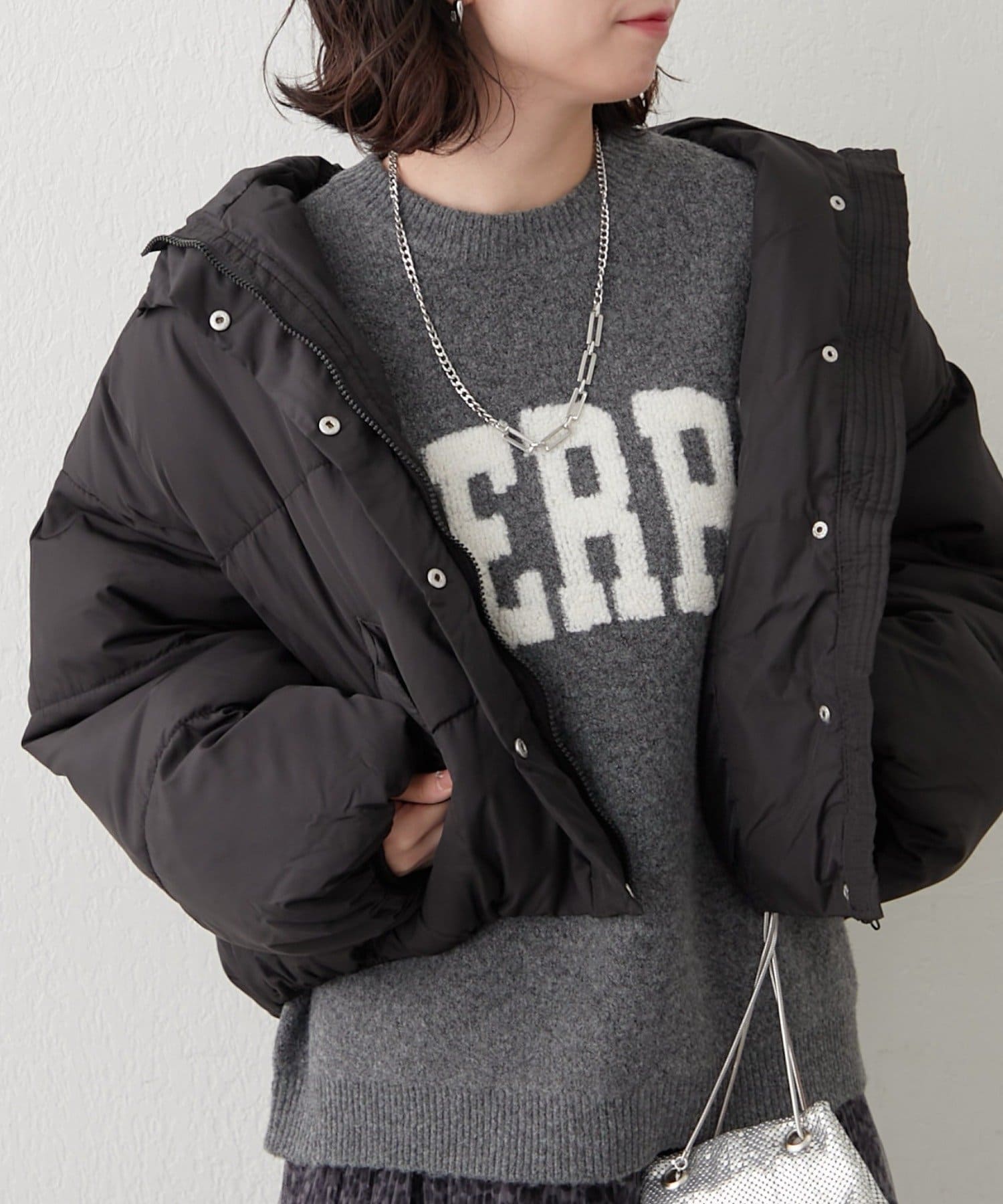 ・ぷっくり感のあるロゴデザインが目を惹くニットプルオーバー