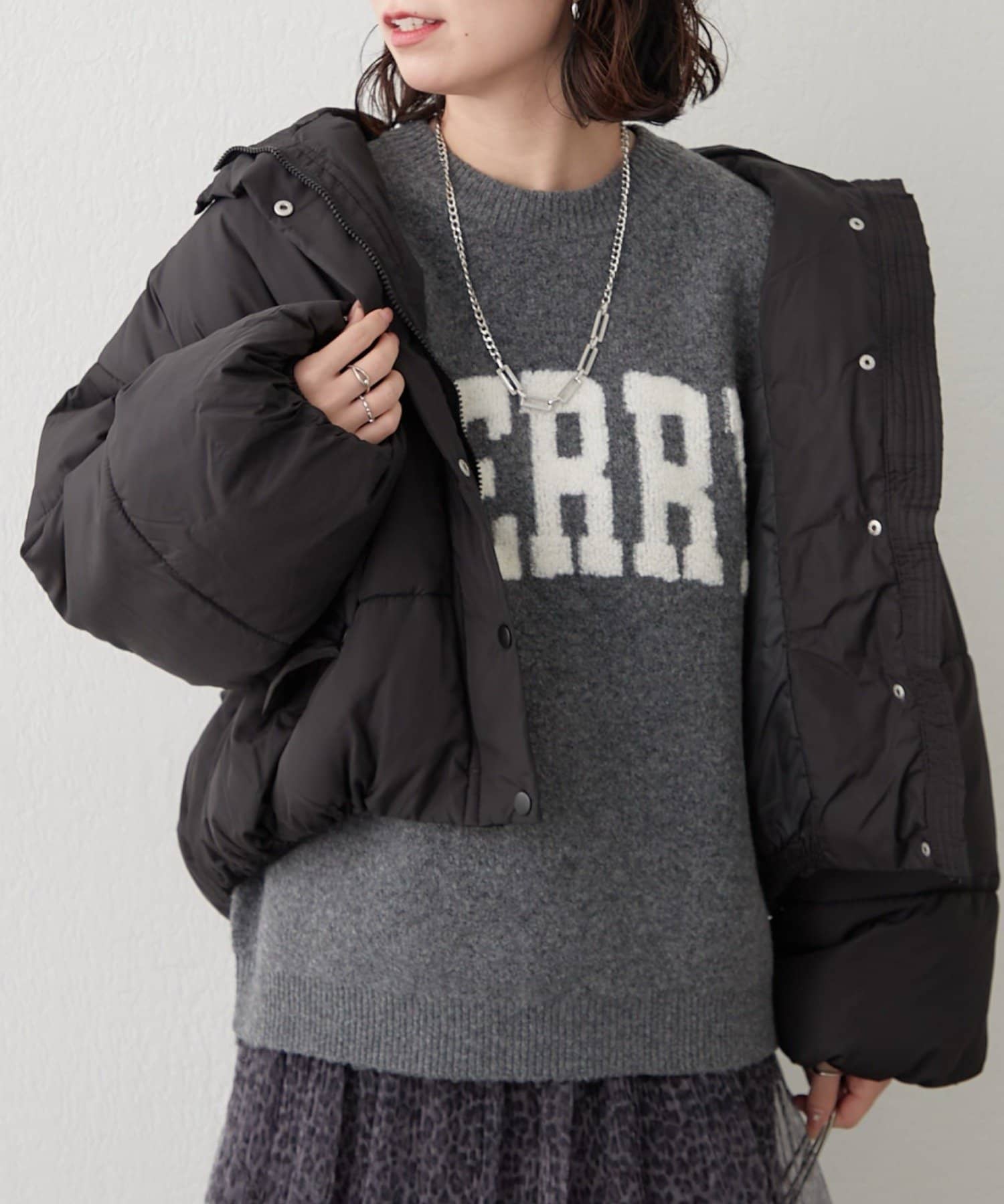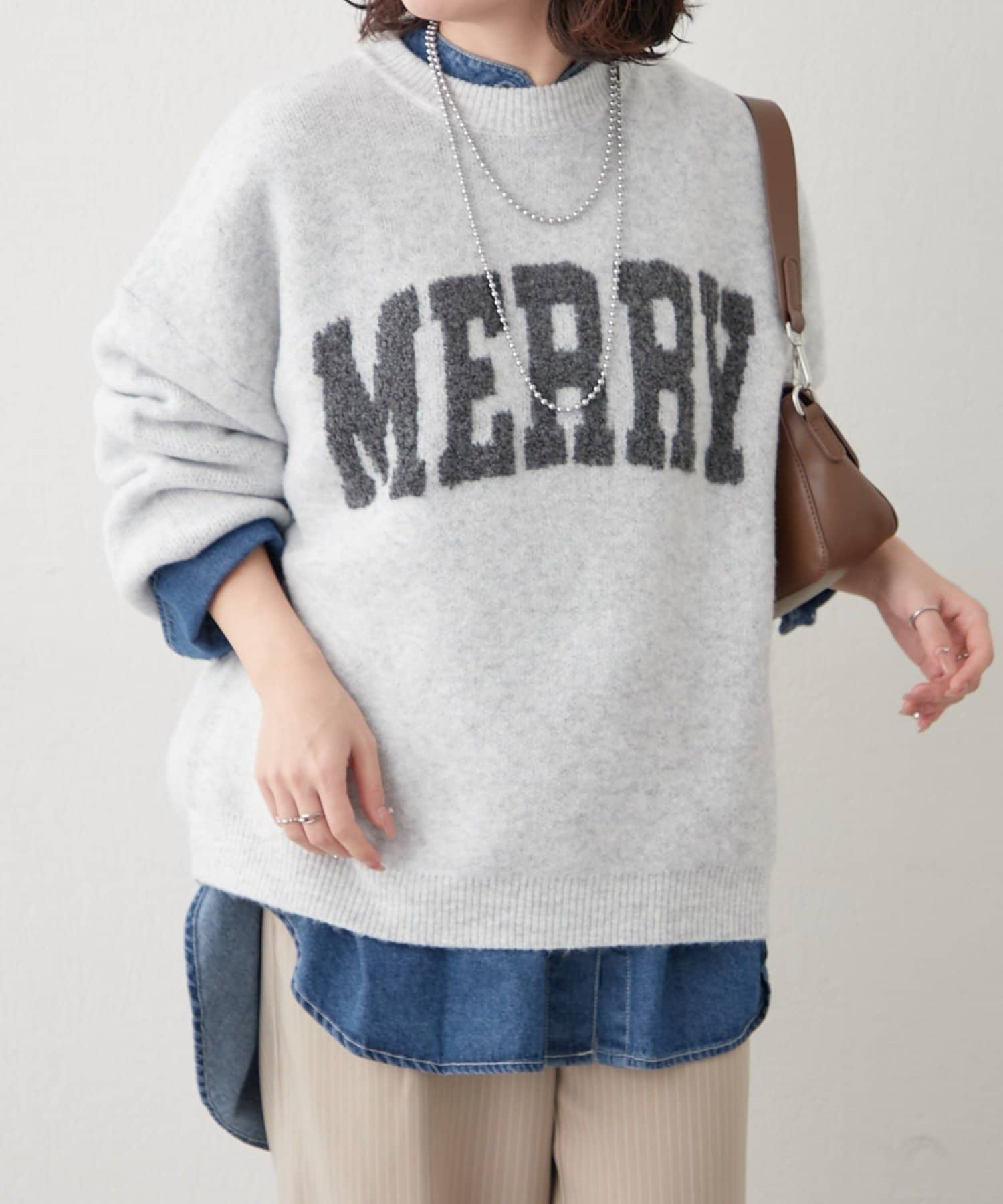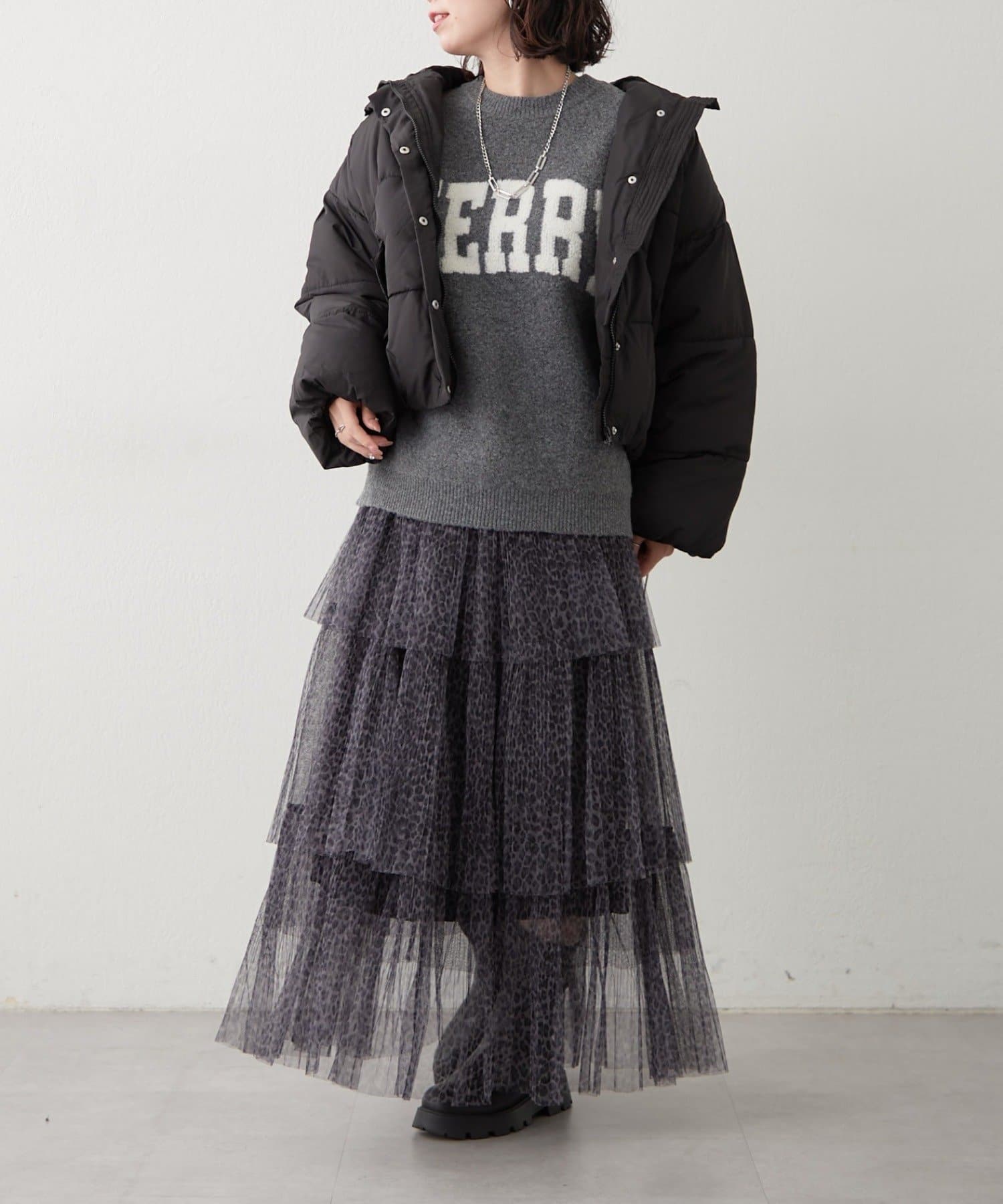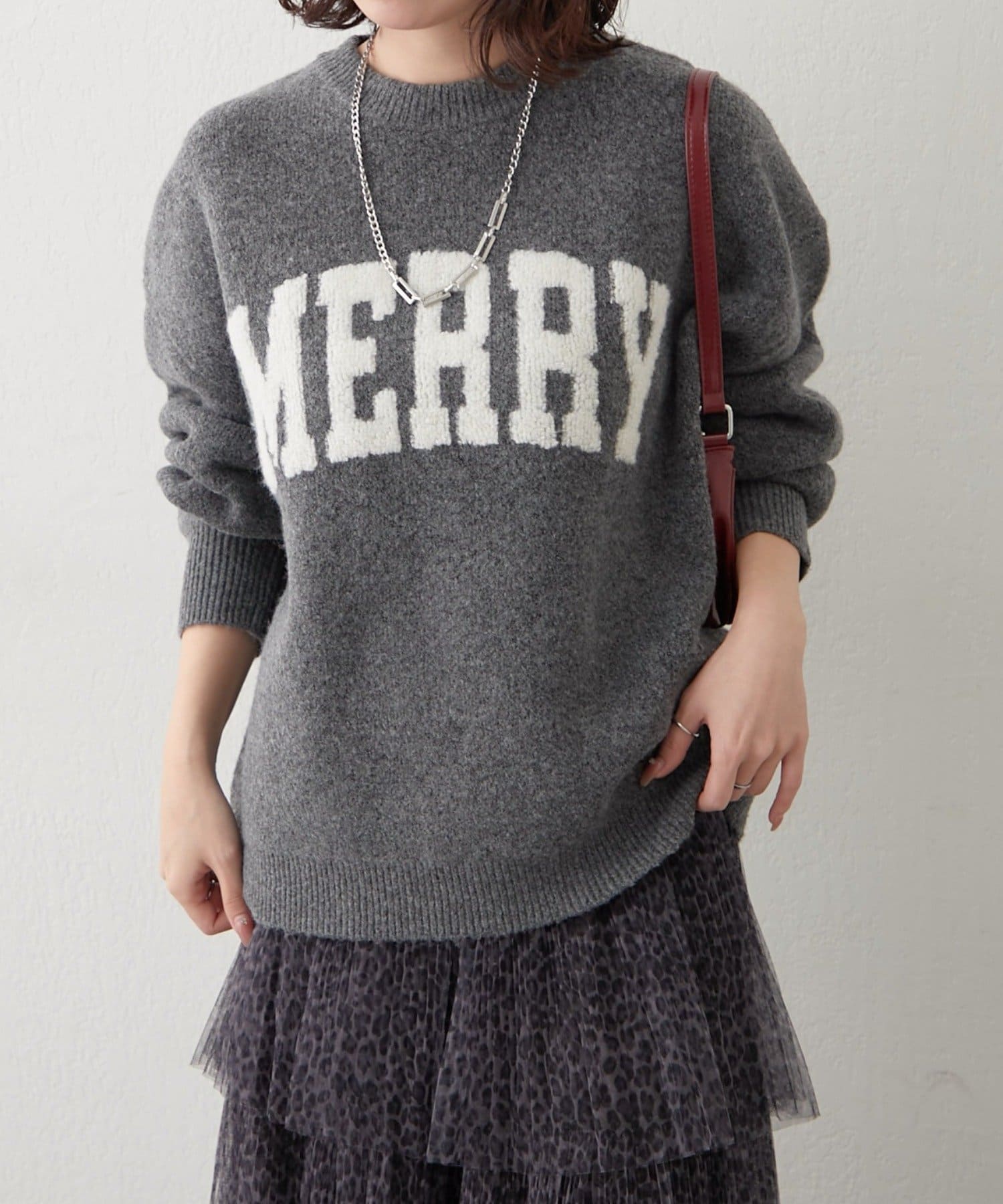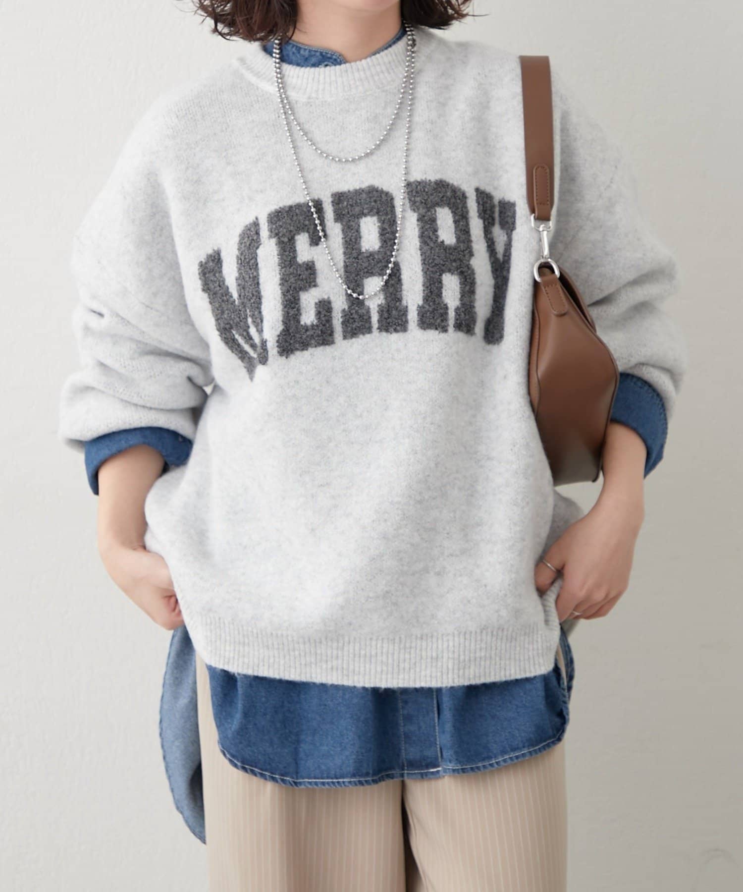 ・ぷっくり感のあるロゴデザインが目を惹くニットプルオーバー