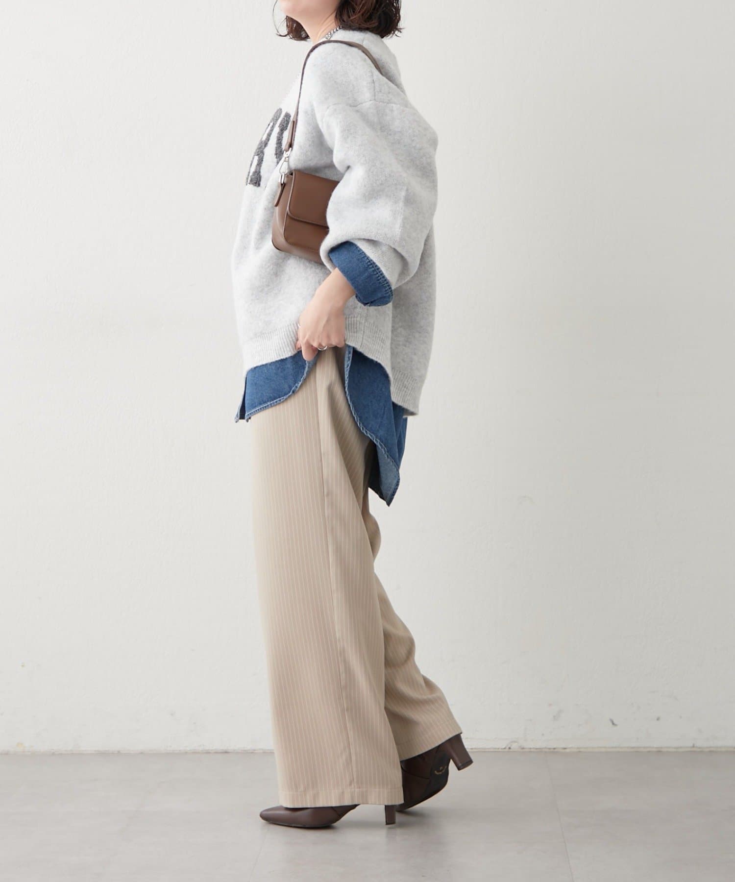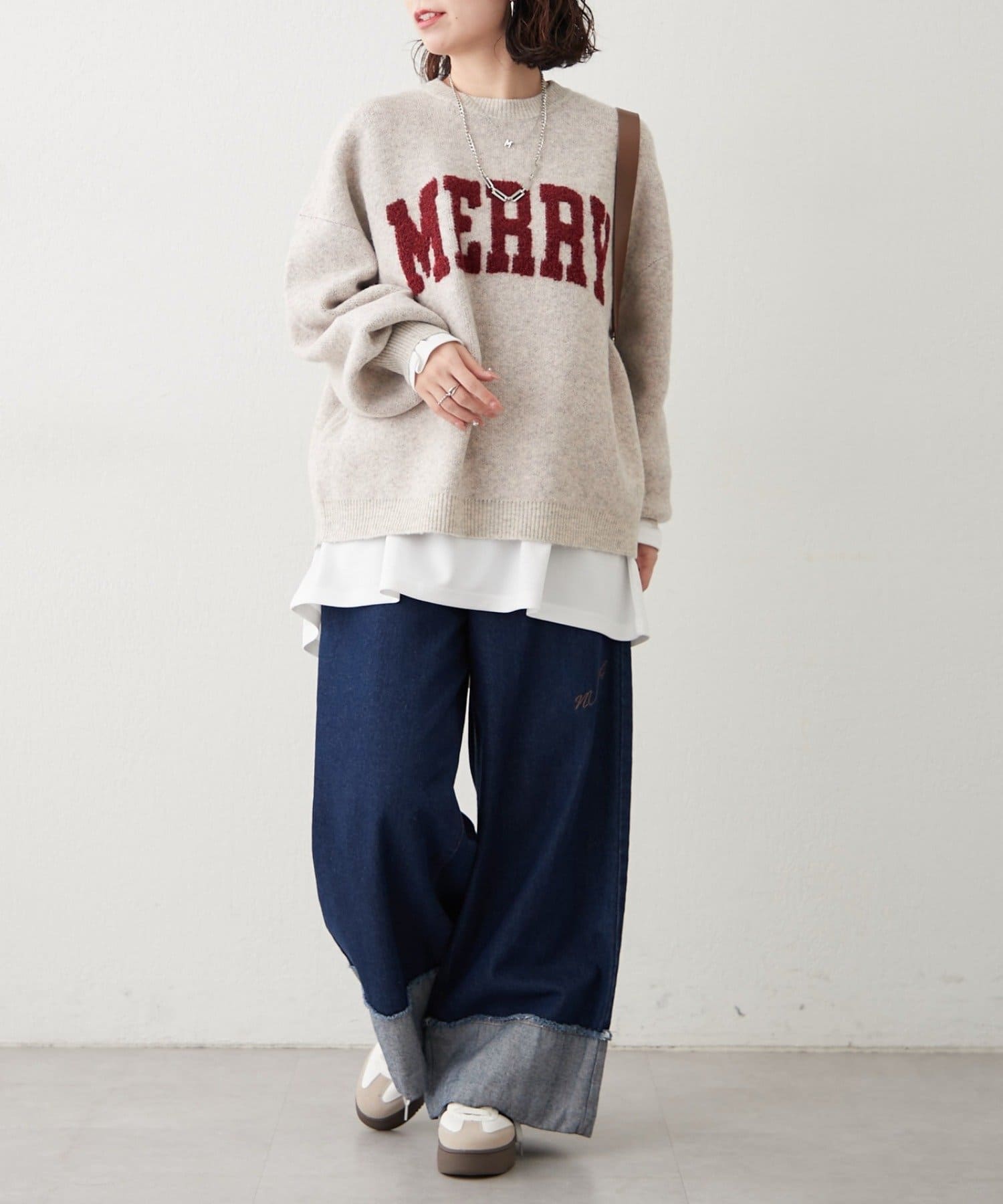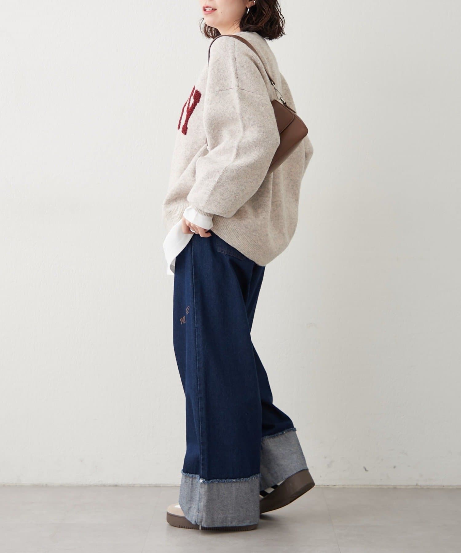 ・ワイドなデニムパンツでゆるっとこなれ感のある大人カジュアルコーデ
