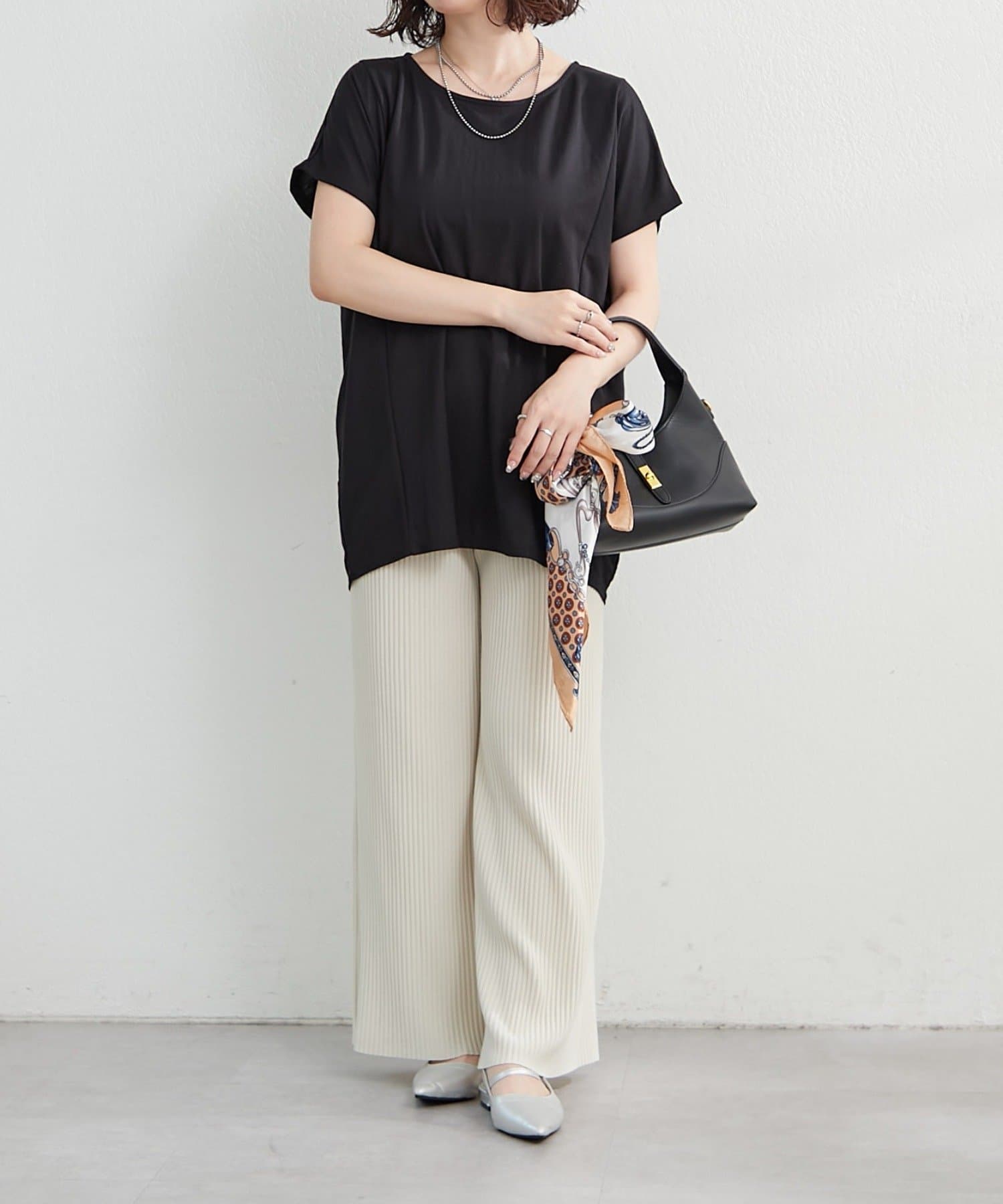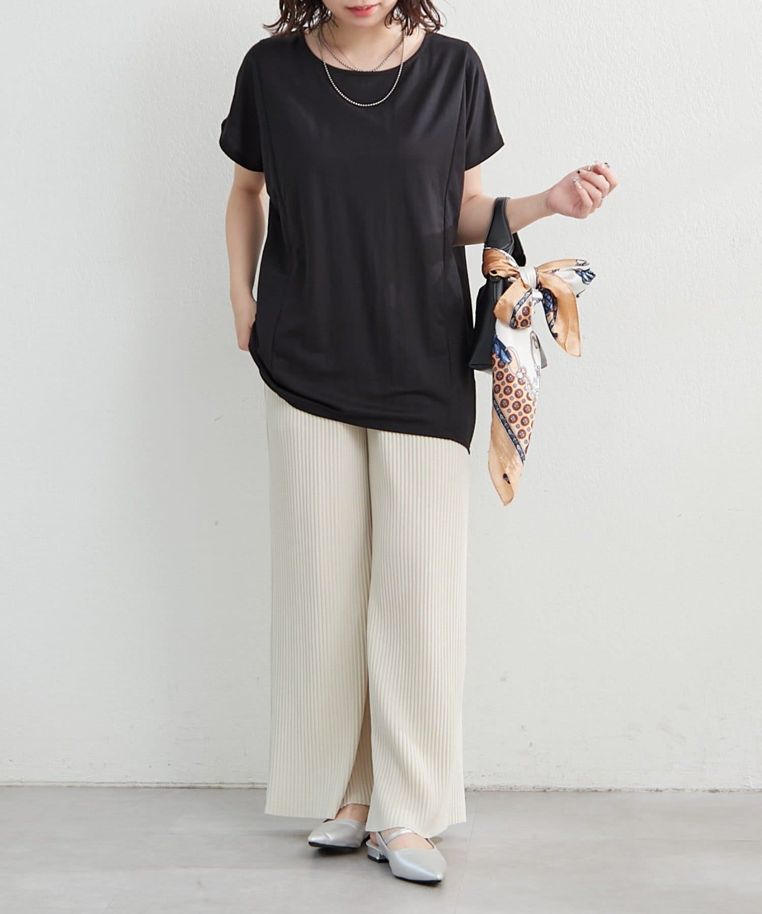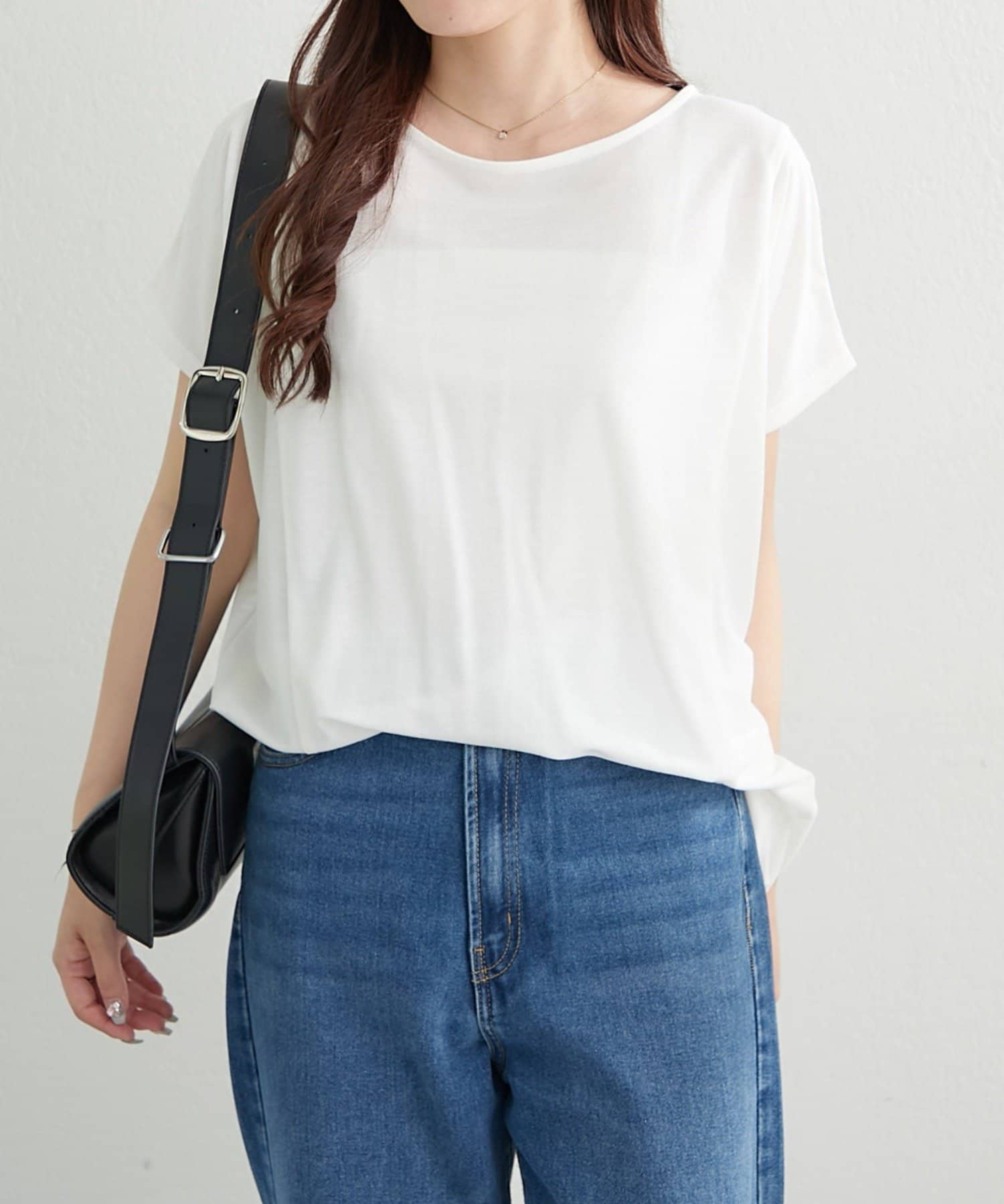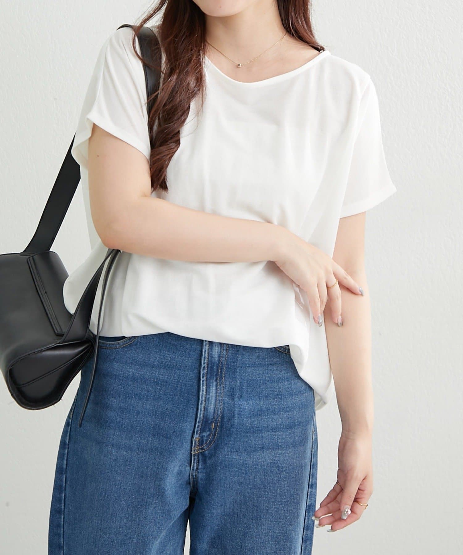 ・薄手の素材感+接触冷感機能付きで夏にぴったりなトップス