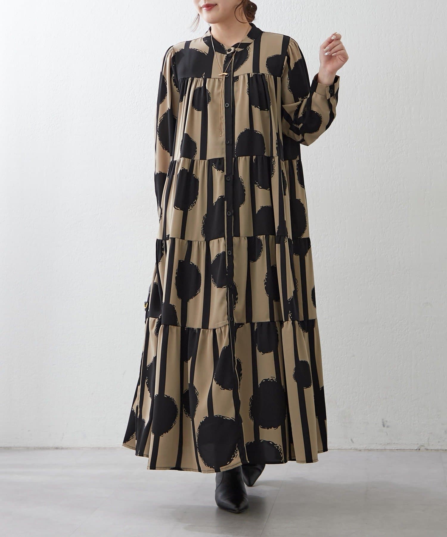 TOP > Remind me and forever > レディース > ワンピース > シャツワンピース > 【NAO】【新柄登場!】アソート柄ティアードワンピース