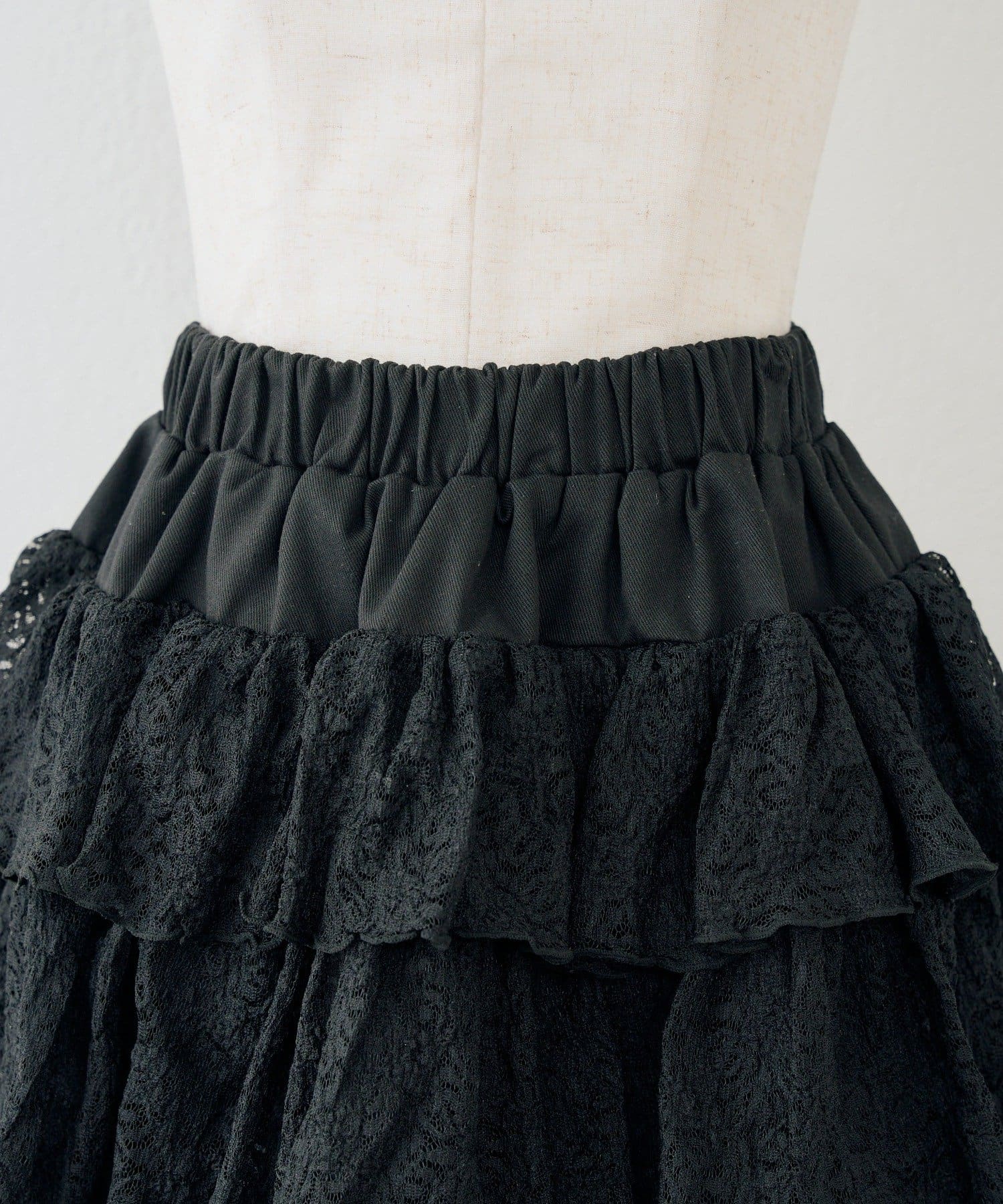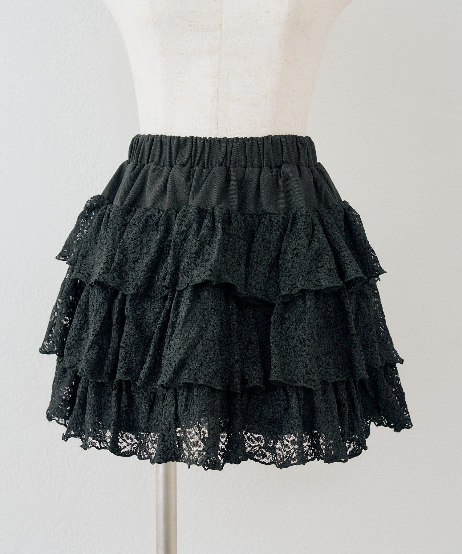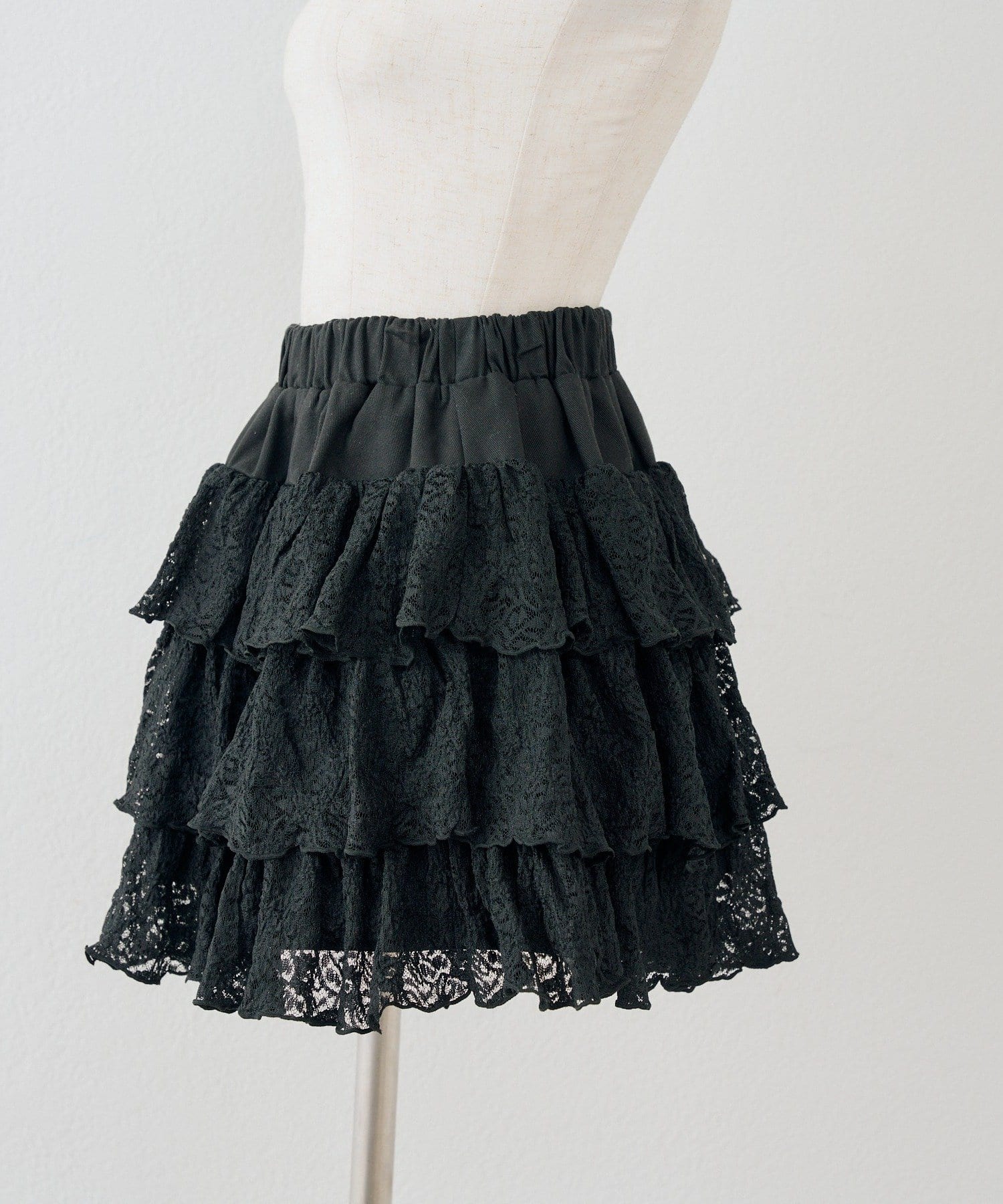 ・繊細なレースを贅沢に使用した、ロマンティックな3段フリルスカート