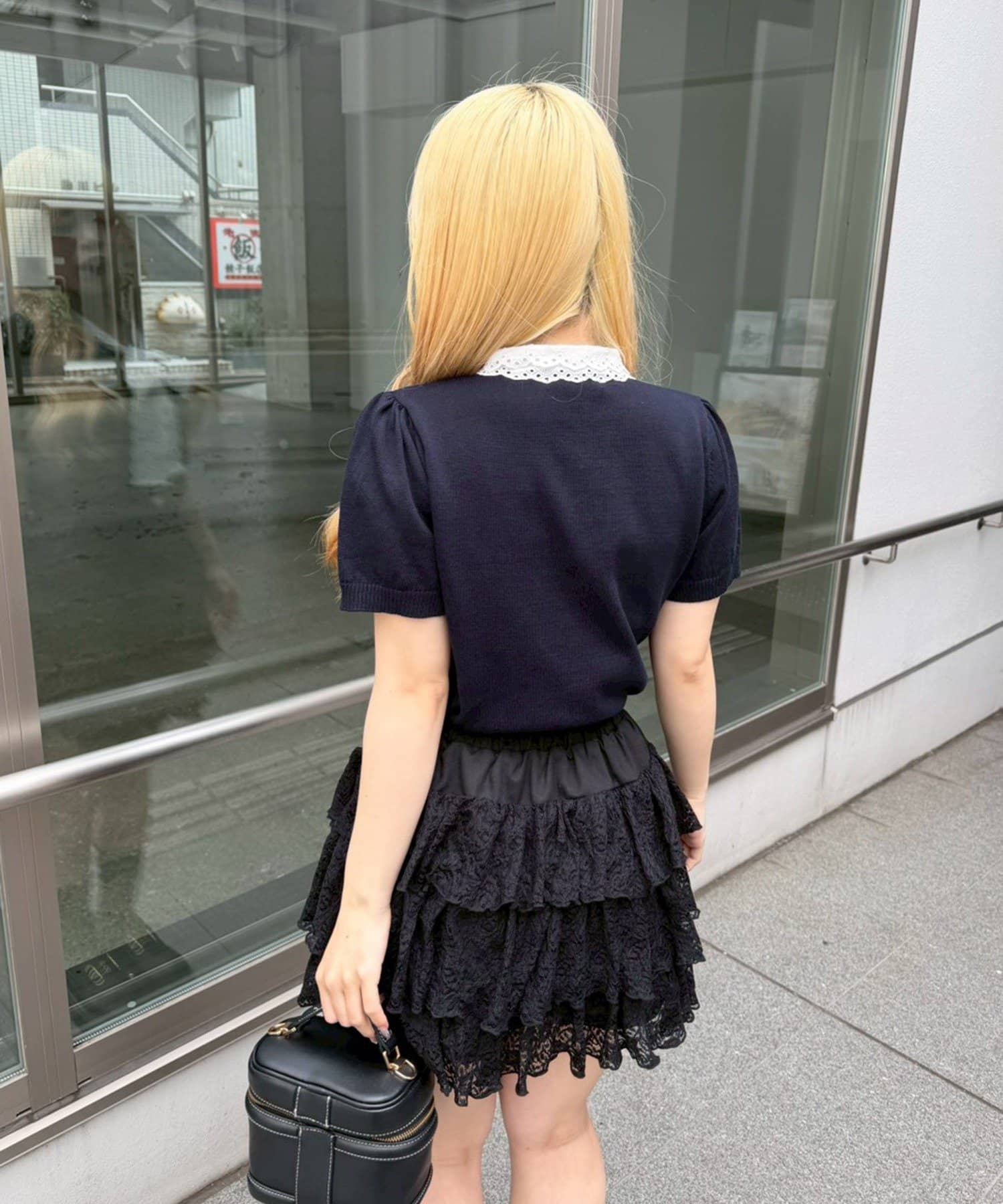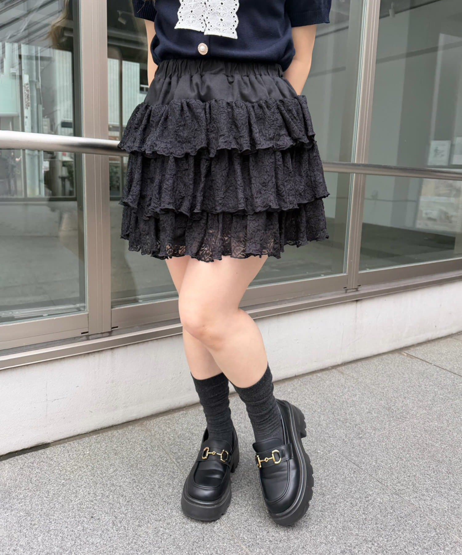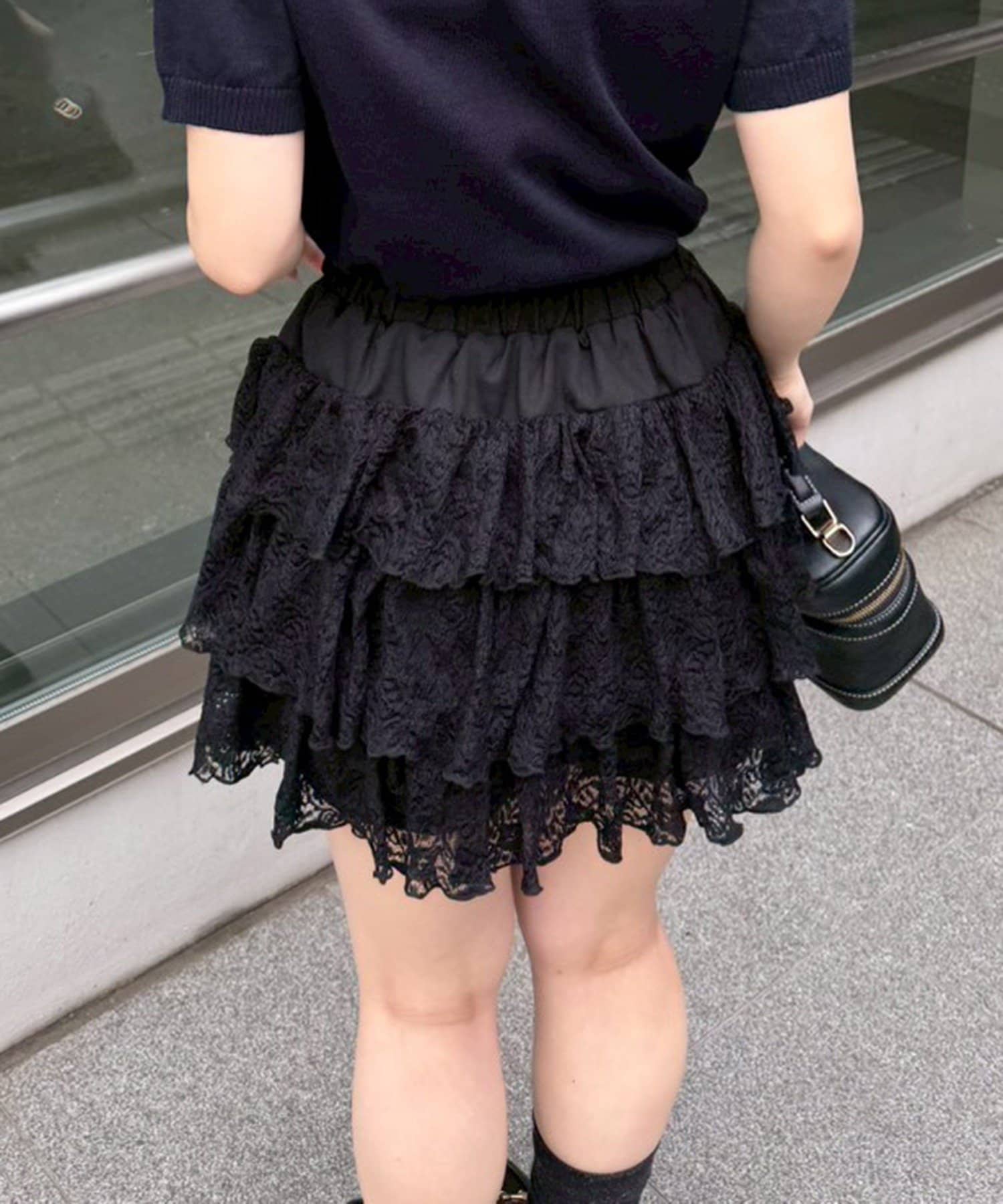 ・繊細なレースを贅沢に使用した、ロマンティックな3段フリルスカート
