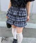 ・白Tシャツ + チェックスカート + スニーカーでカジュアルなコーデ