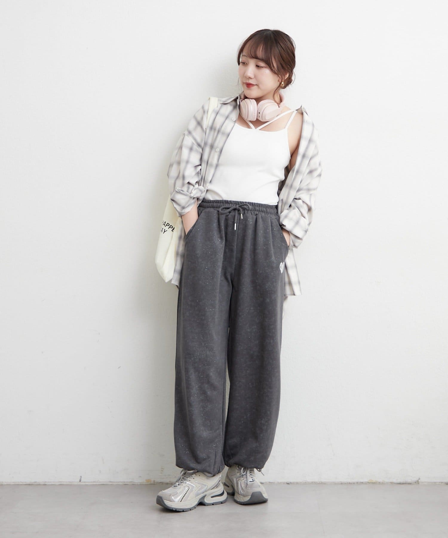 ・ラメ素材がさりげなくきらめくスウェットパンツ