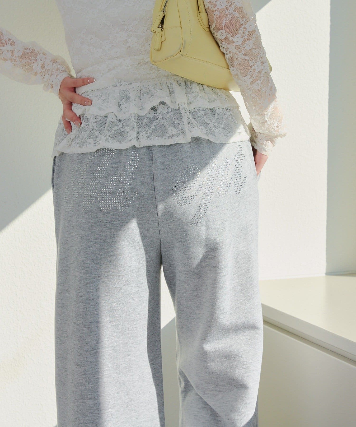 ・ラインストーン付きでさりげなくきらめくスウェットパンツ