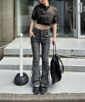 ・クロップド丈のトップスと合わせて、トレンドライクなスタイリング。厚底ブーツでエッジを効かせて