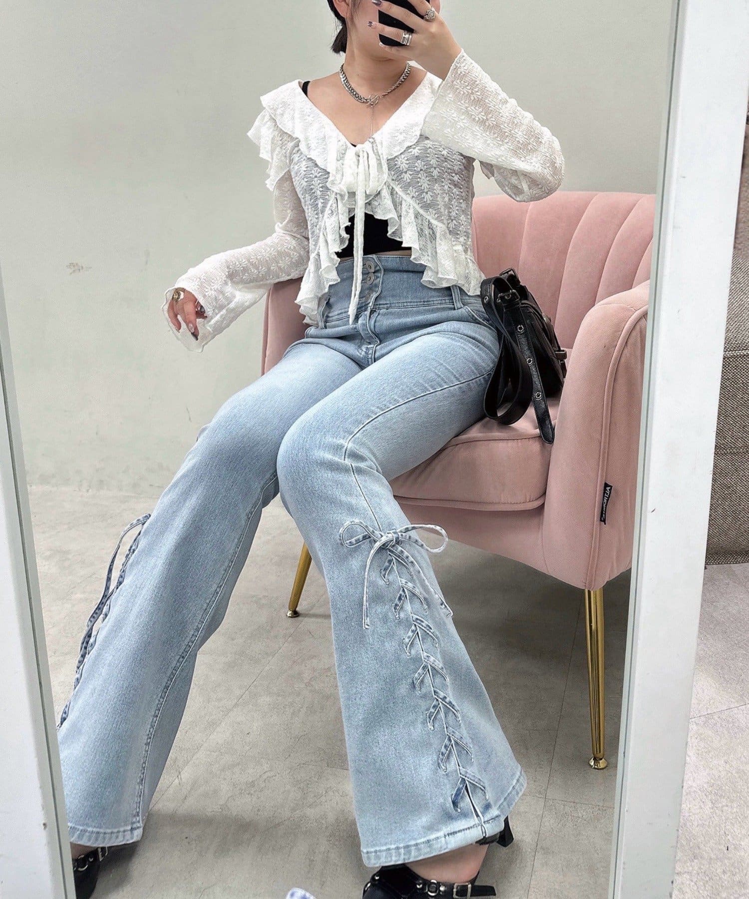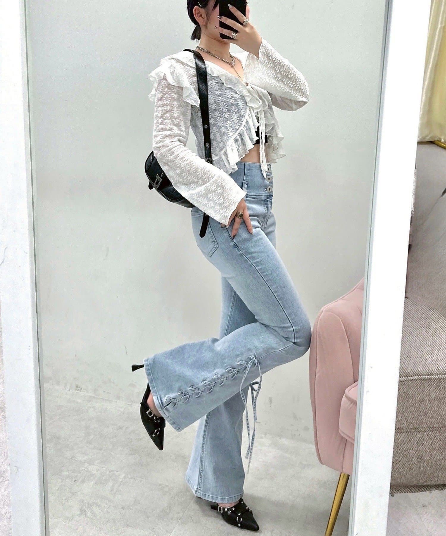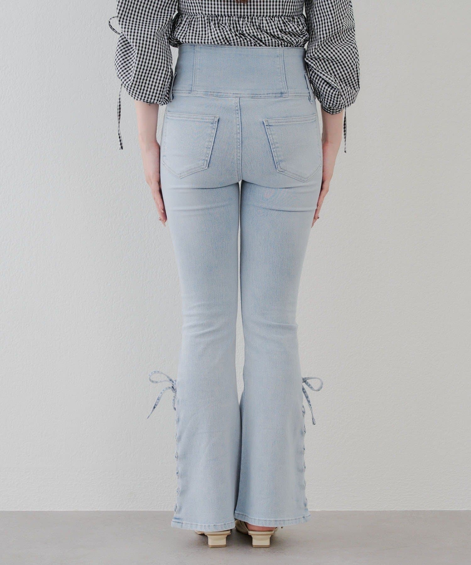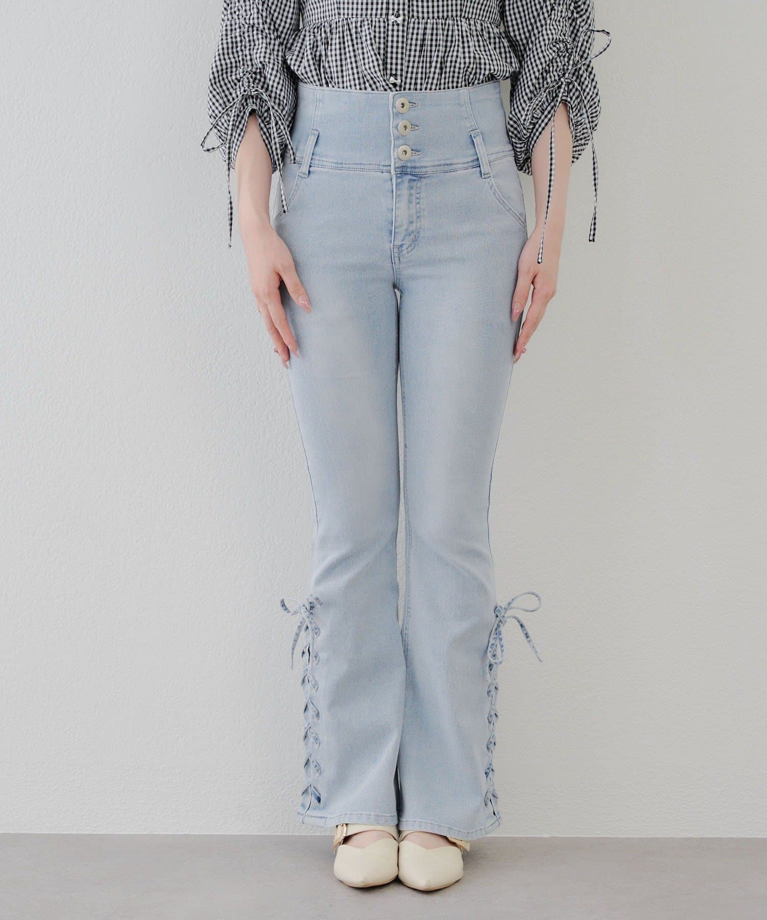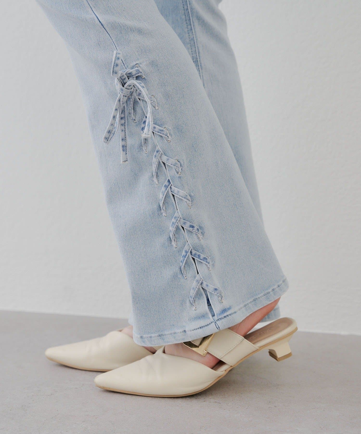 【ANOTHER BRANCH】【マイナス5㎏見え】サイドレースUPフレアデニム