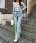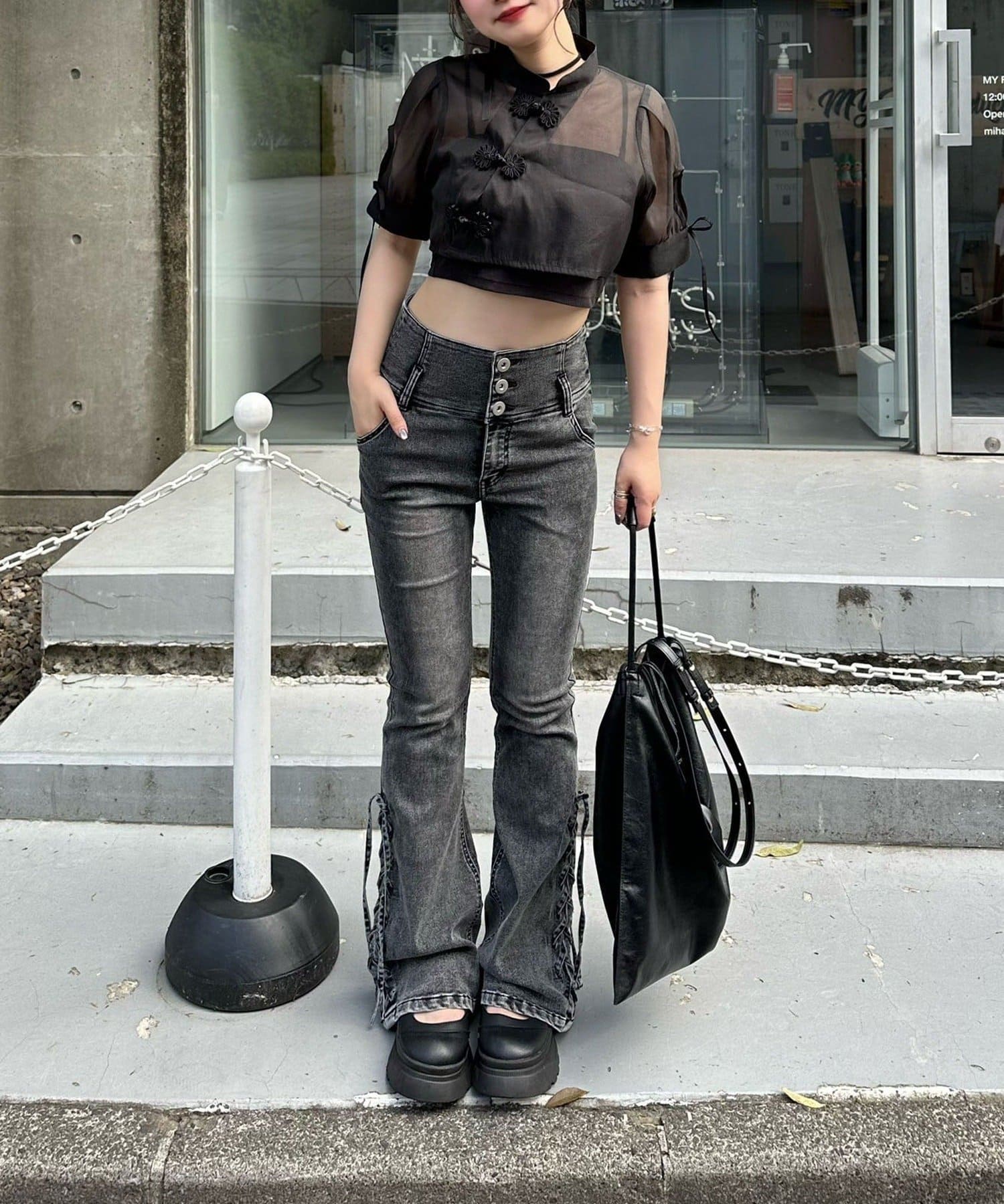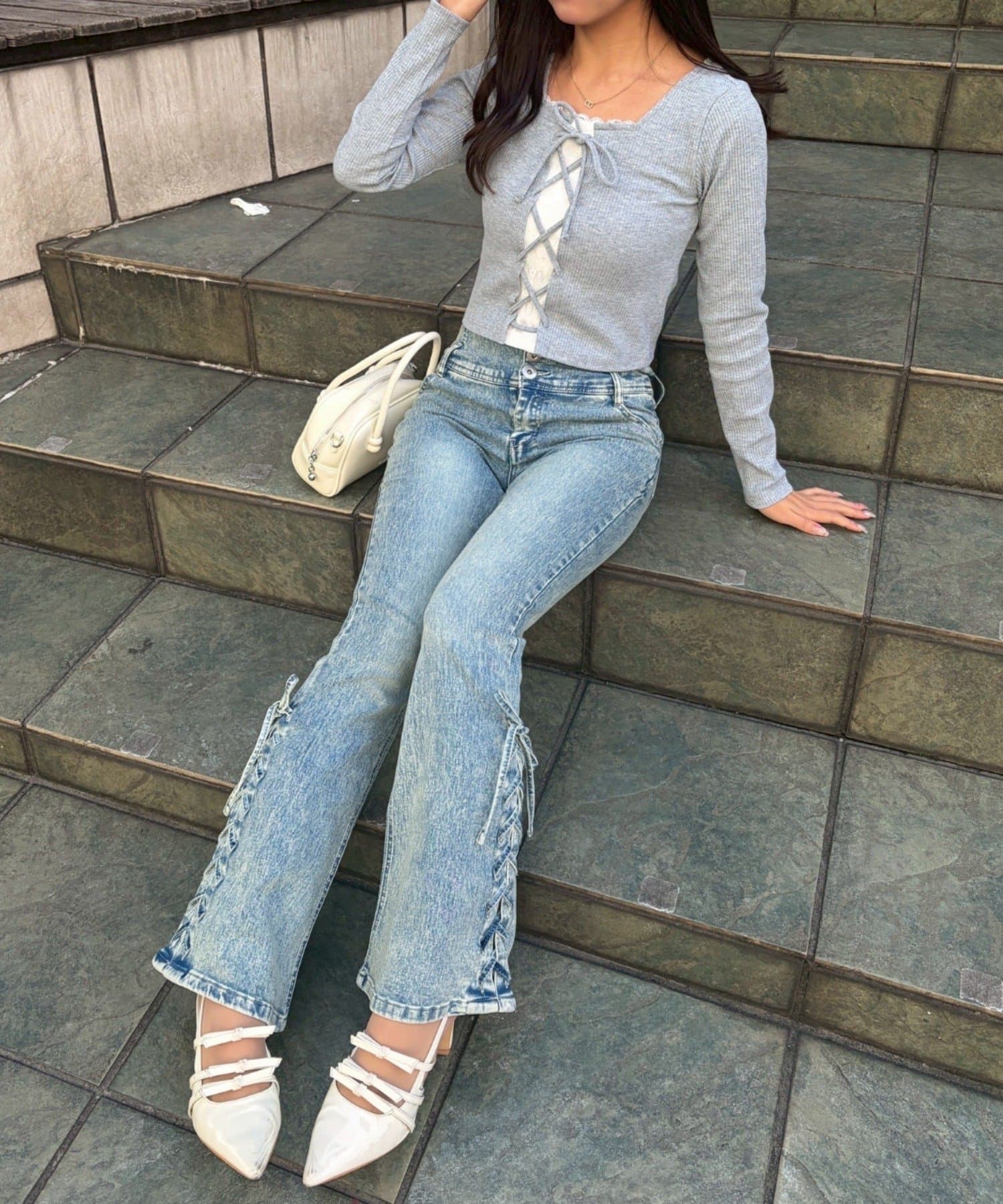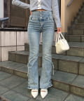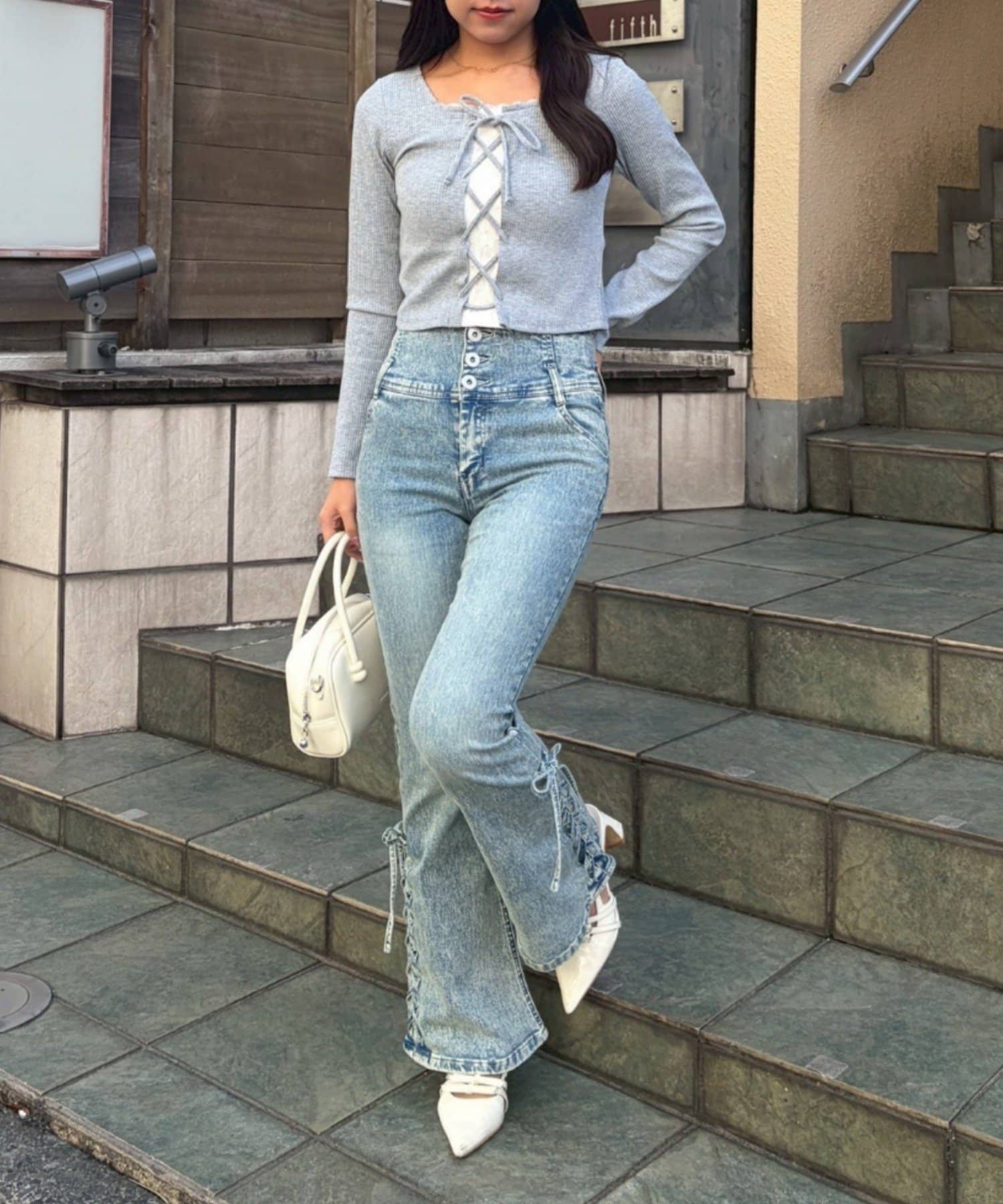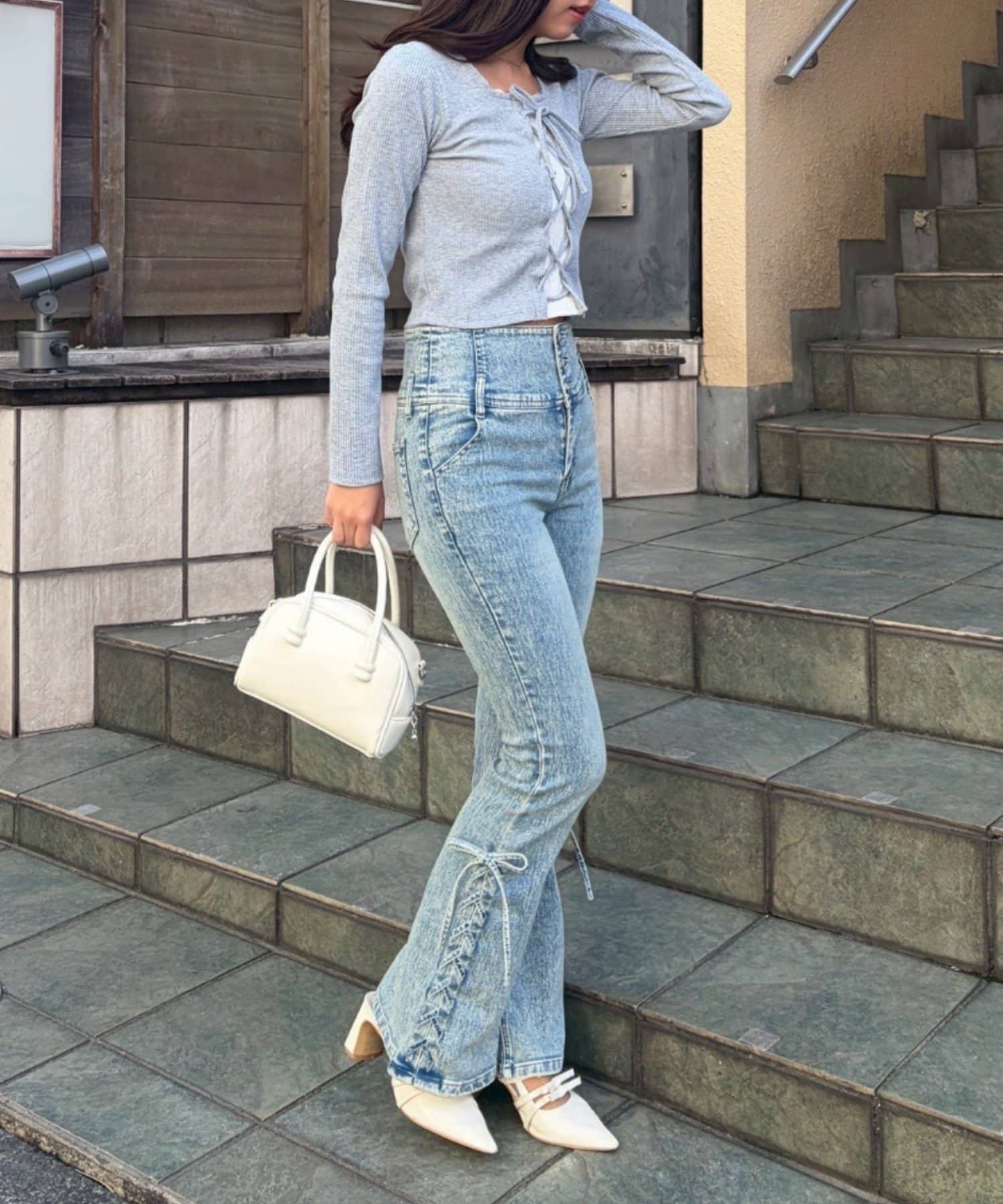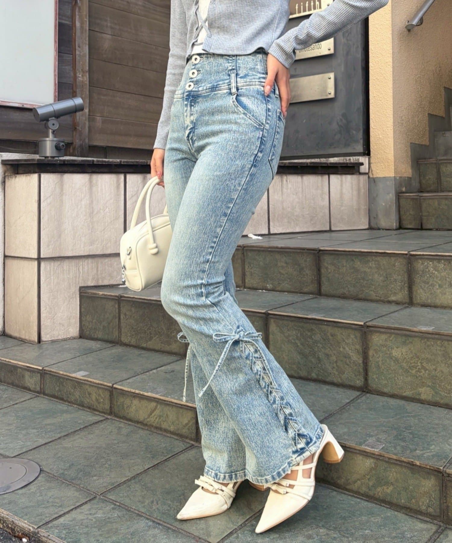 【ANOTHER BRANCH】【マイナス5㎏見え】サイドレースUPフレアデニム