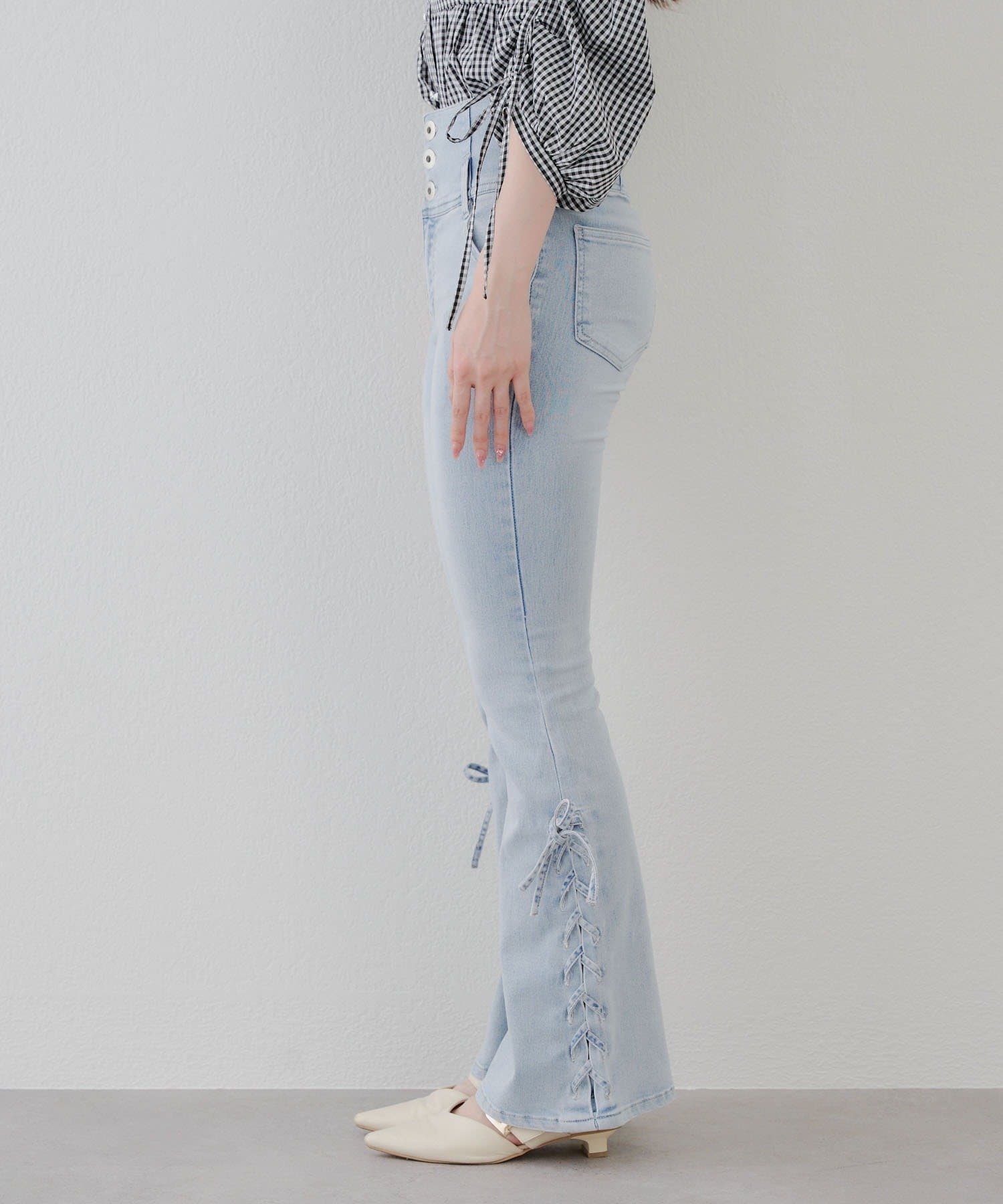 TOP > NICE CLAUP / OLIVE des OLIVE OUTLET > レディース > パンツ > デニムパンツ > 【ANOTHER BRANCH】【マイナス5㎏見え】サイドレースUPフレアデニム
