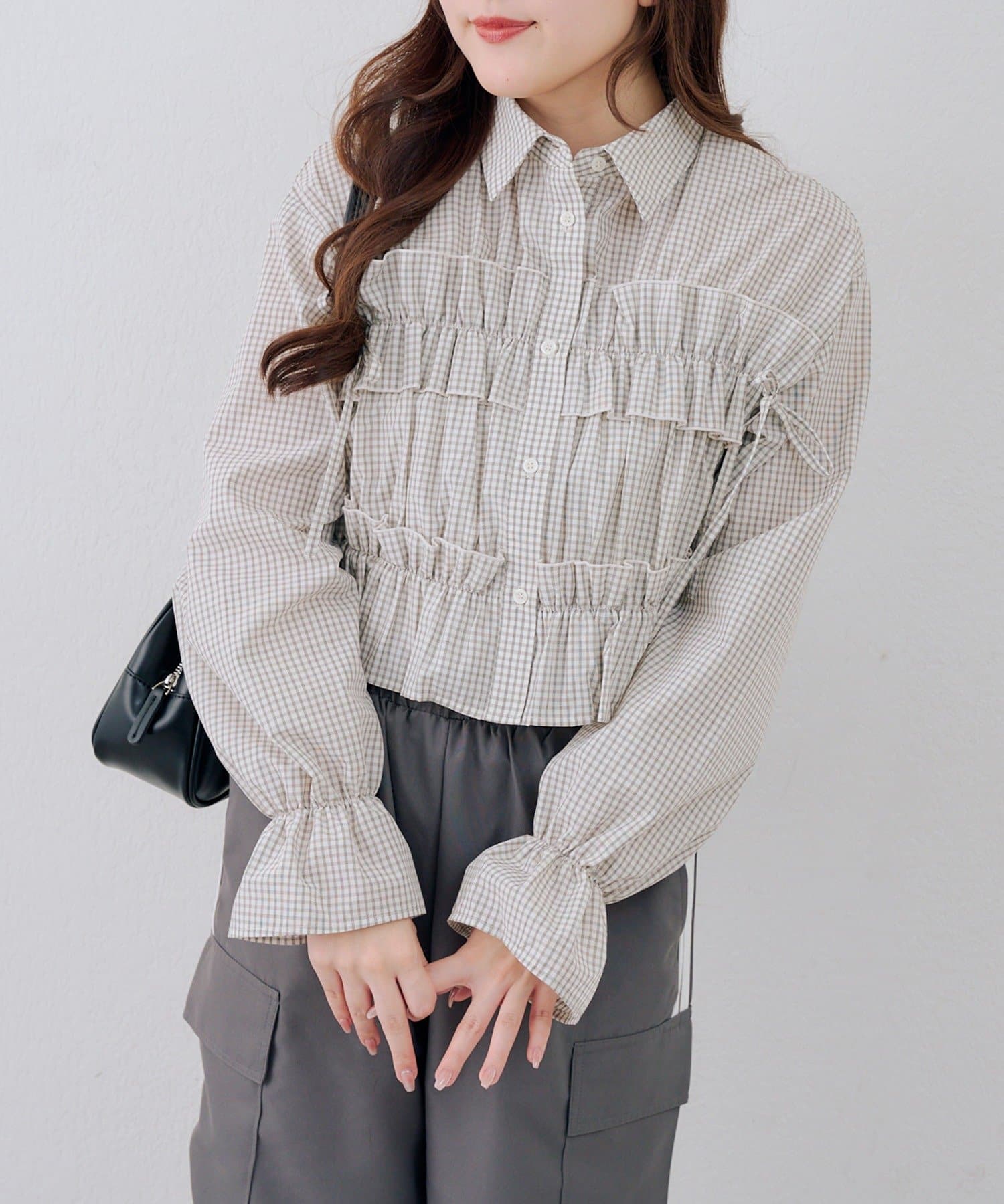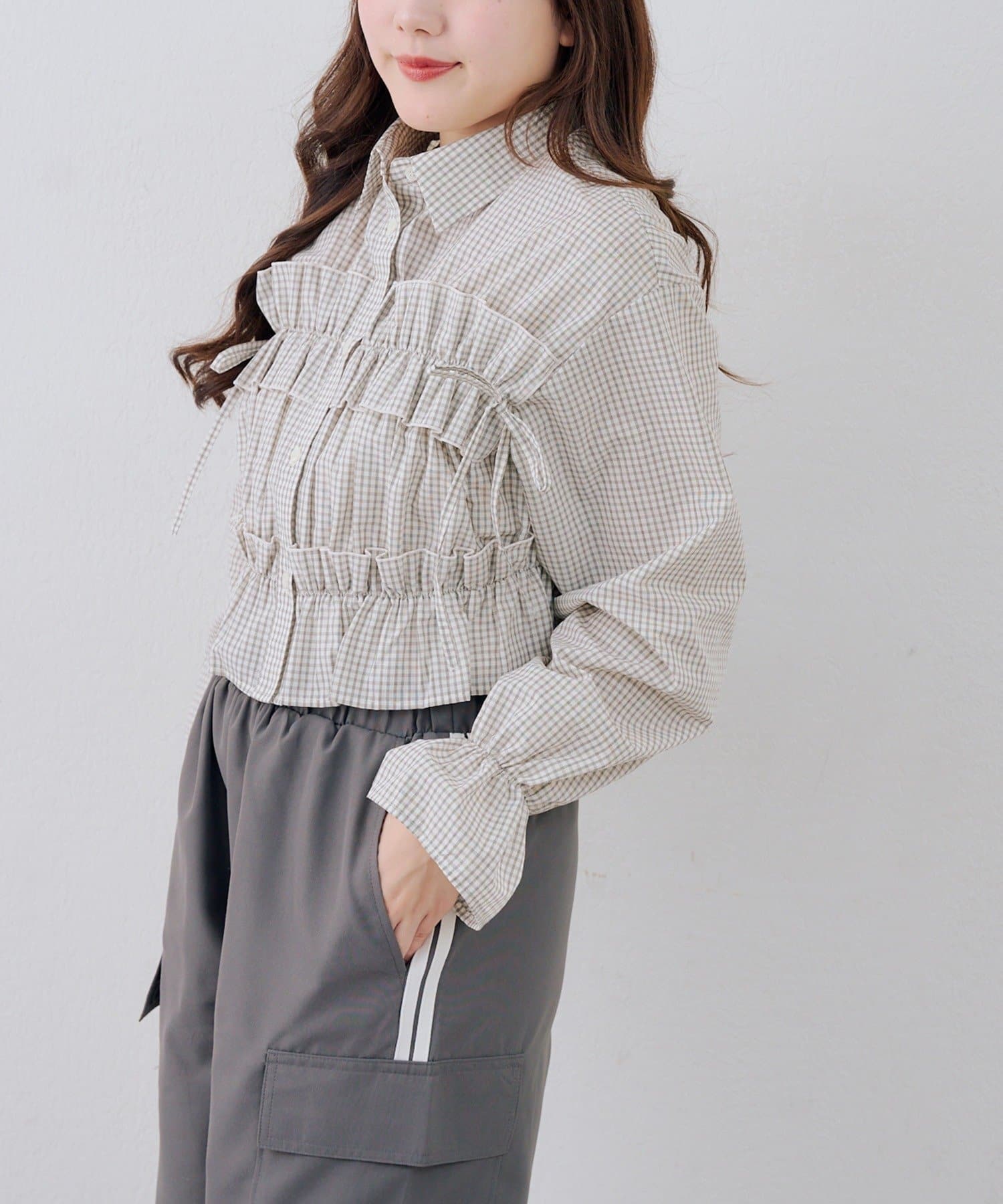 TOP > NICE CLAUP / OLIVE des OLIVE OUTLET > レディース > トップス > シャツ/ブラウス(ボタン) > 【RMAF】フリルショートブラウス