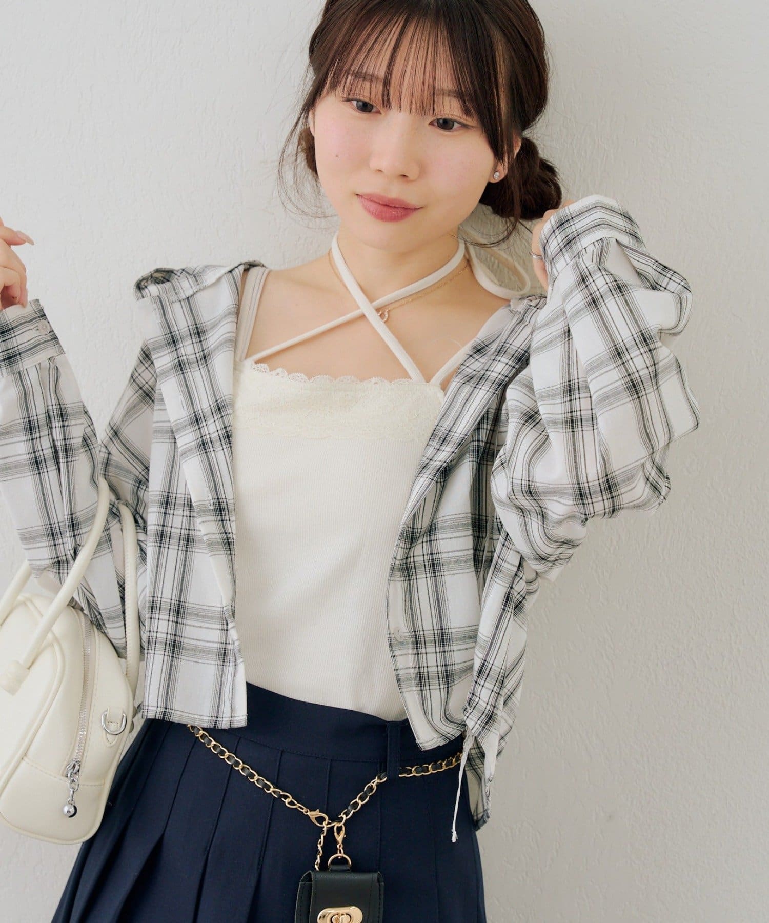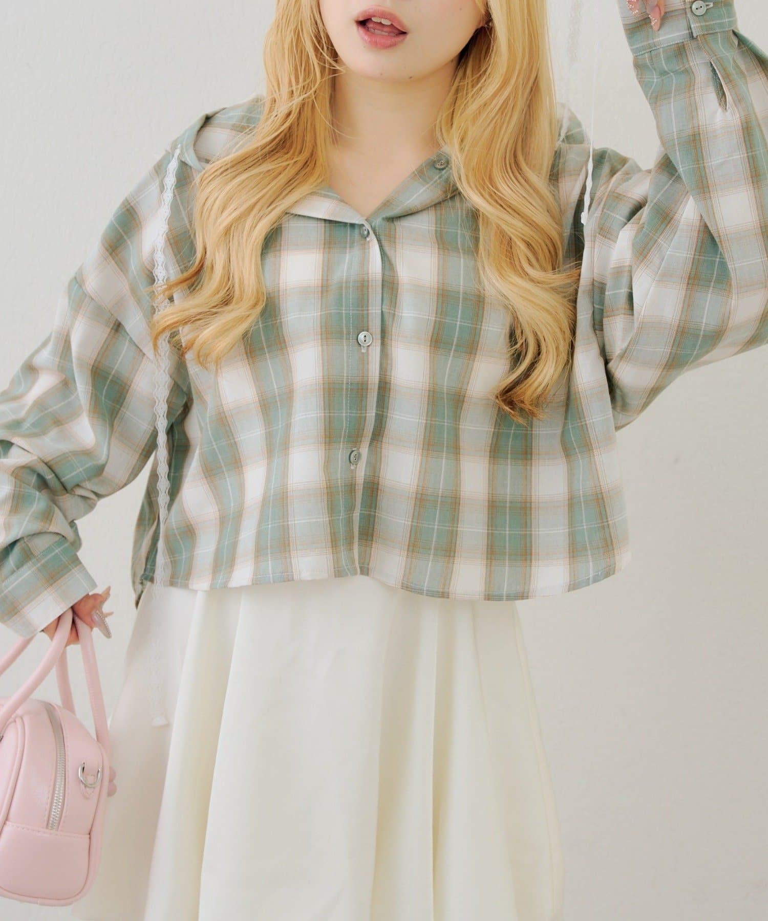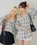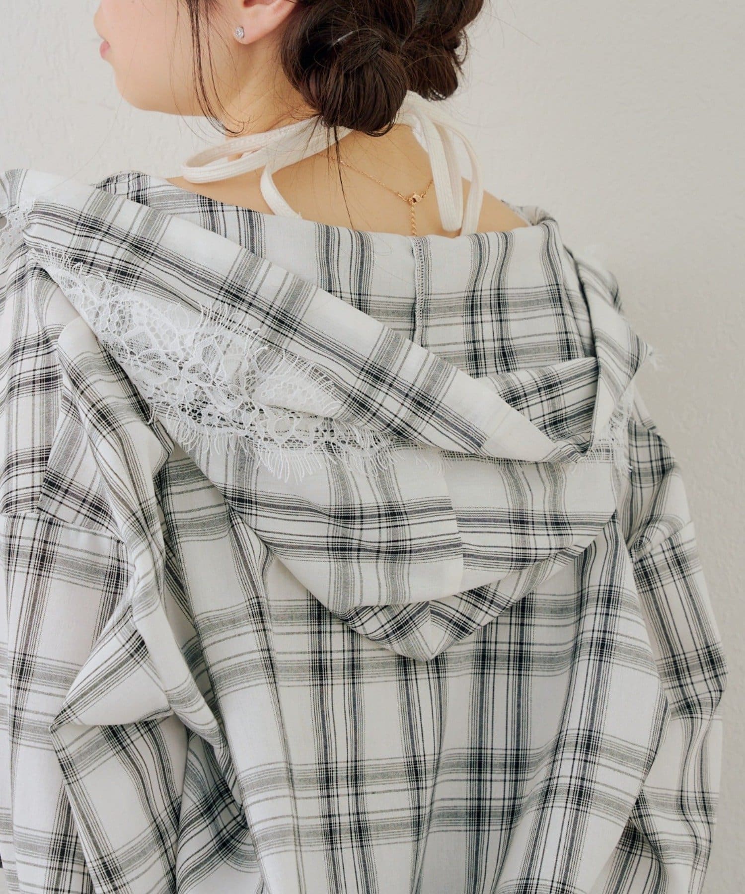 【RMAF】チェックフードレース付ブラウス