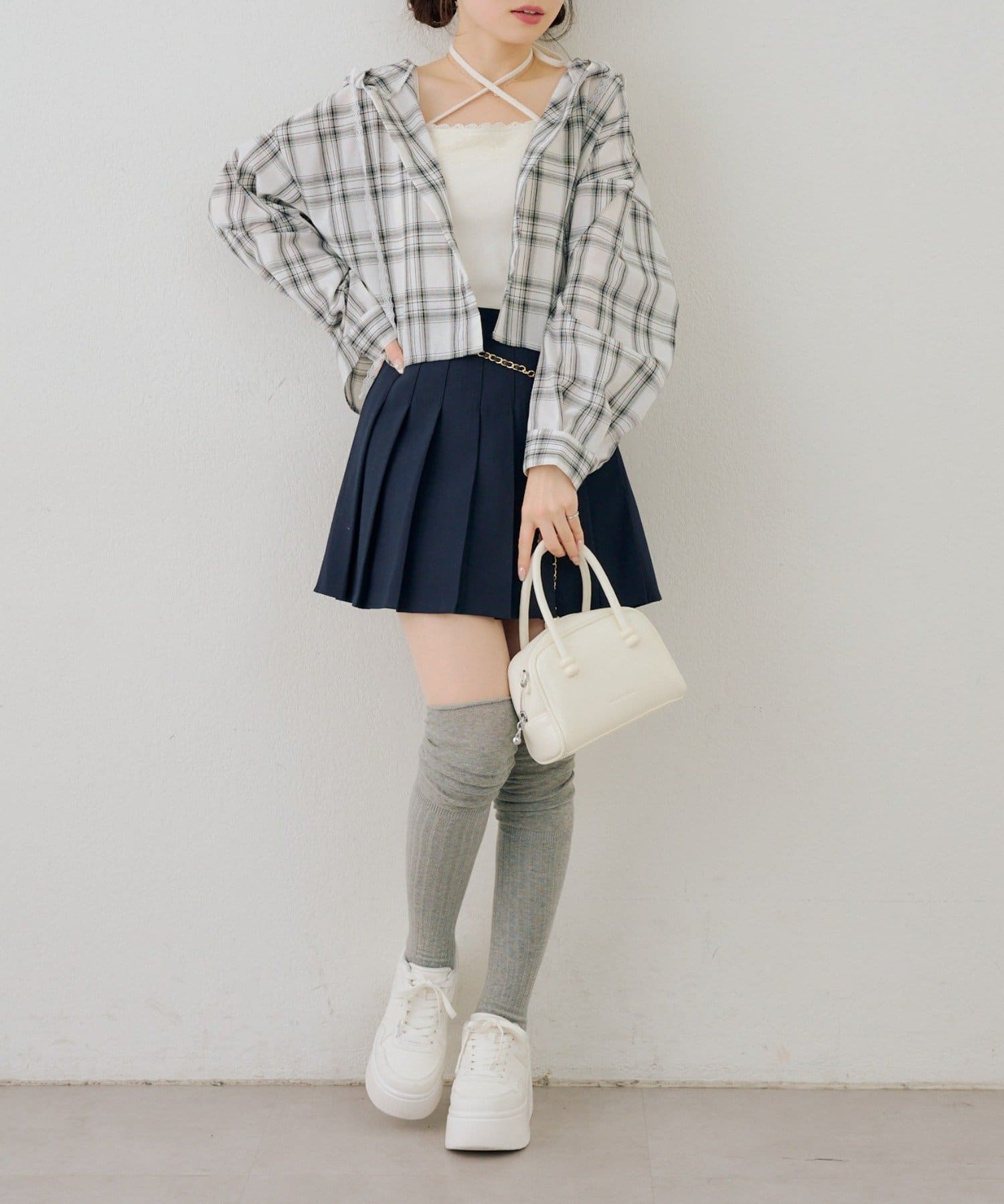 ・ミドル丈はヒップまでかかる丈感で体型カバーできちゃう!ミニスカ合わせでワンピ風に着こなすのが◎