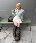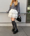 ・デニムと合わせて、甘辛MIXスタイルに。足元はスニーカーでカジュアルダウン