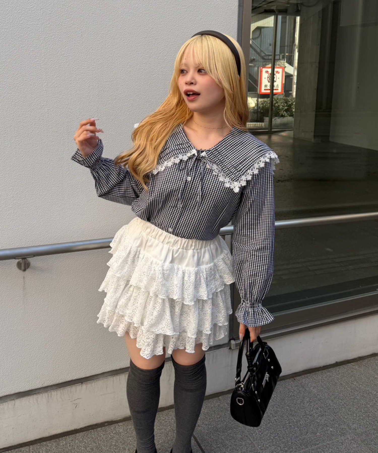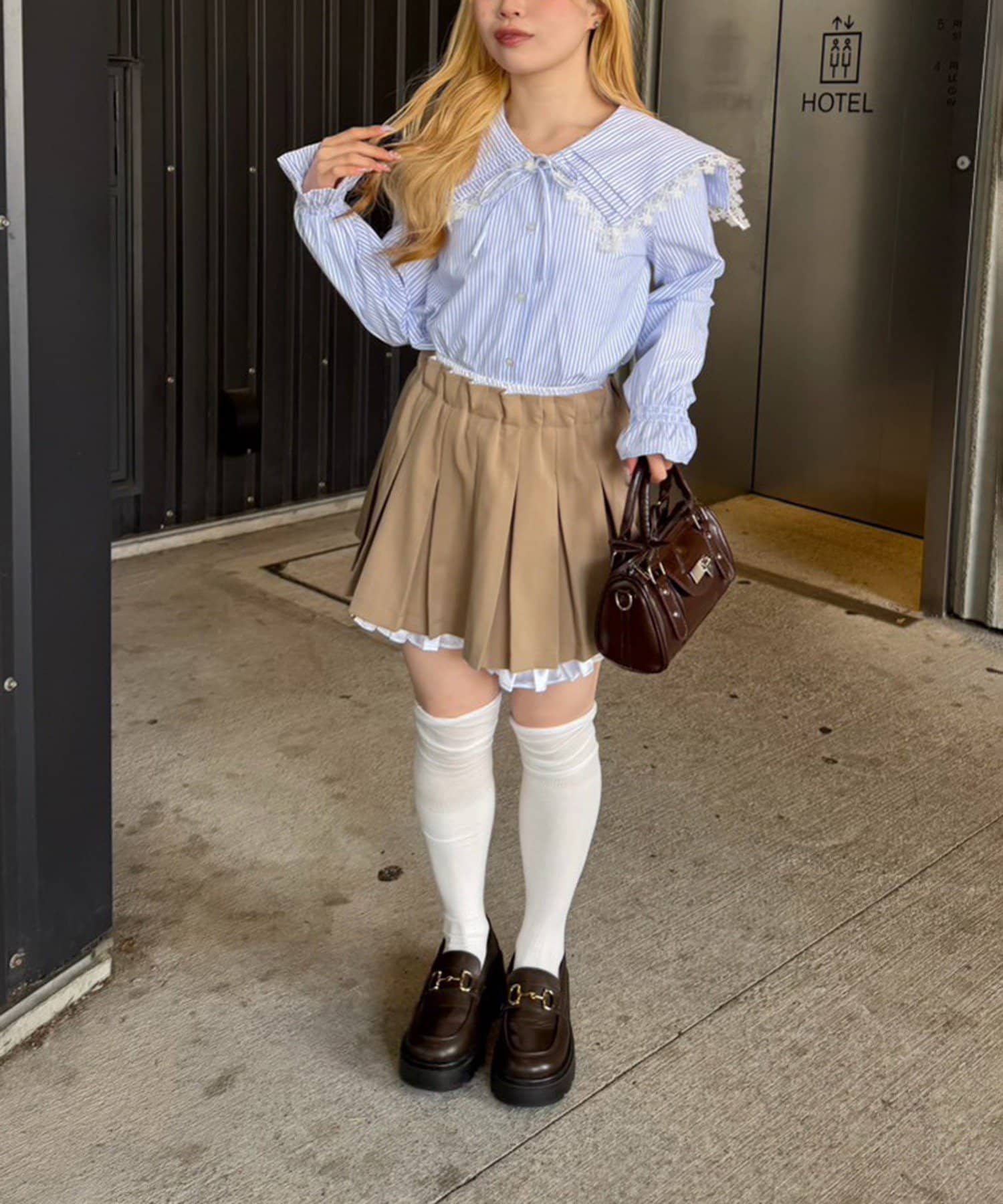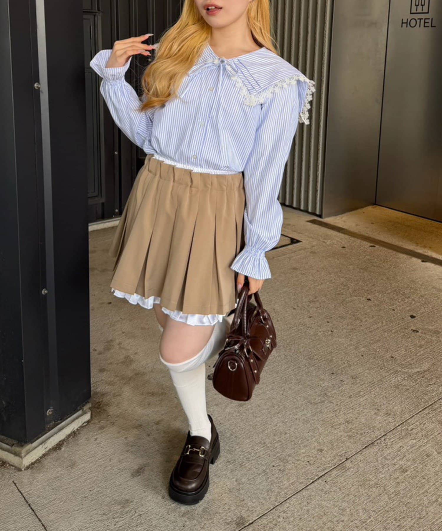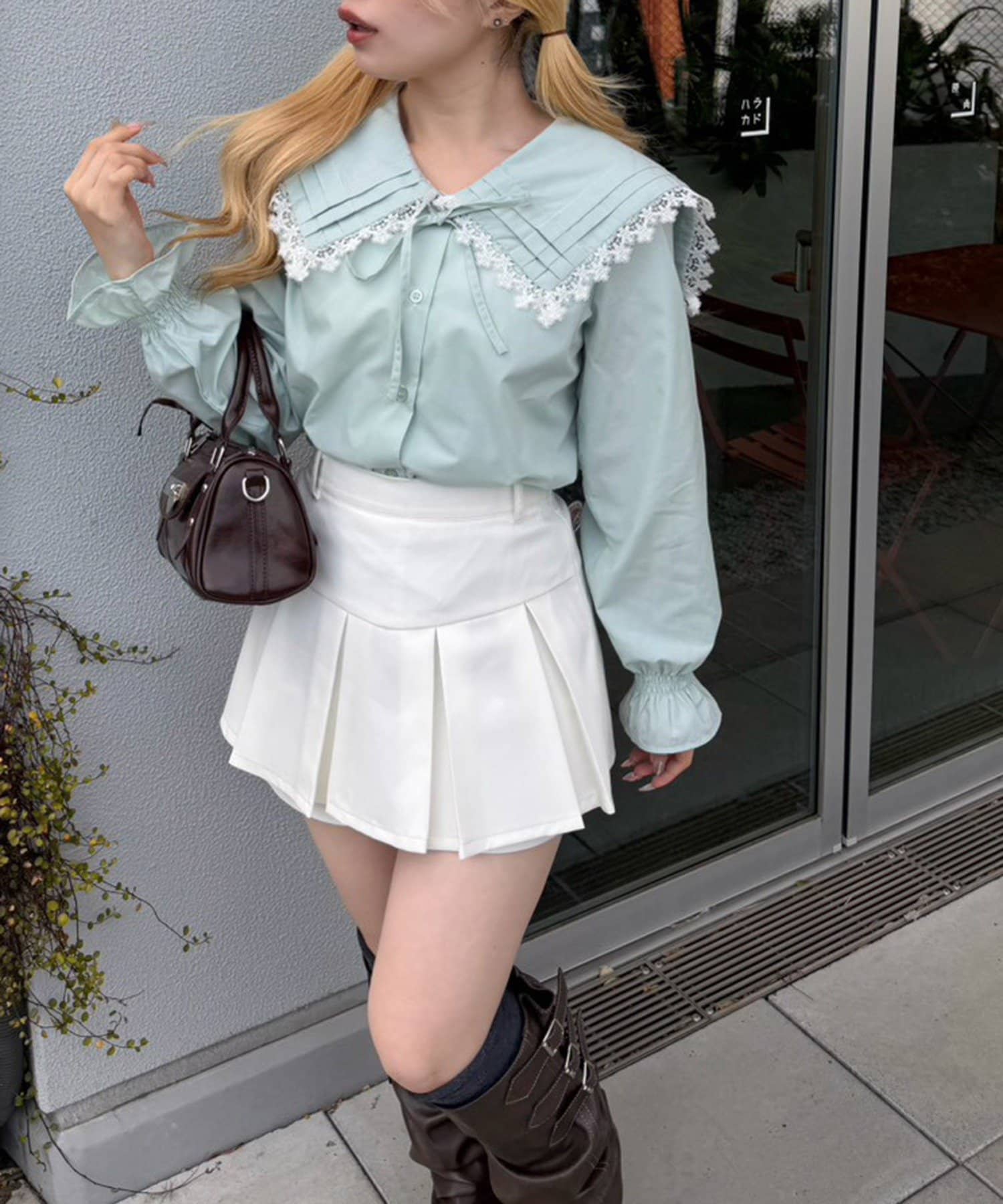 【Another Branch】ピンタック&レースでか衿ブラウス