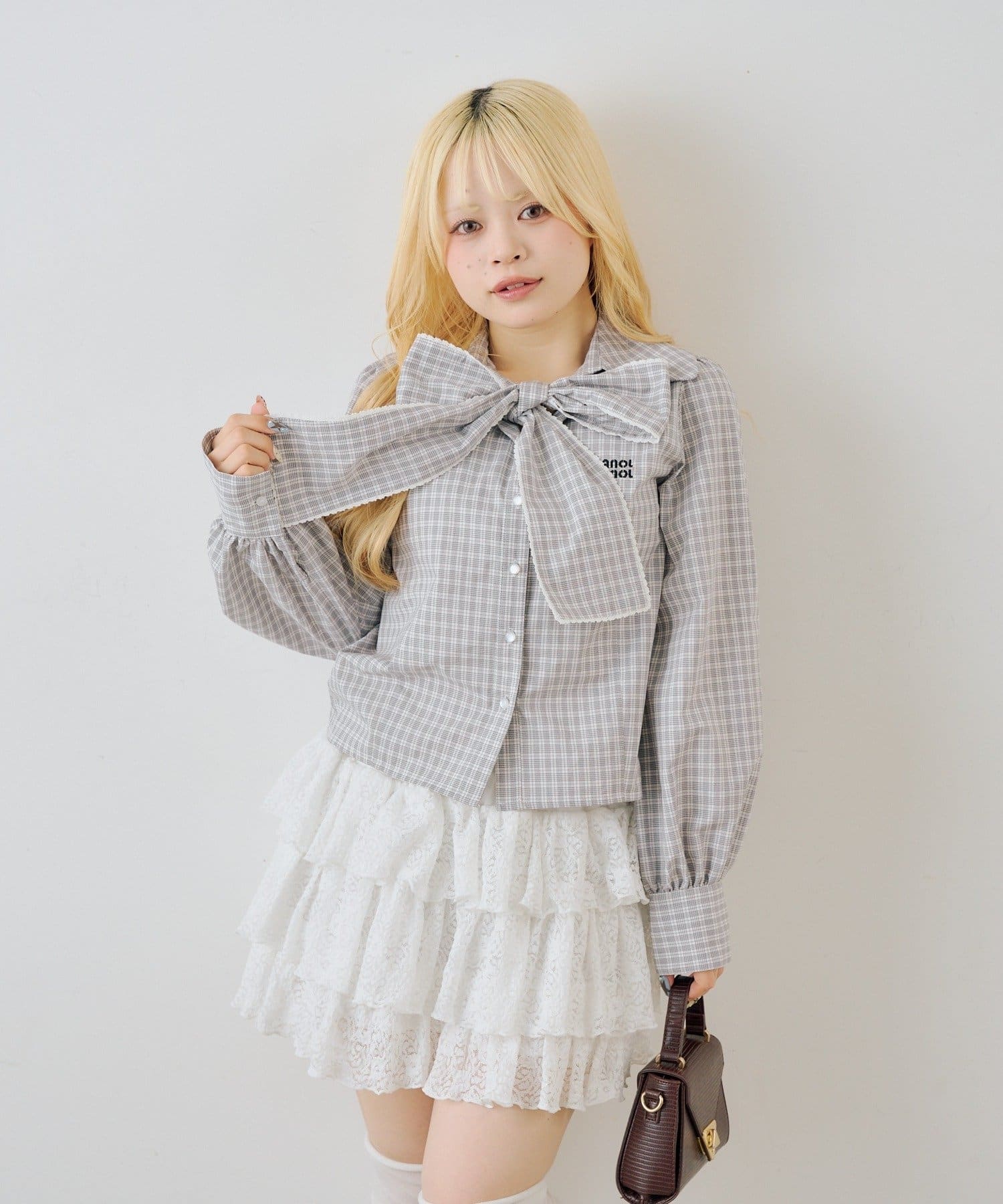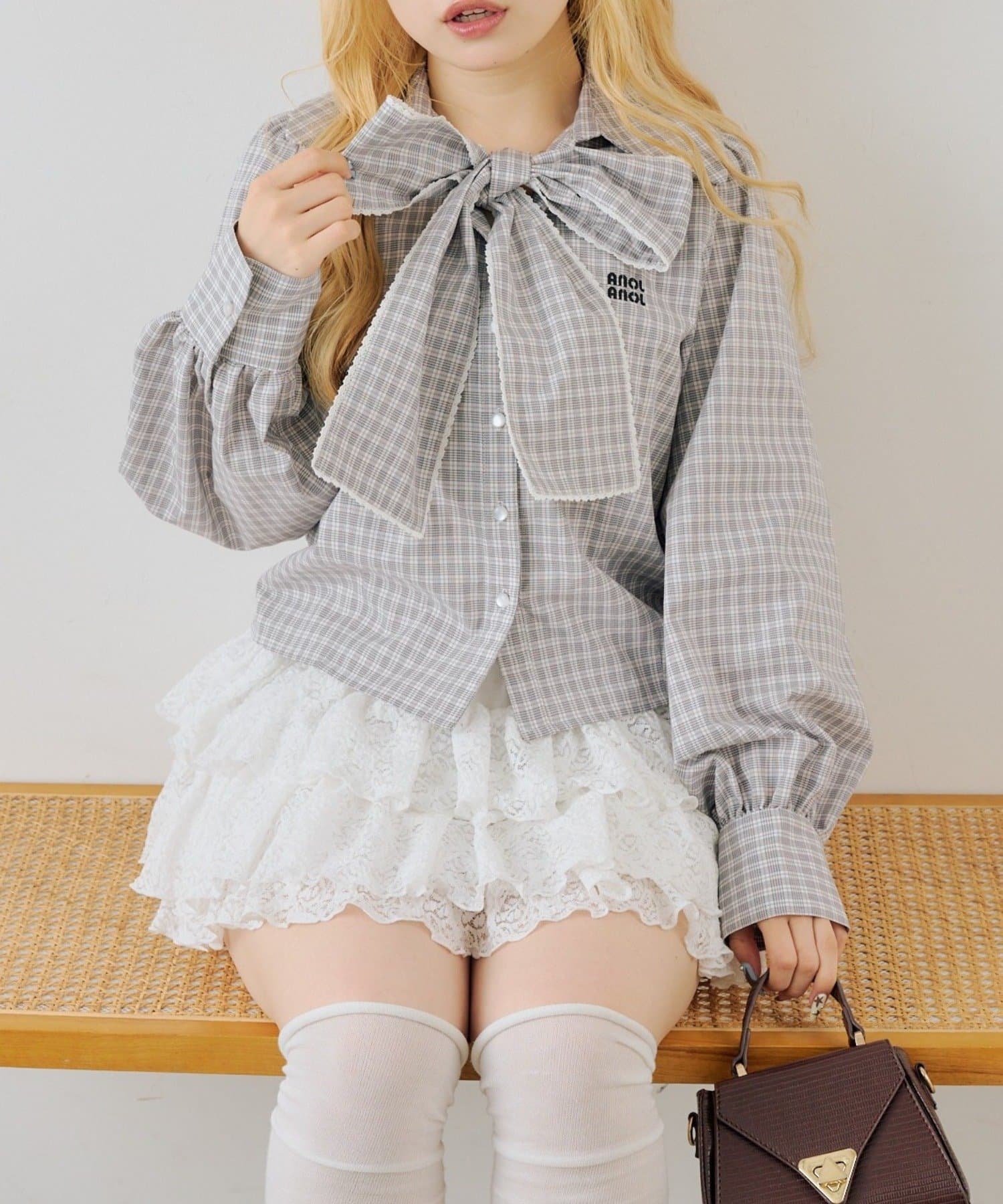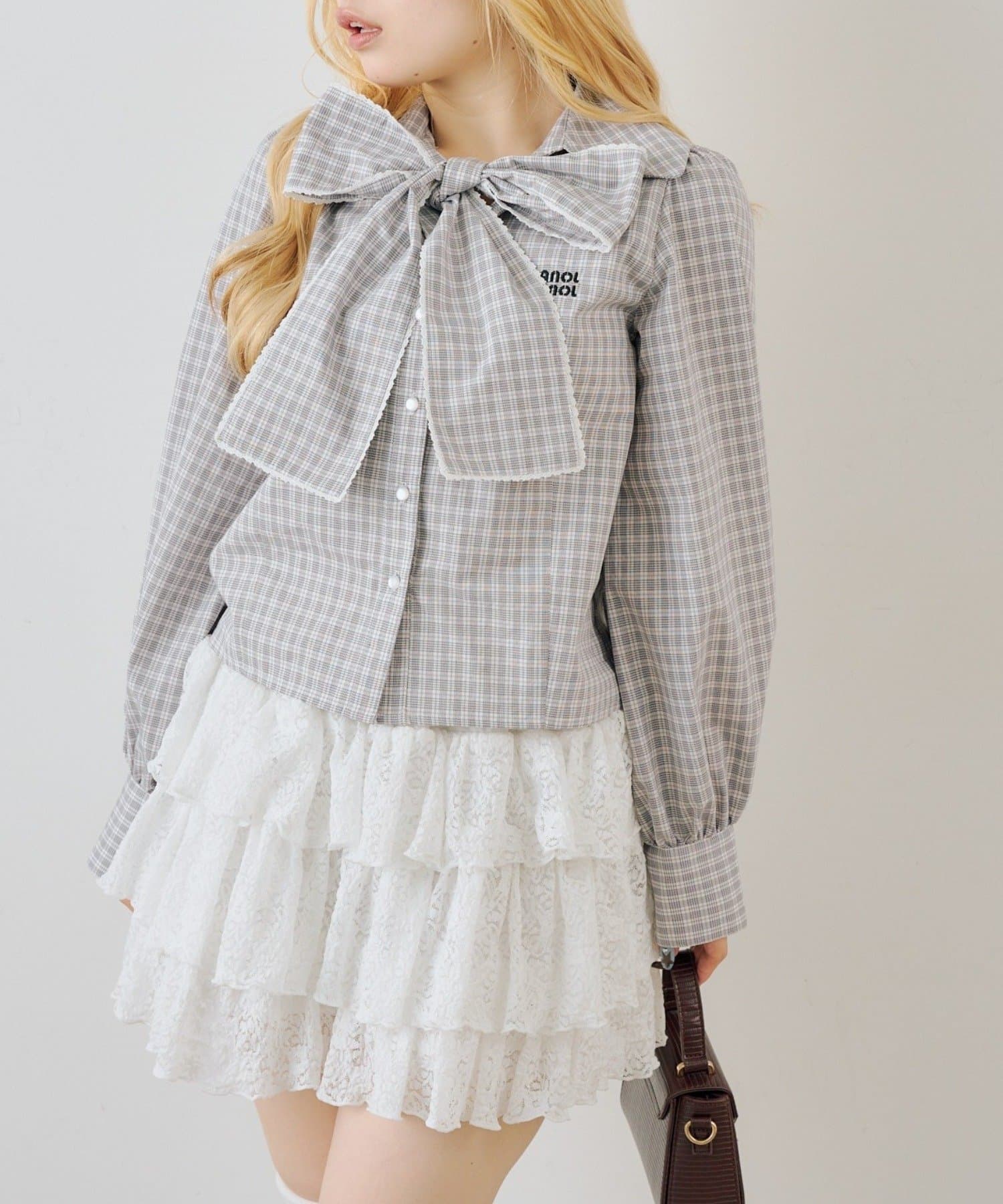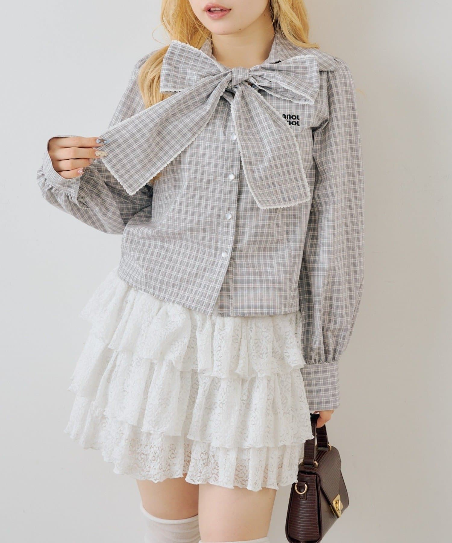 • NICE CLAUP / OLIVE des OLIVE OUTLET(ナイスクラップ  / オリーブ デ オリーブ アウトレット) 【ANOTHER BRANCH】リボン取り外し可能!ピコレースボウタイブラウス