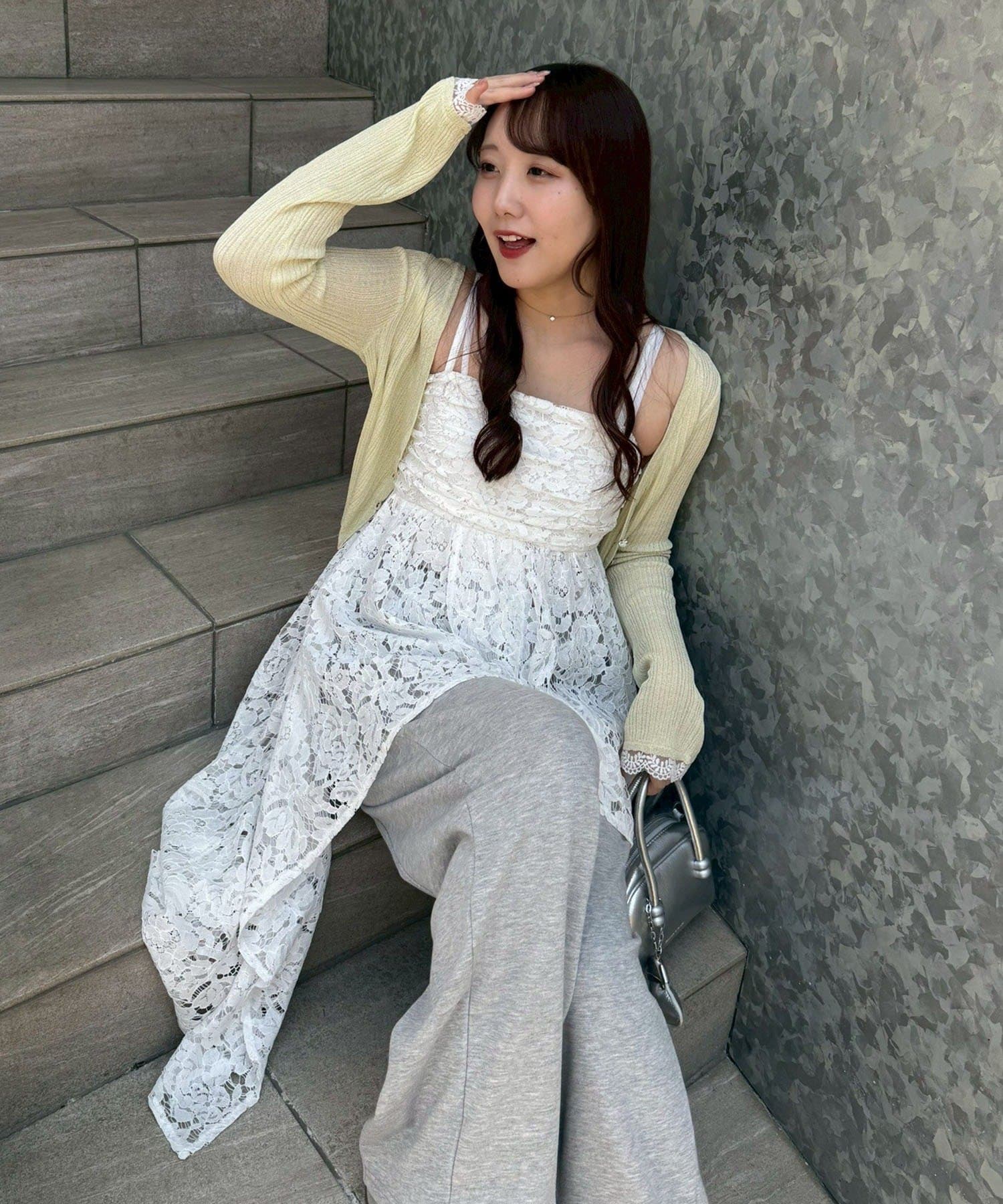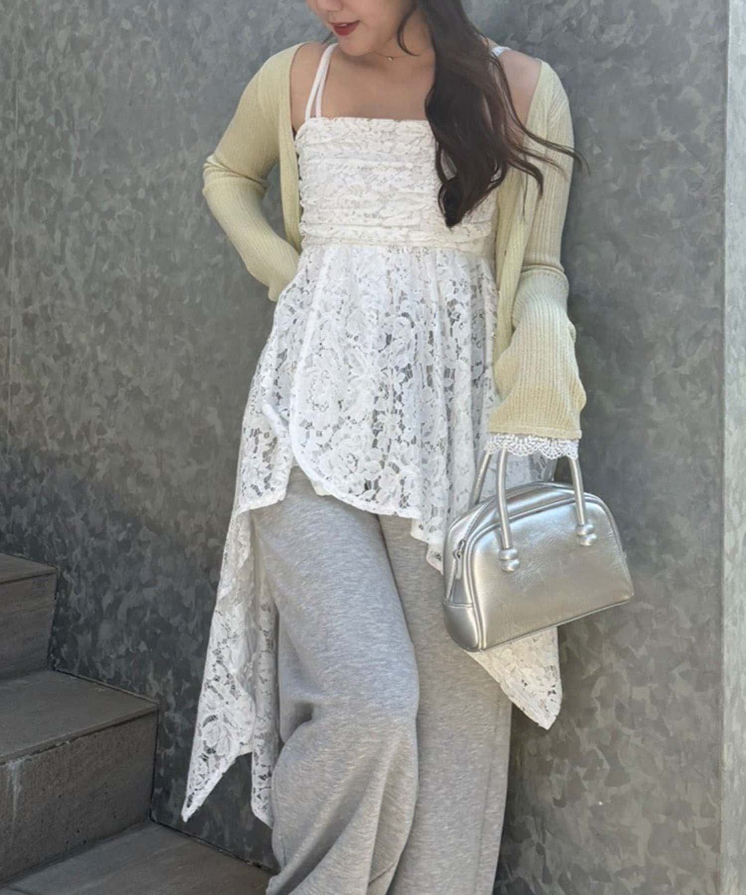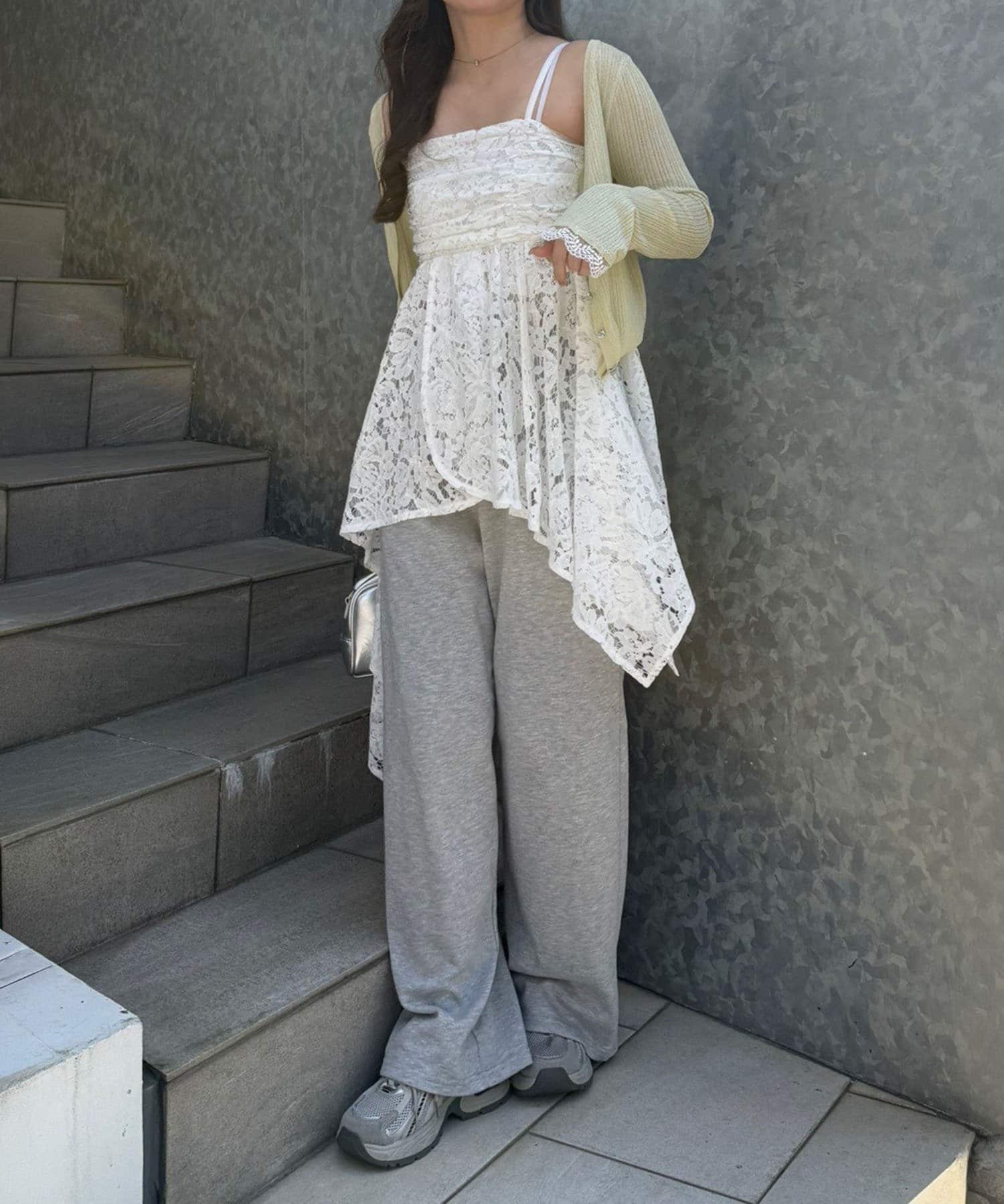 ・繊細なレースが軽やかな印象を与える、イレヘムキャミチュニック