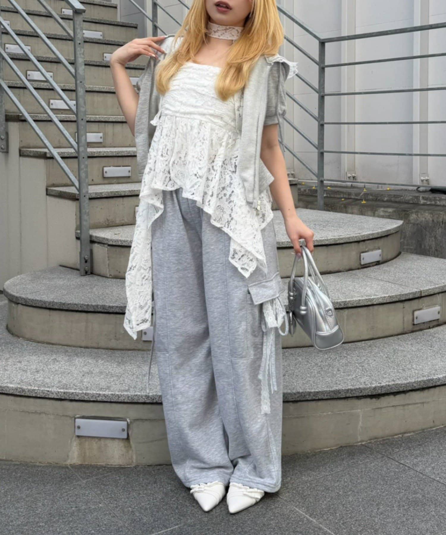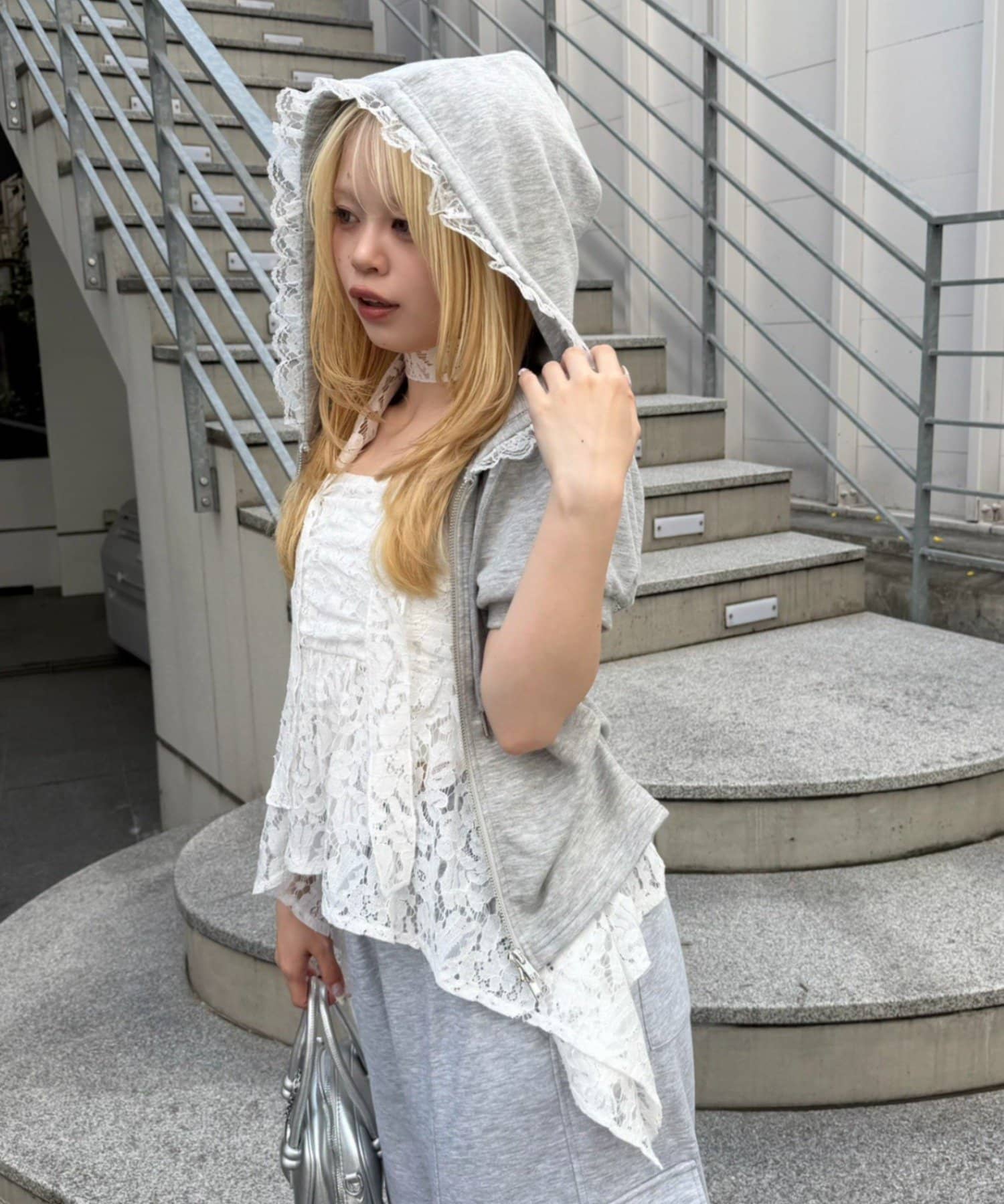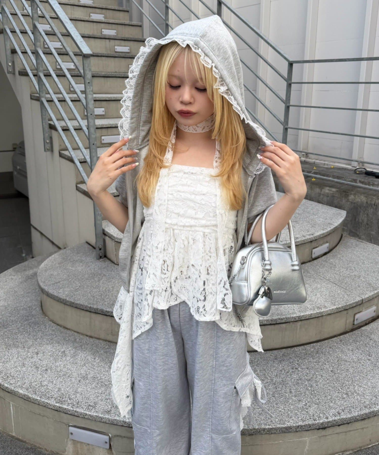 ・繊細なレースが軽やかな印象を与える、イレヘムキャミチュニック