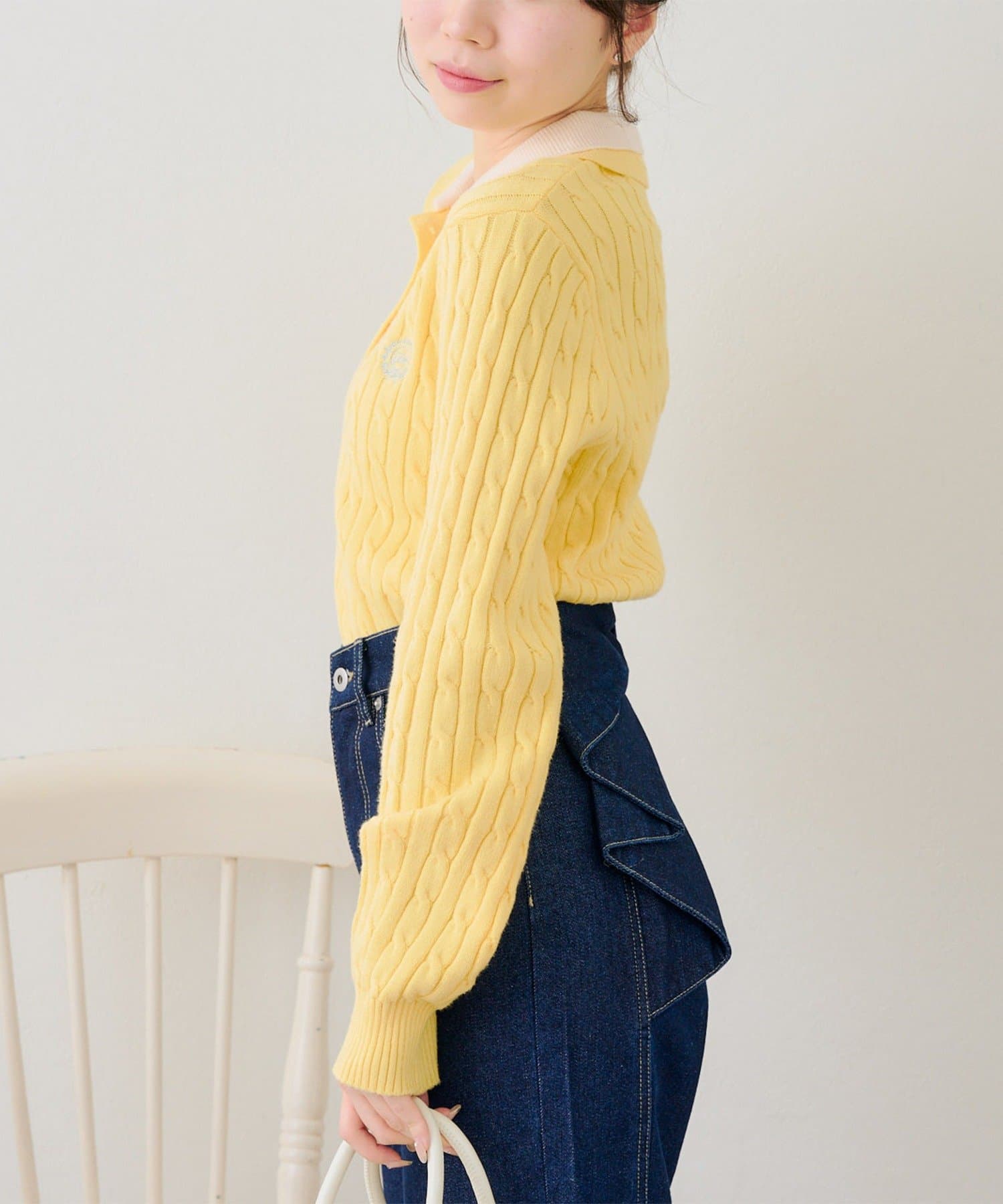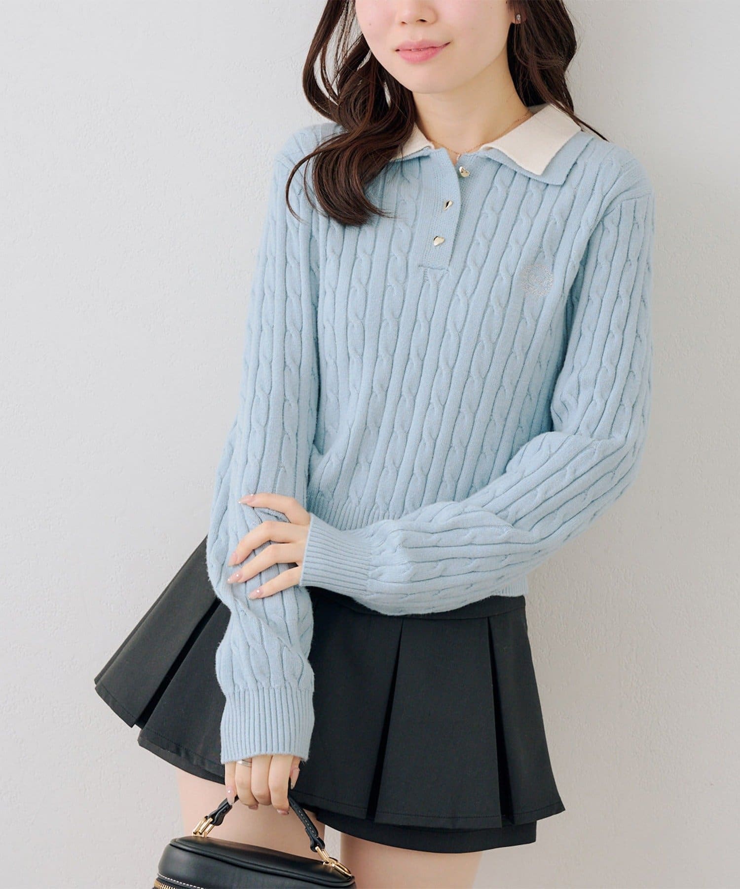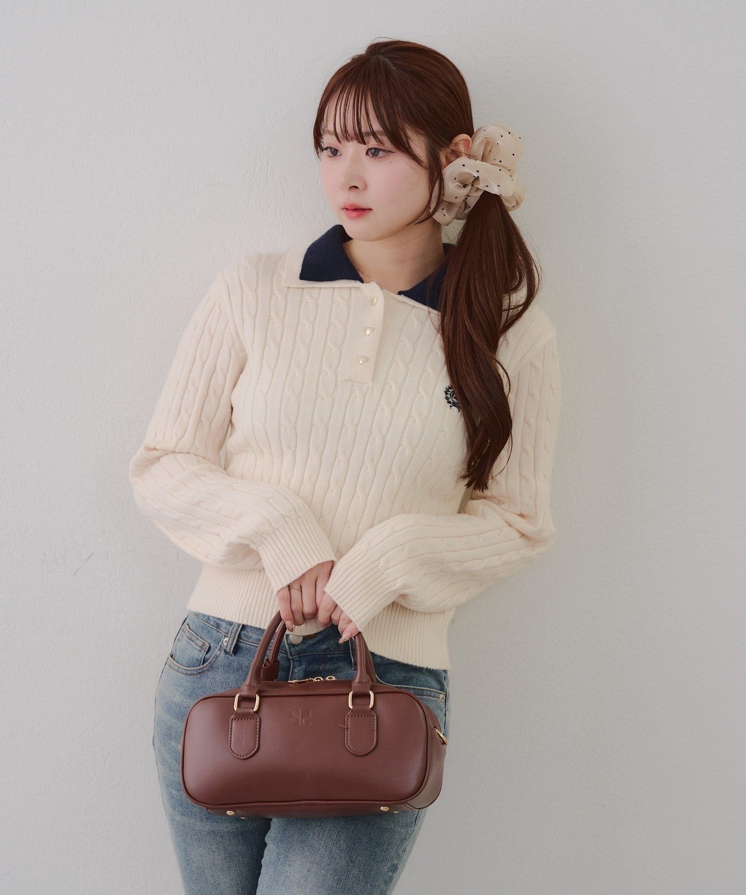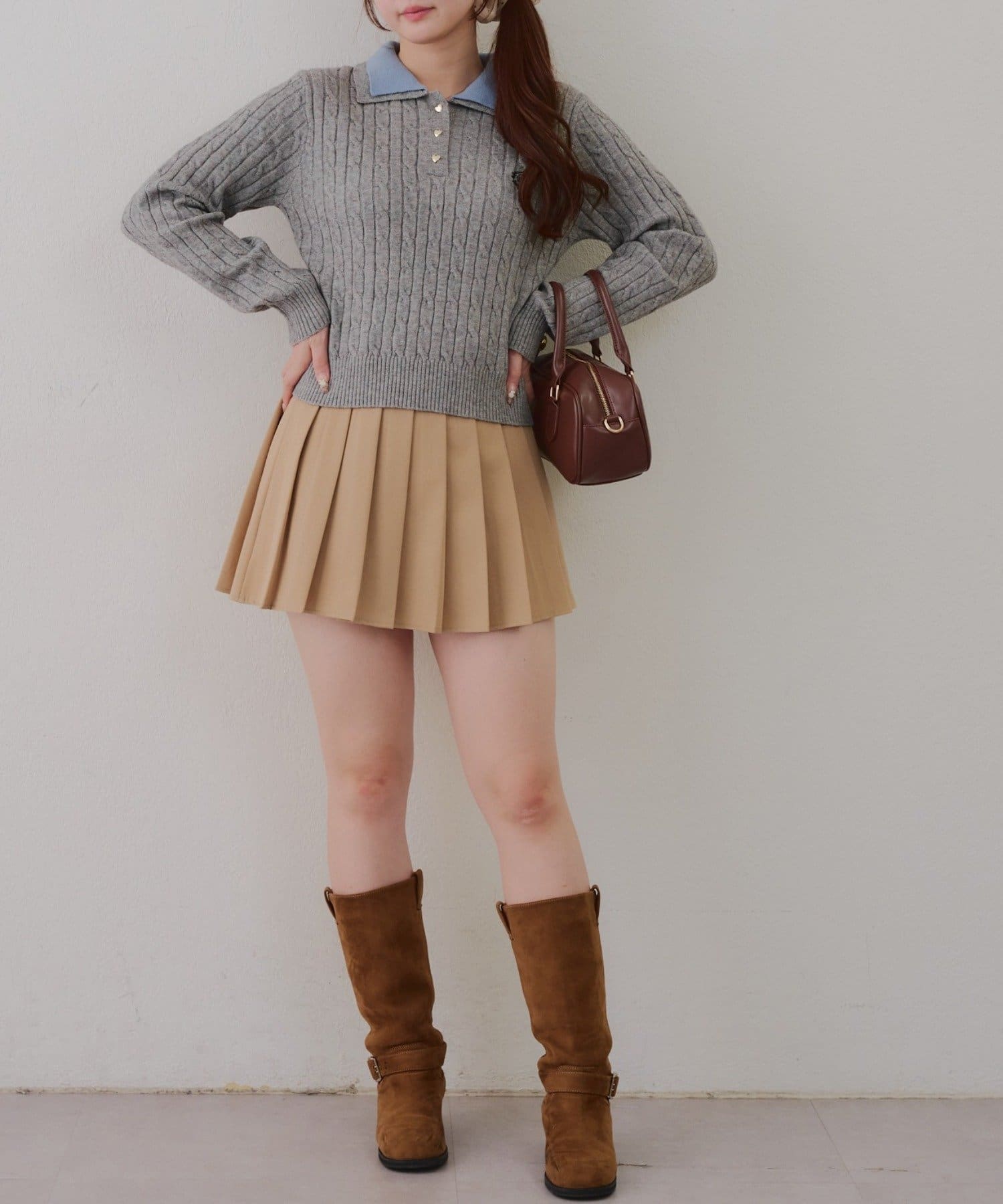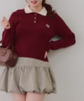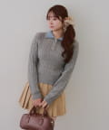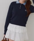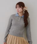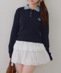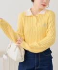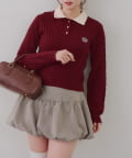 ・二枚襟が旬な印象にしてくれるポロニットトップス