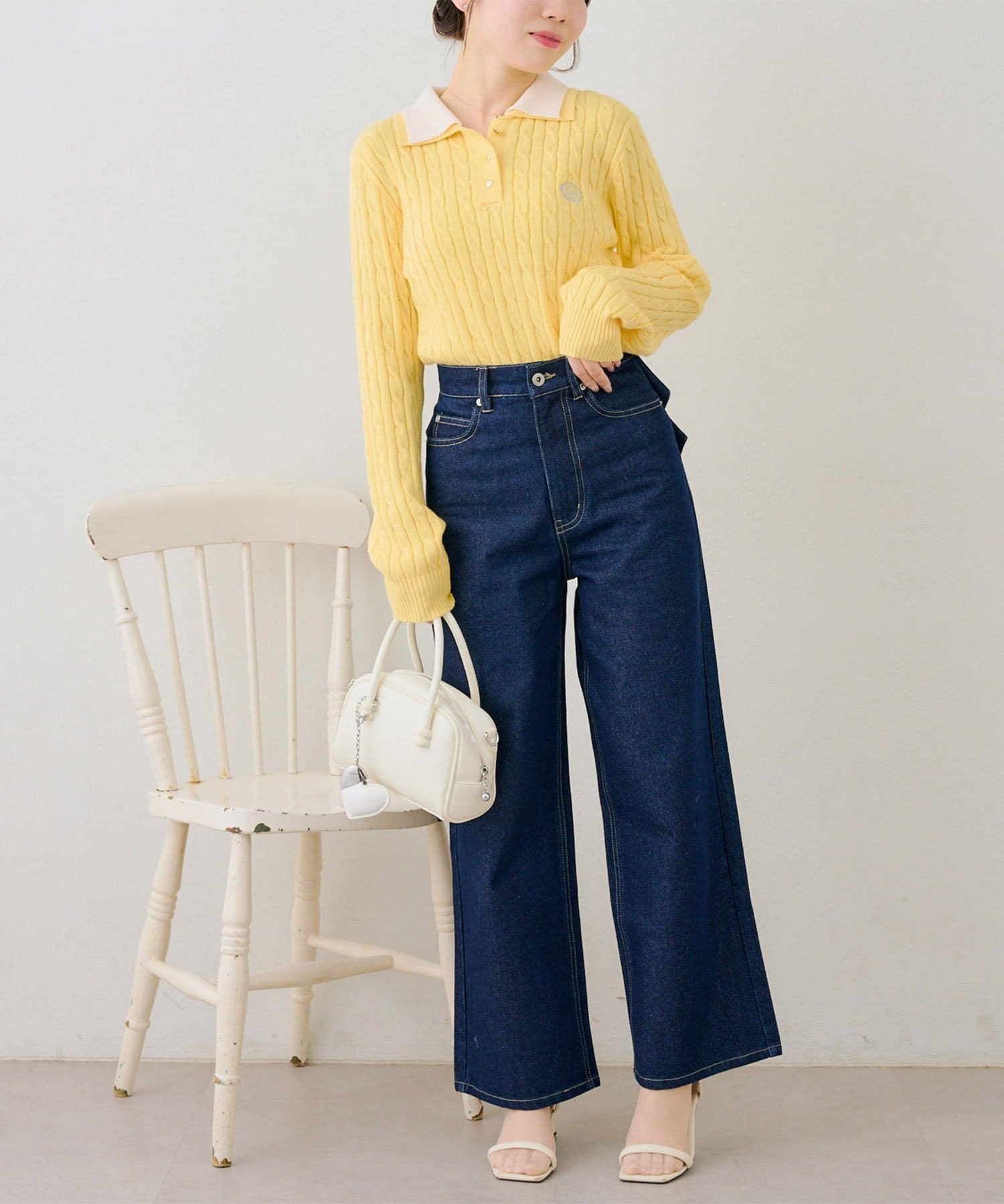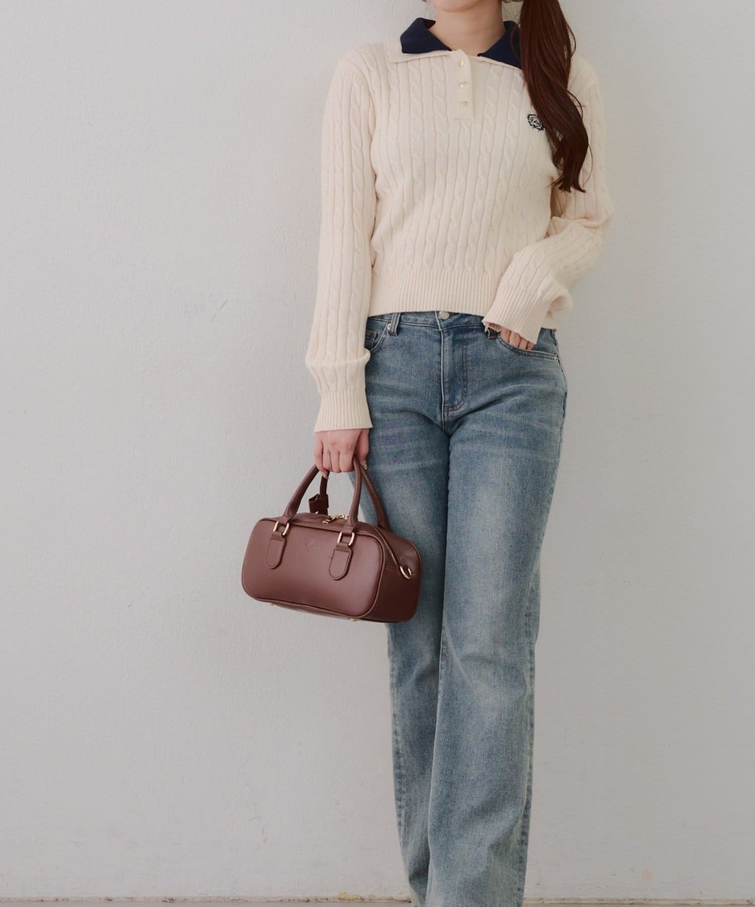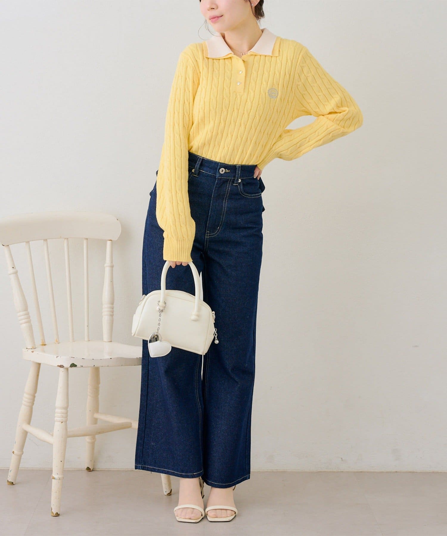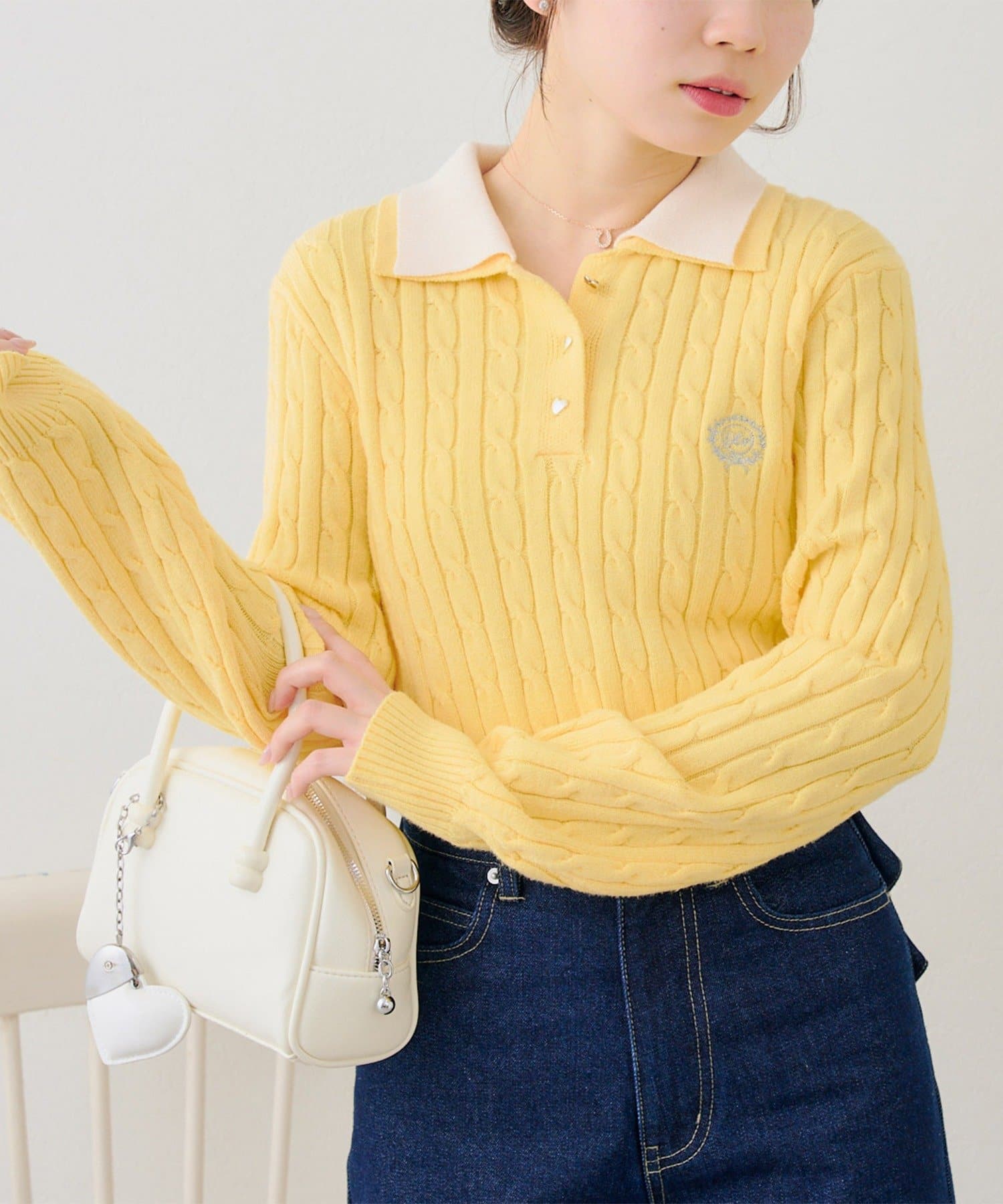・二枚襟が旬な印象にしてくれるポロニットトップス