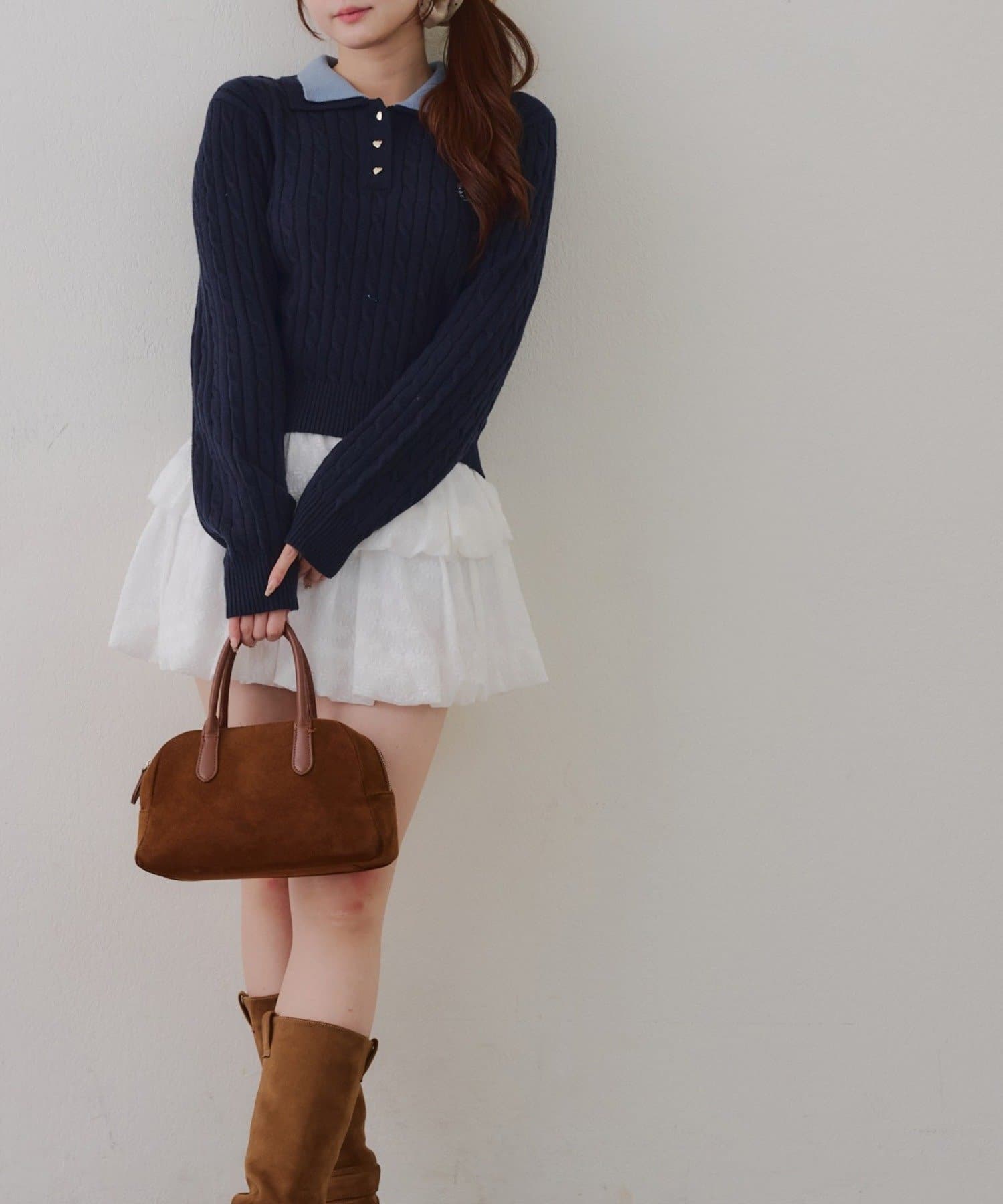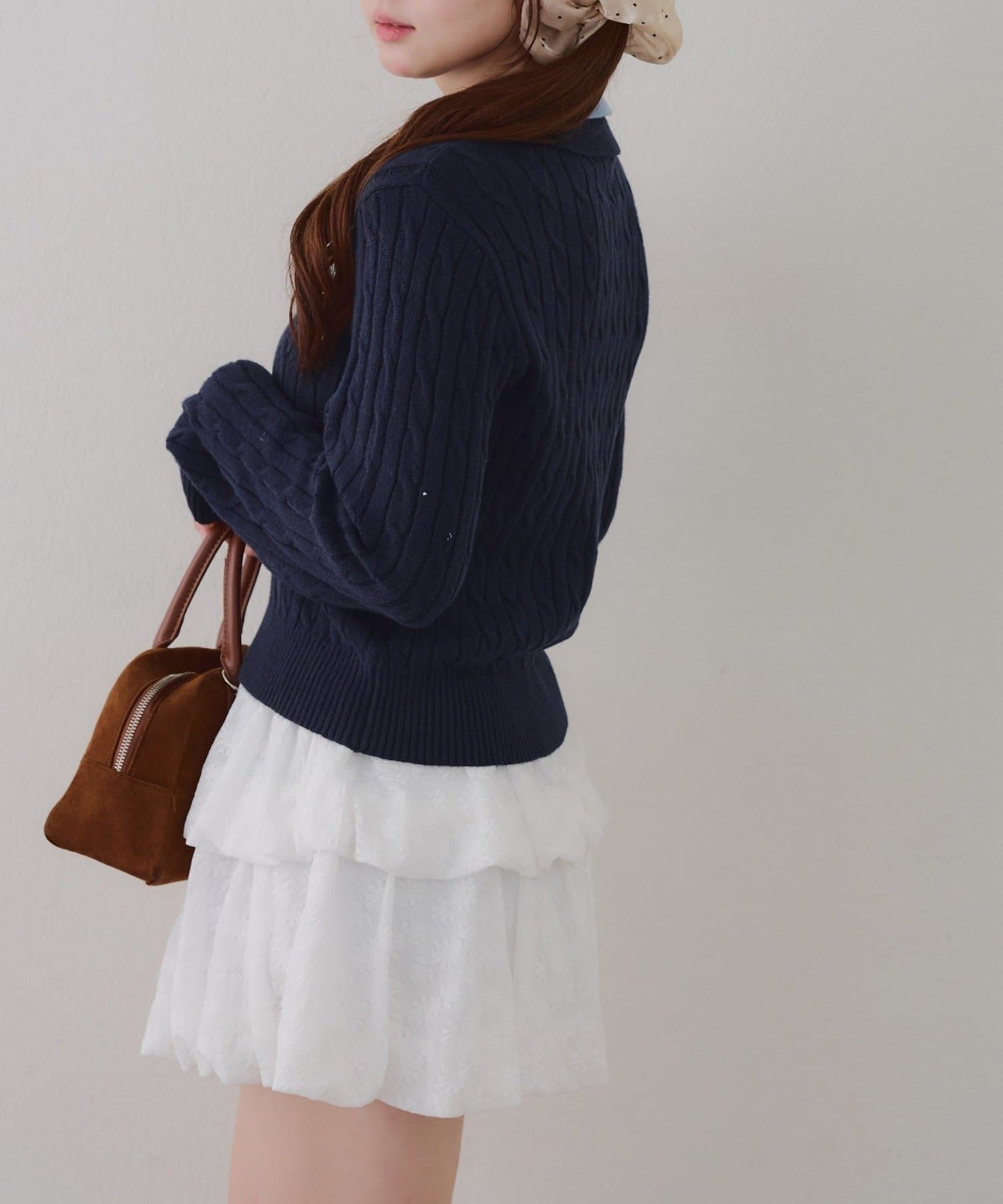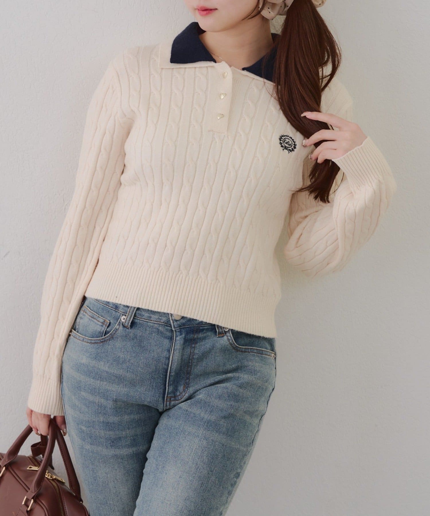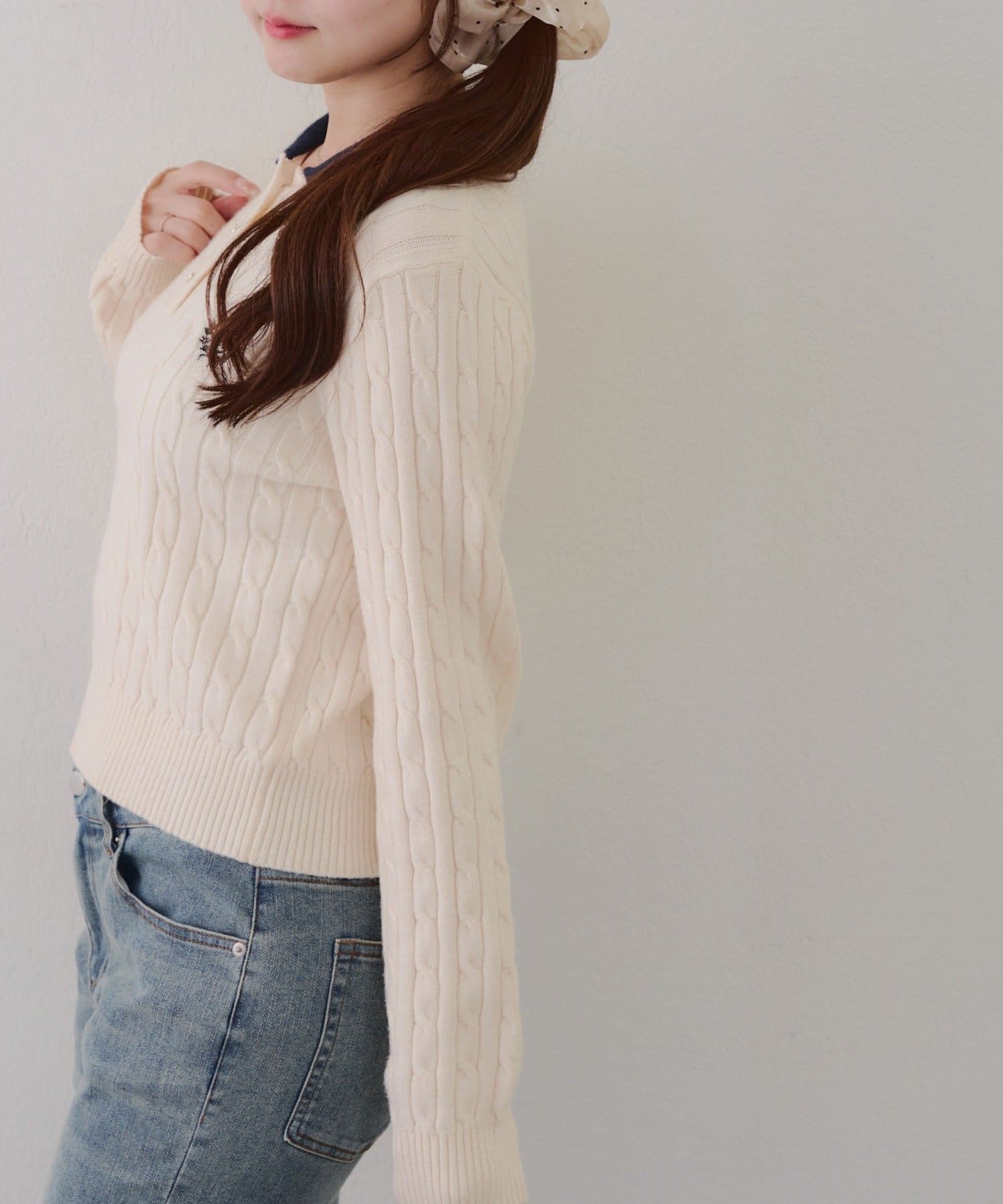 TOP > NICE CLAUP / OLIVE des OLIVE OUTLET > レディース > トップス > ニット/セーター > 【RMAF】2枚衿ケーブルポロニット