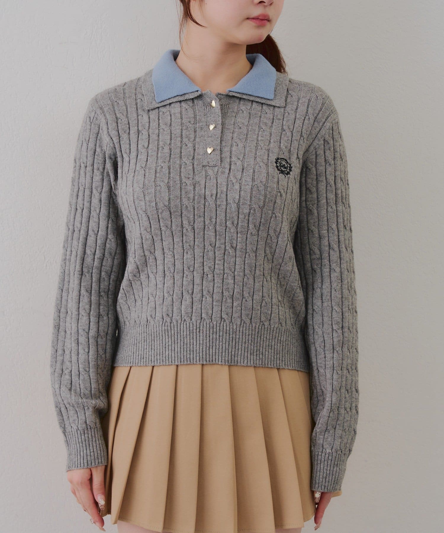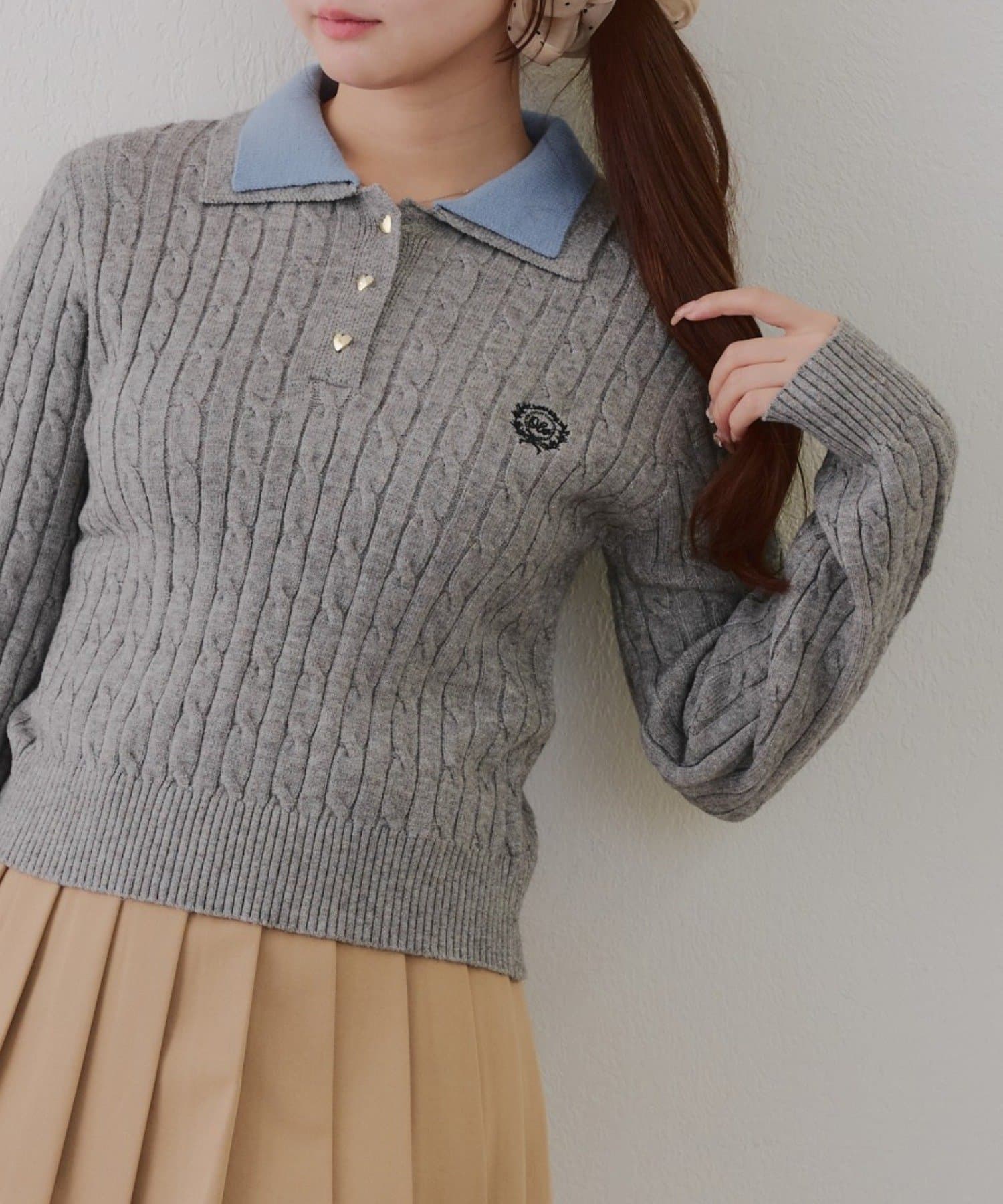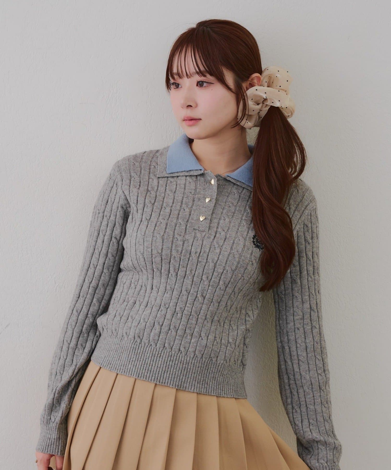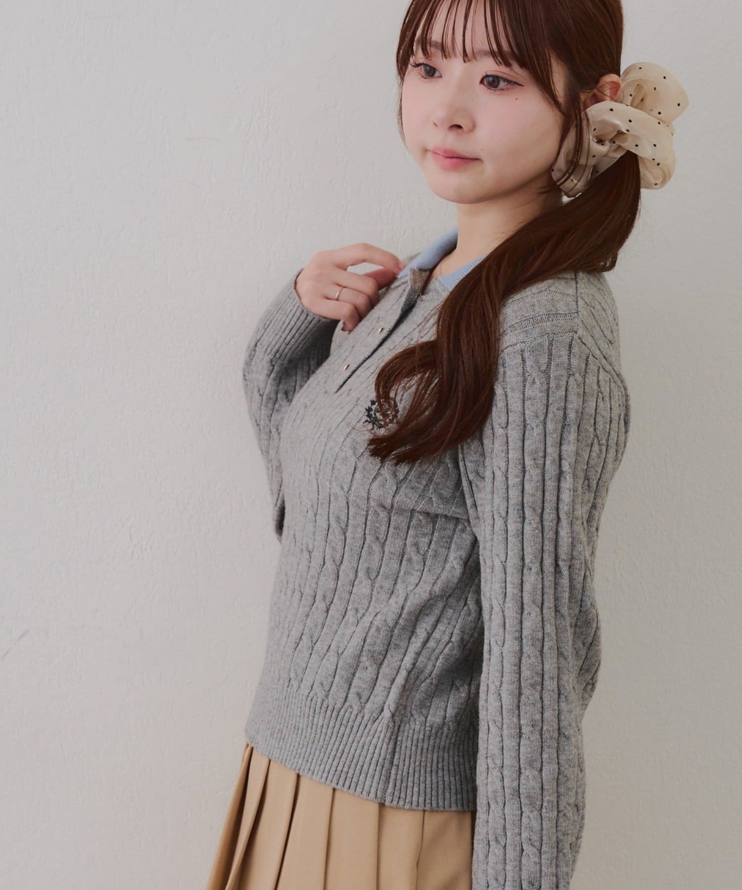NICE CLAUP / OLIVE des OLIVE OUTLET(ナイスクラップ  / オリーブ デ オリーブ アウトレット) 【RMAF】2枚衿ケーブルポロニット