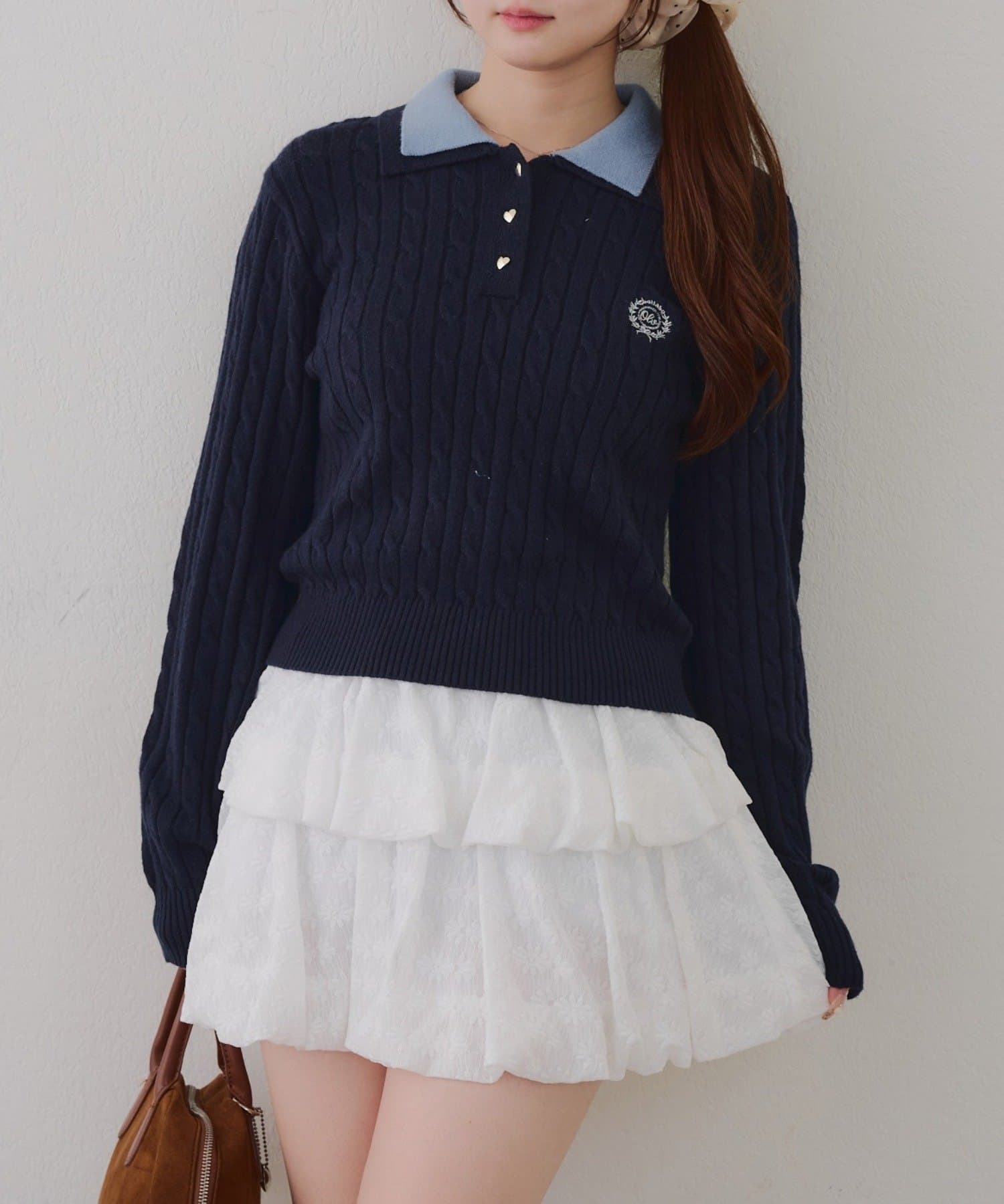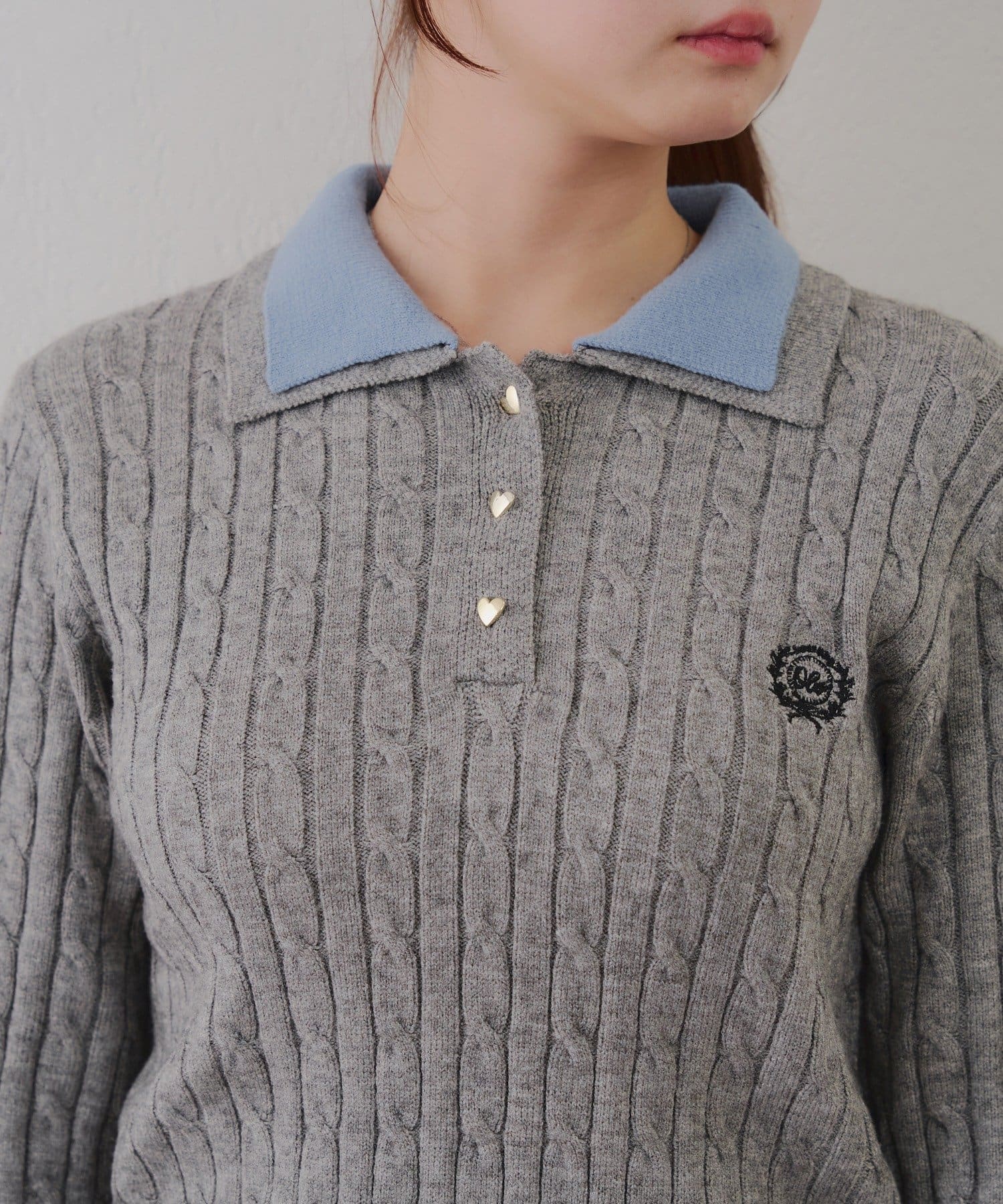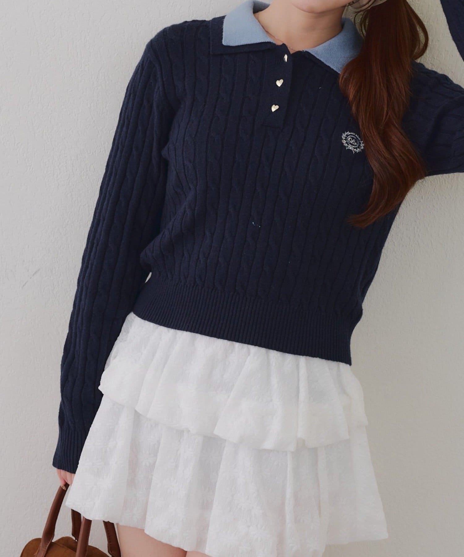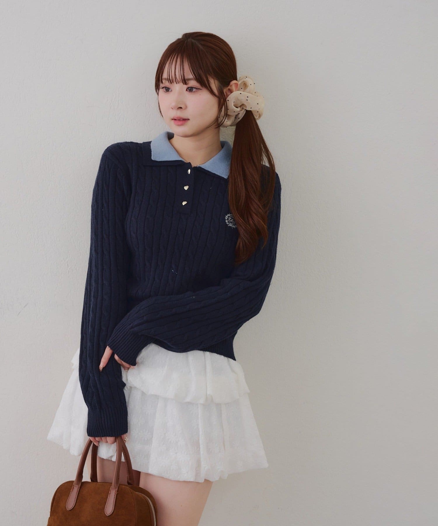 NICE CLAUP / OLIVE des OLIVE OUTLET(ナイスクラップ  / オリーブ デ オリーブ アウトレット) 【RMAF】2枚衿ケーブルポロニット