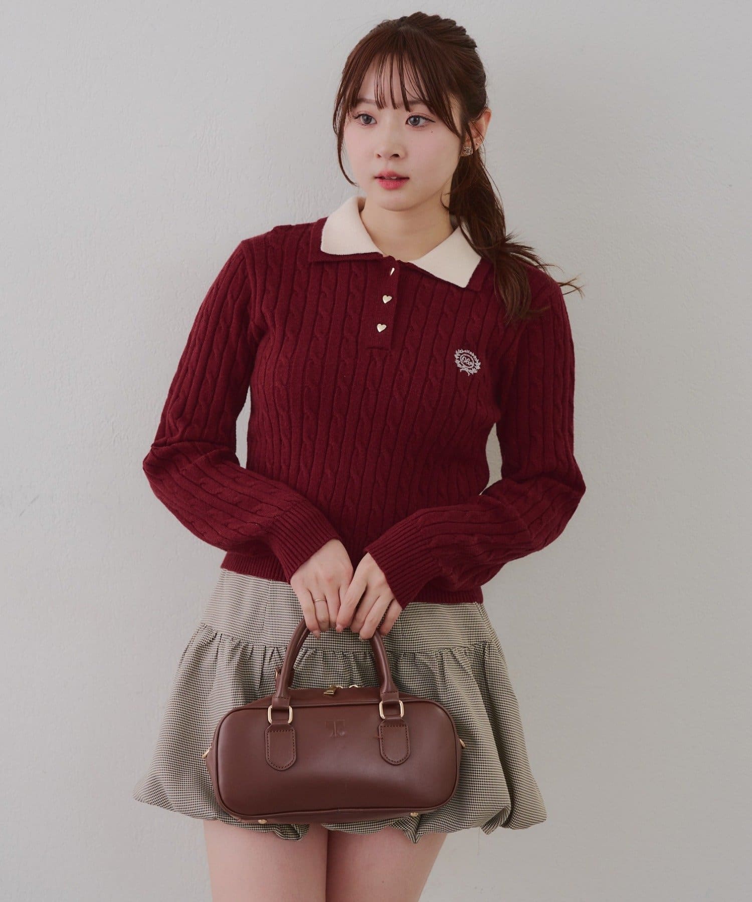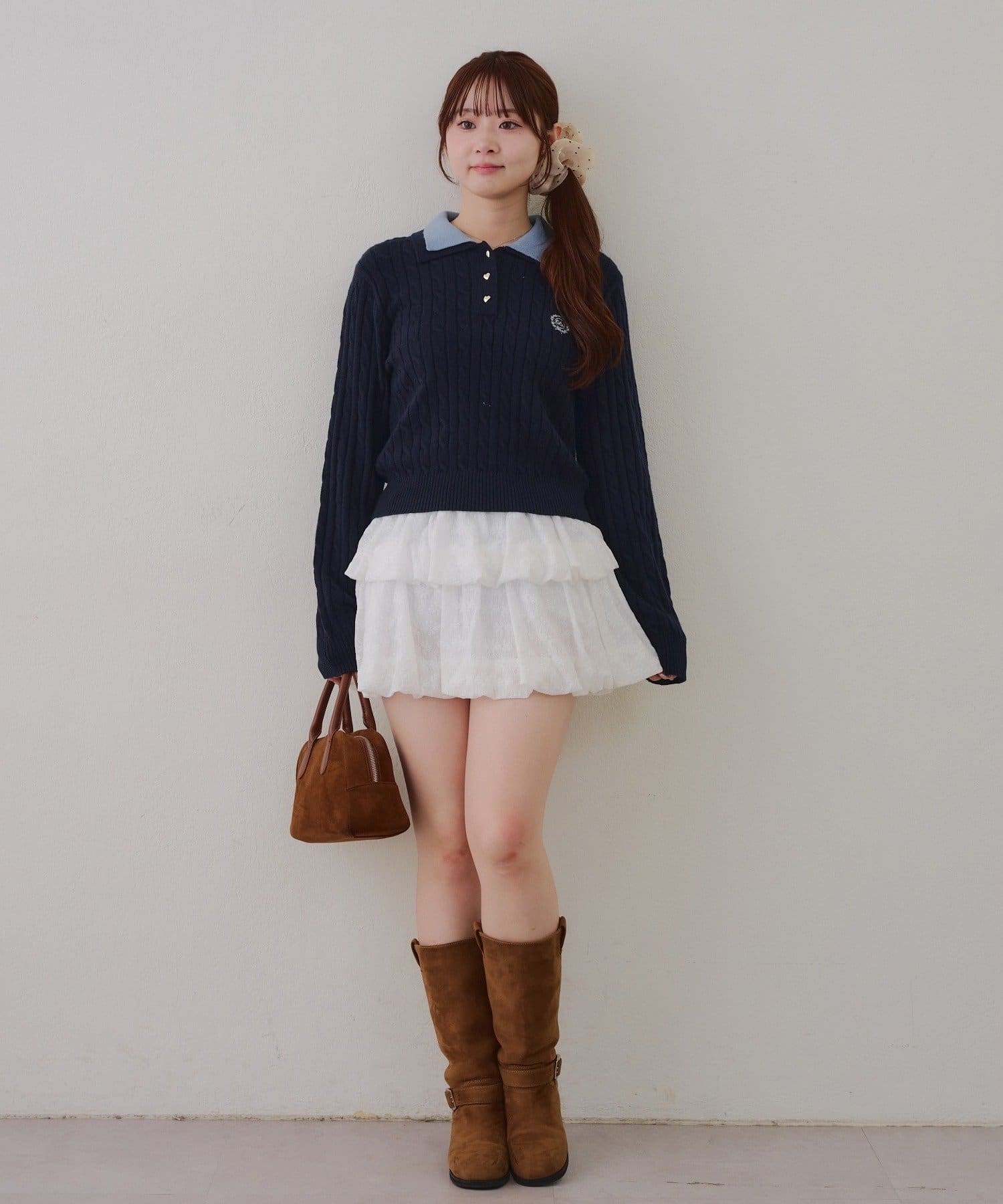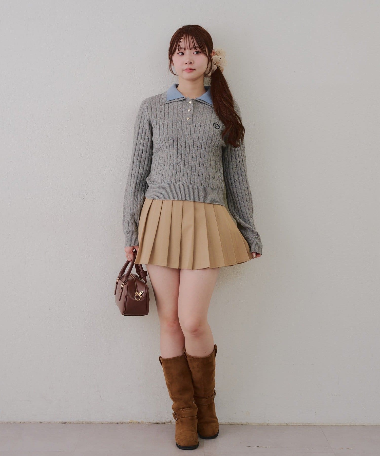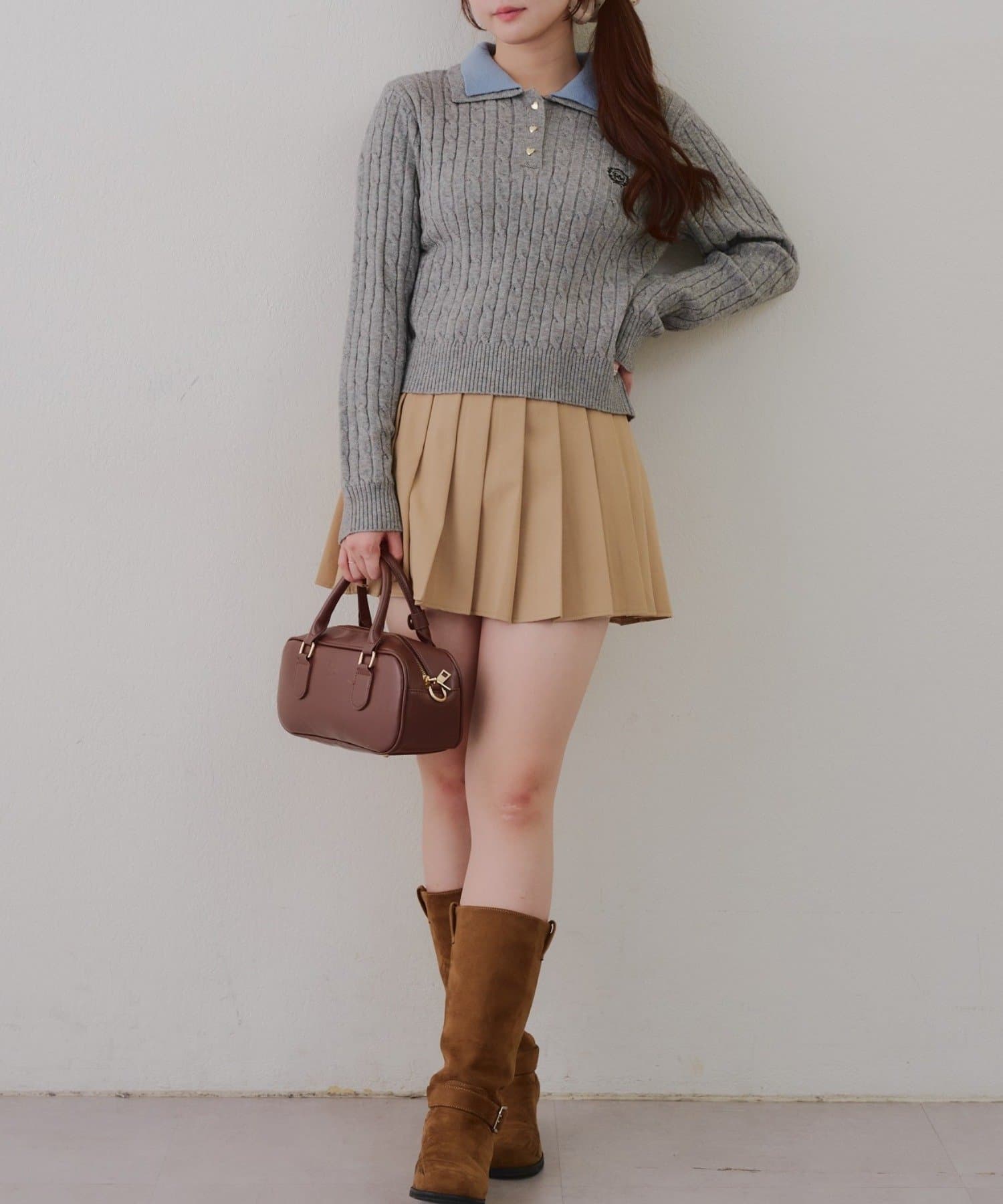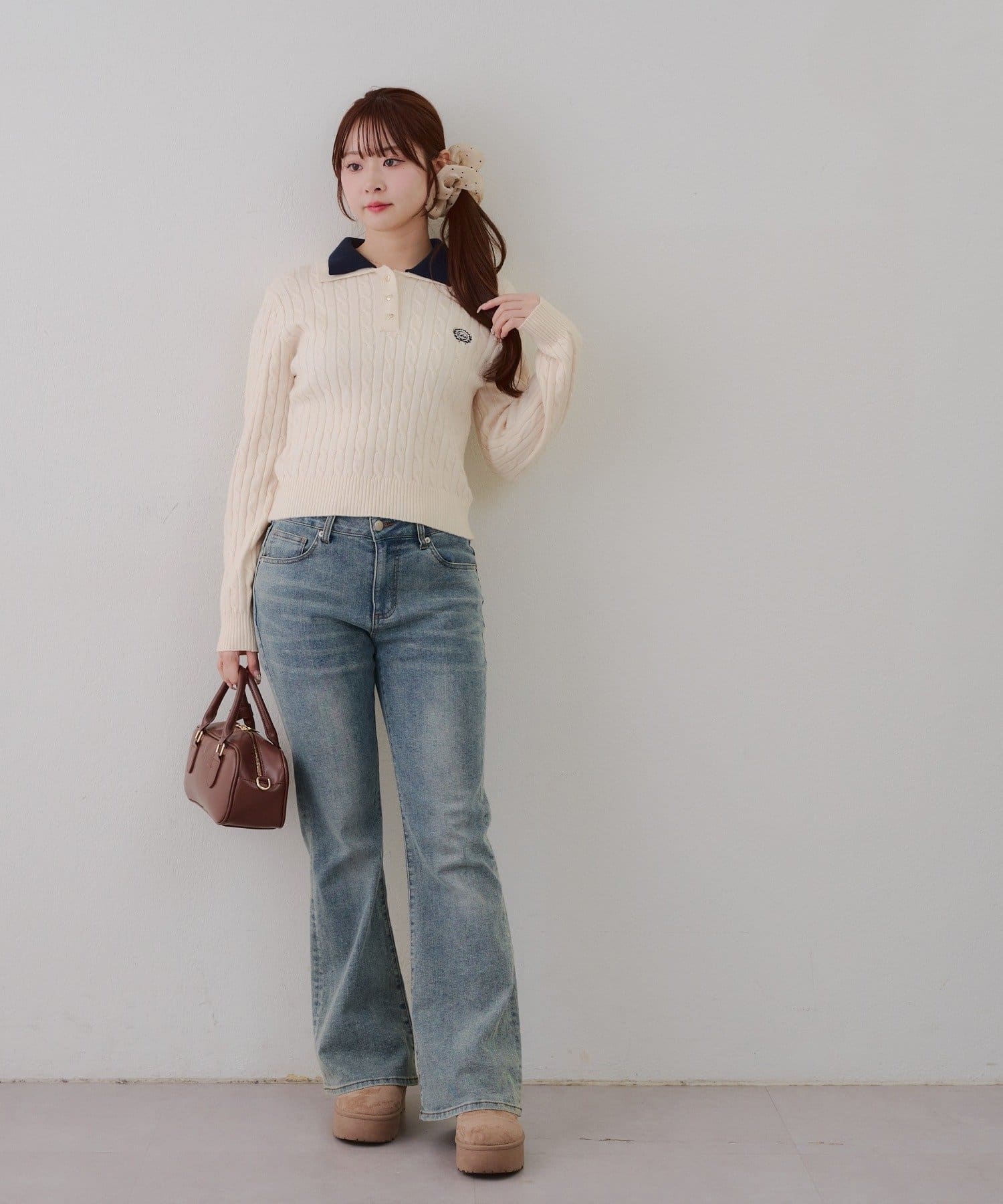 NICE CLAUP / OLIVE des OLIVE OUTLET(ナイスクラップ  / オリーブ デ オリーブ アウトレット) 【RMAF】2枚衿ケーブルポロニット