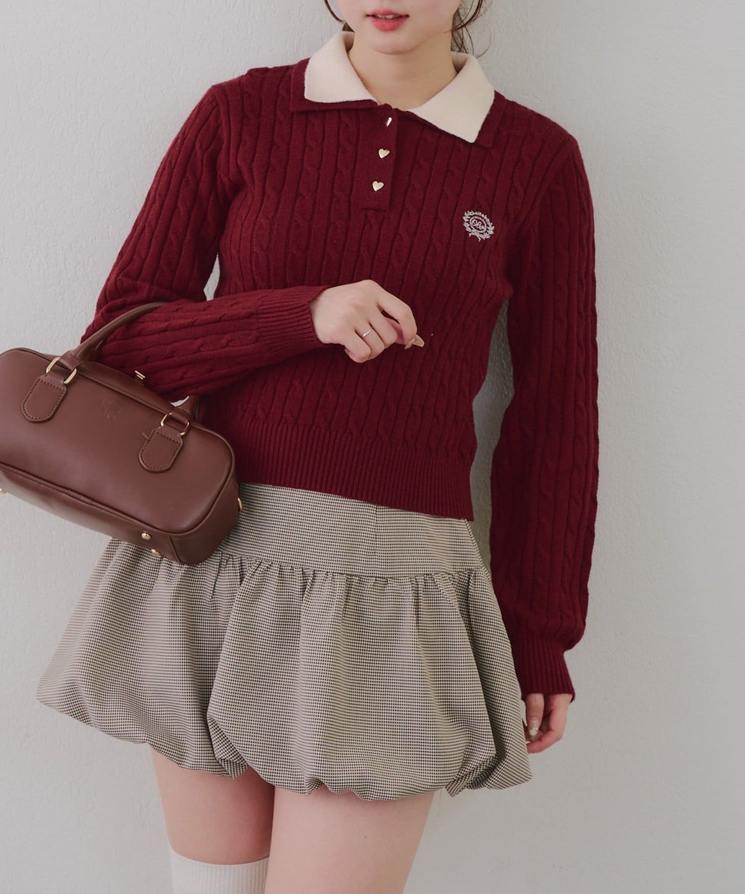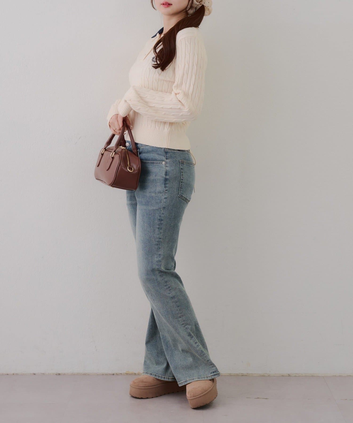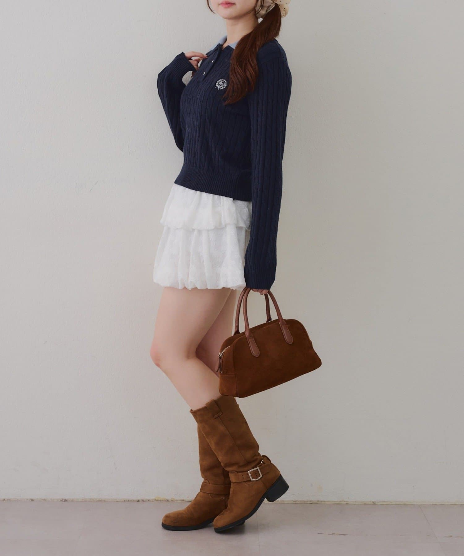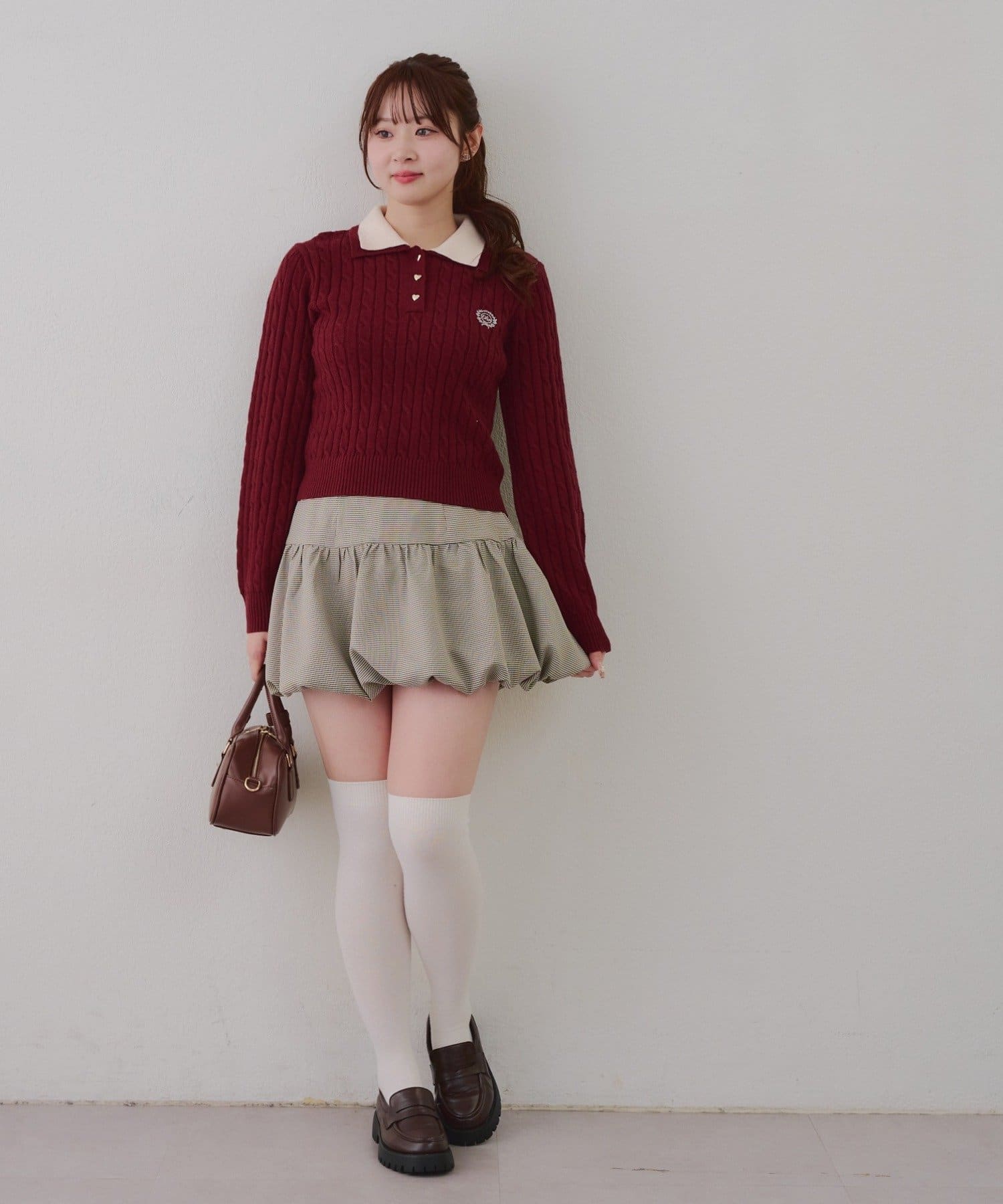 NICE CLAUP / OLIVE des OLIVE OUTLET(ナイスクラップ  / オリーブ デ オリーブ アウトレット) 【RMAF】2枚衿ケーブルポロニット