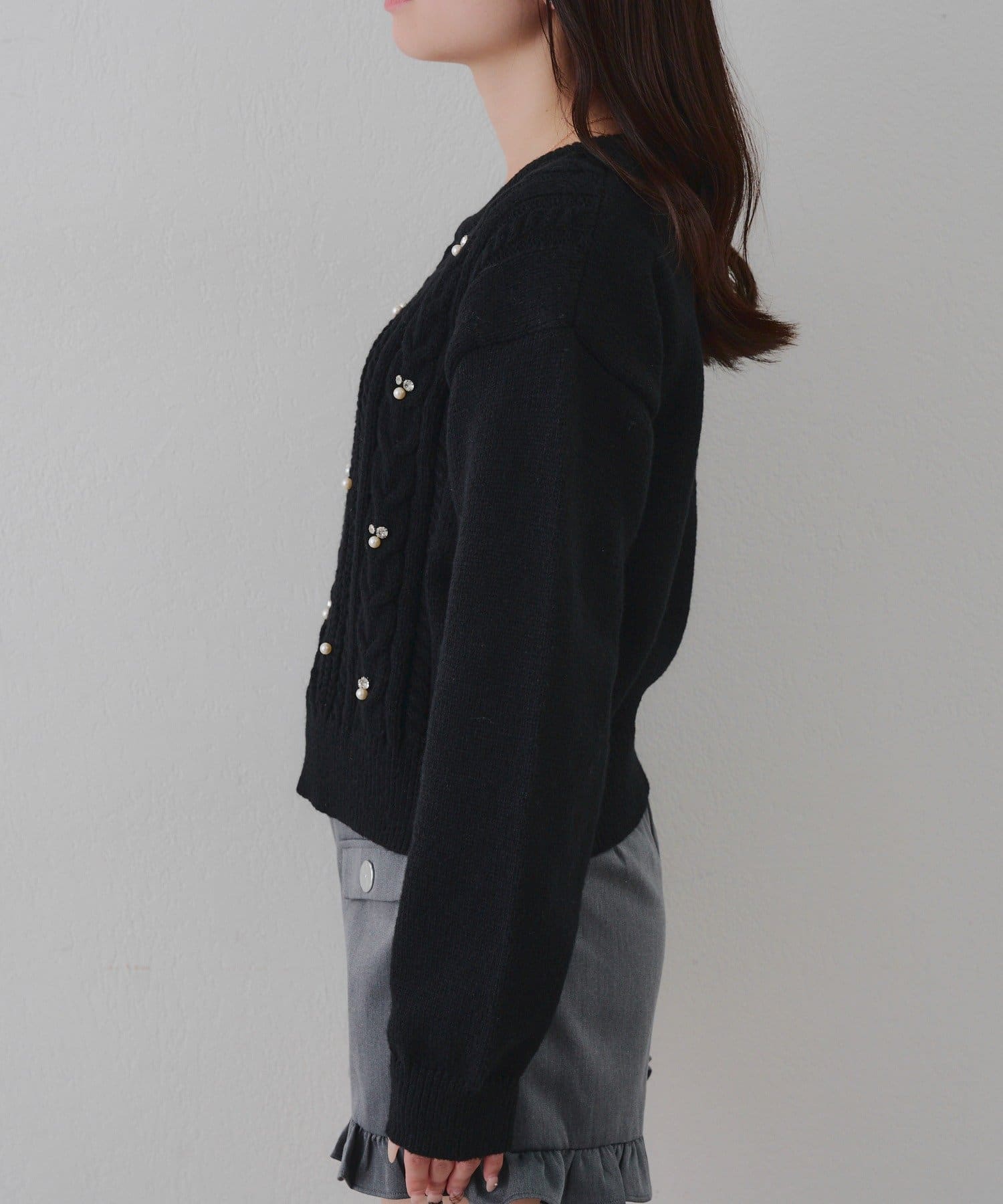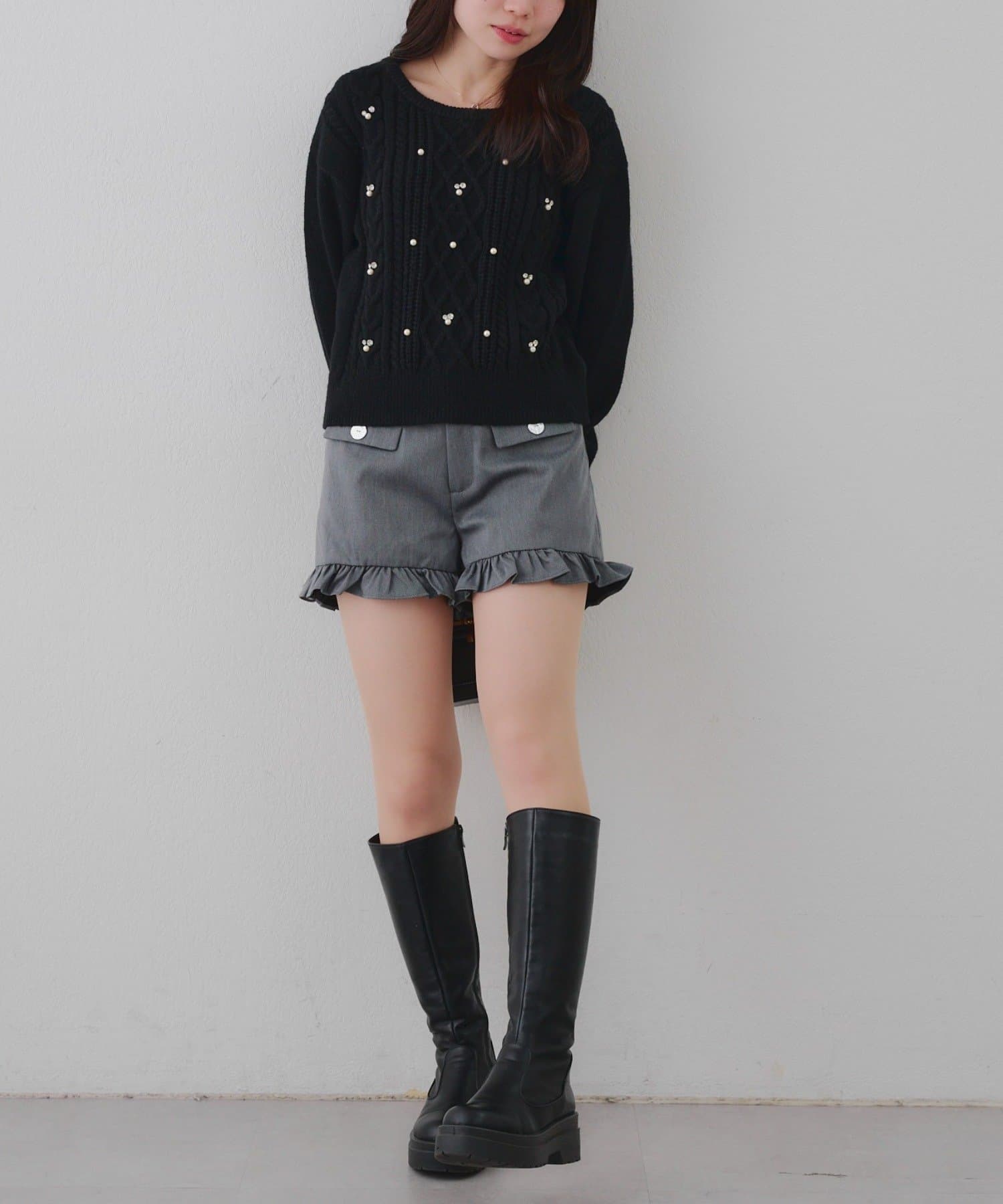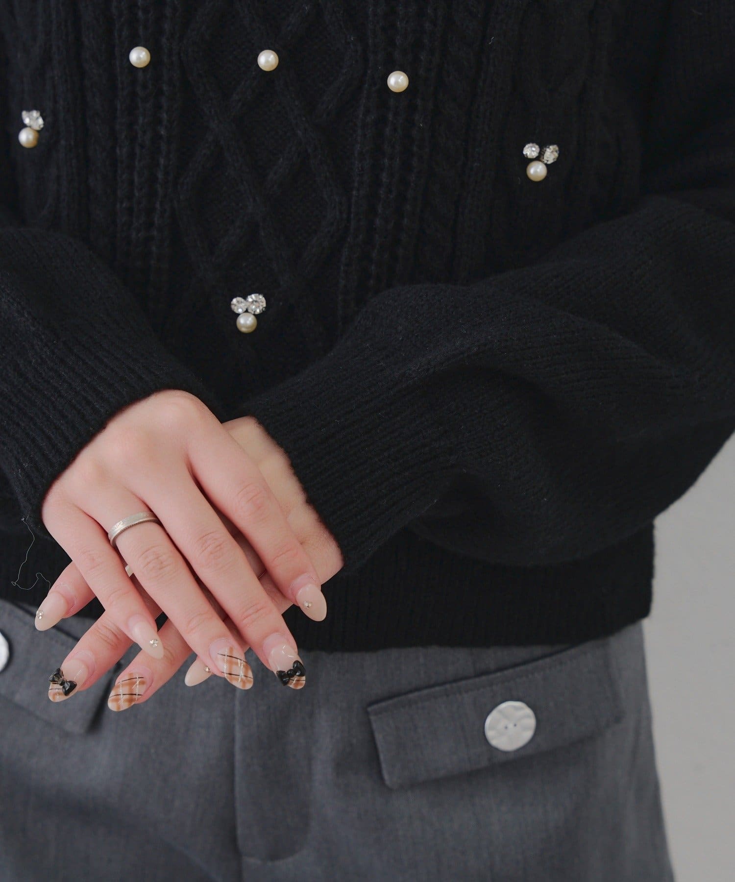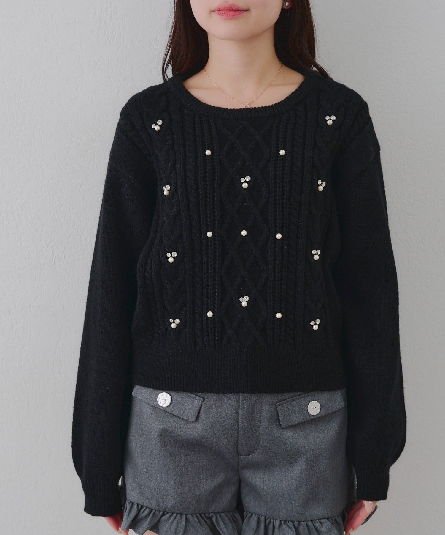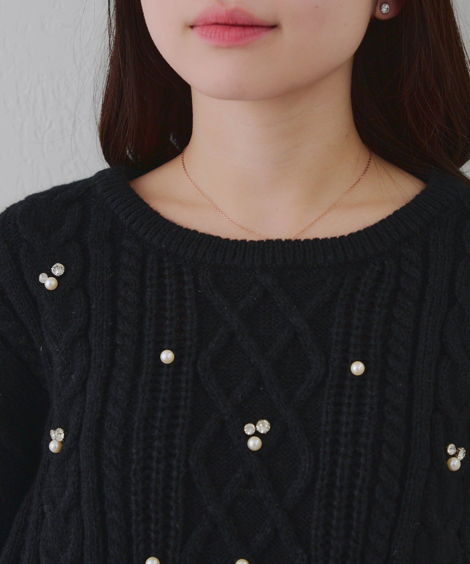 ・パール付きデザインが華やかな印象にしてくれるニットプルオーバー