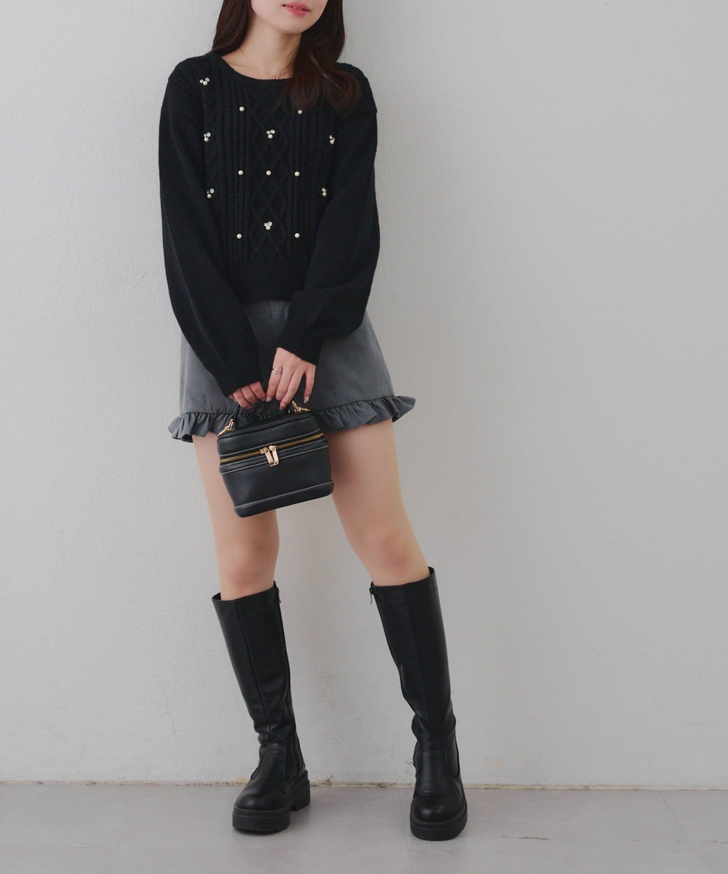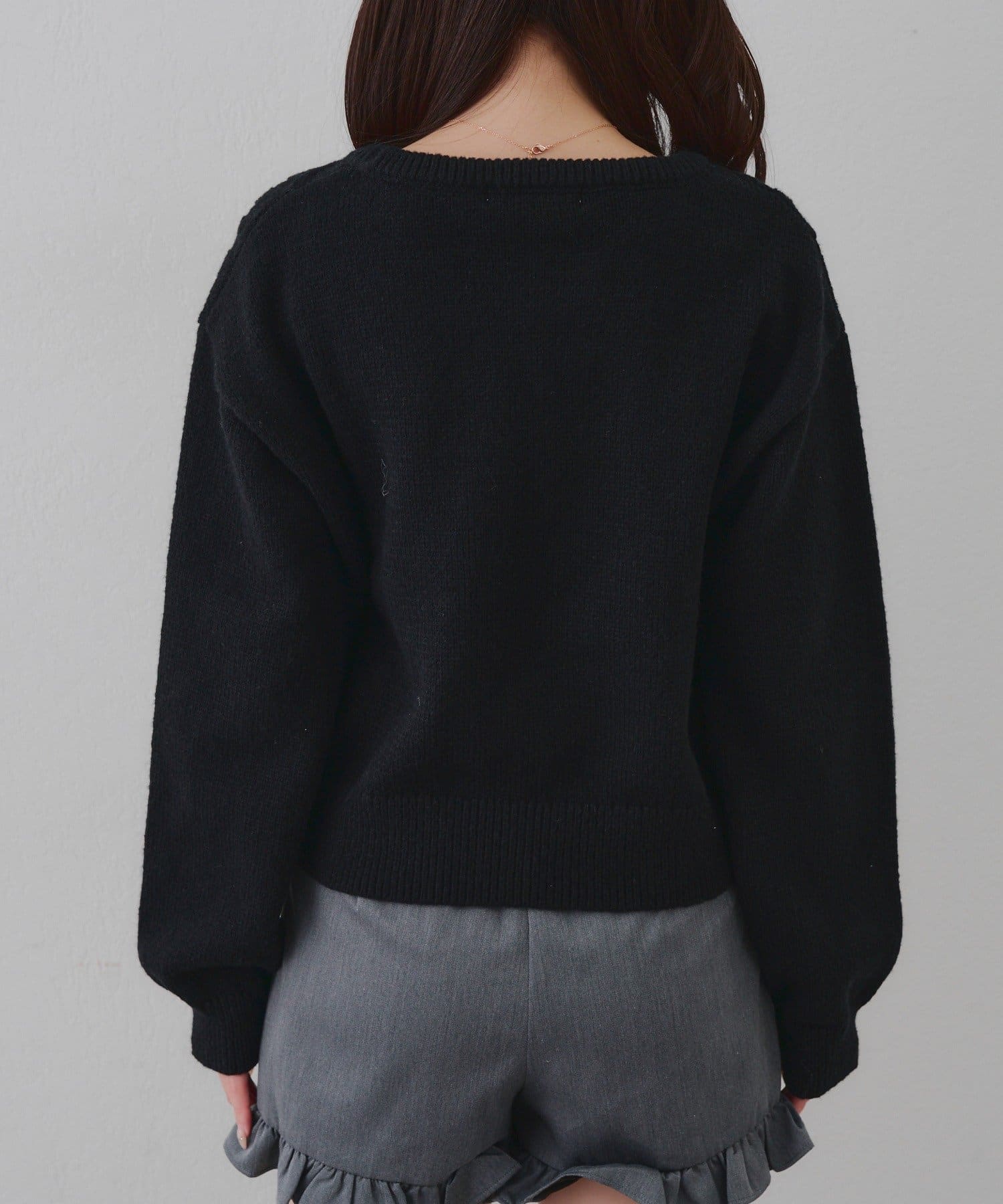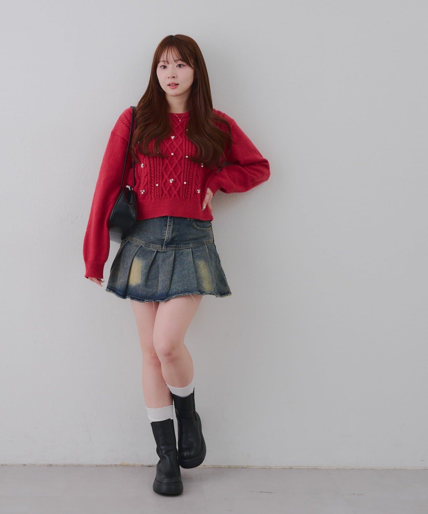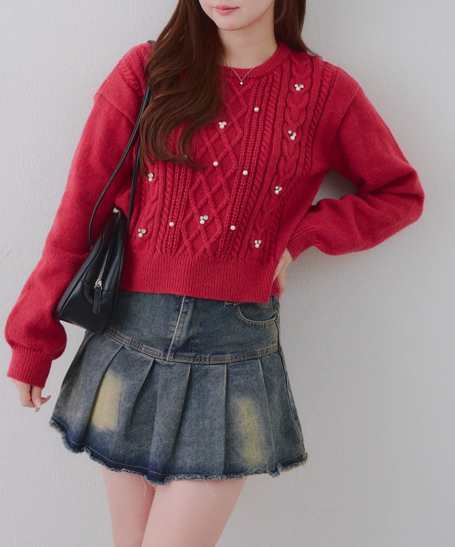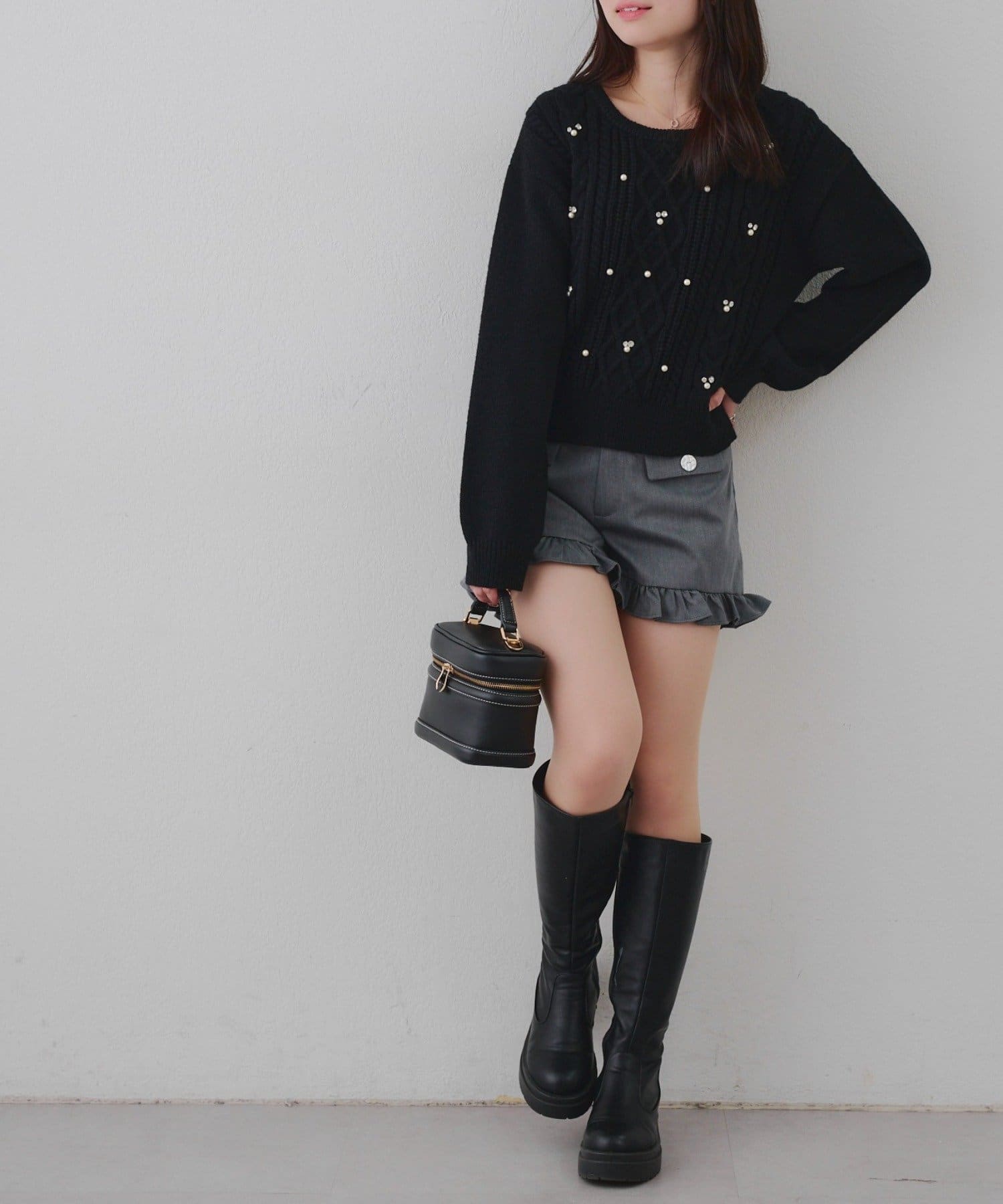 ・パール付きデザインが華やかな印象にしてくれるニットプルオーバー