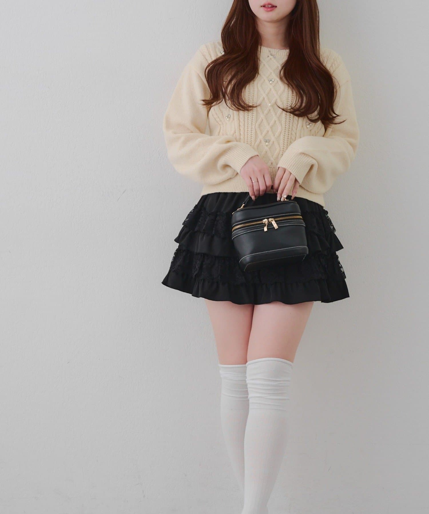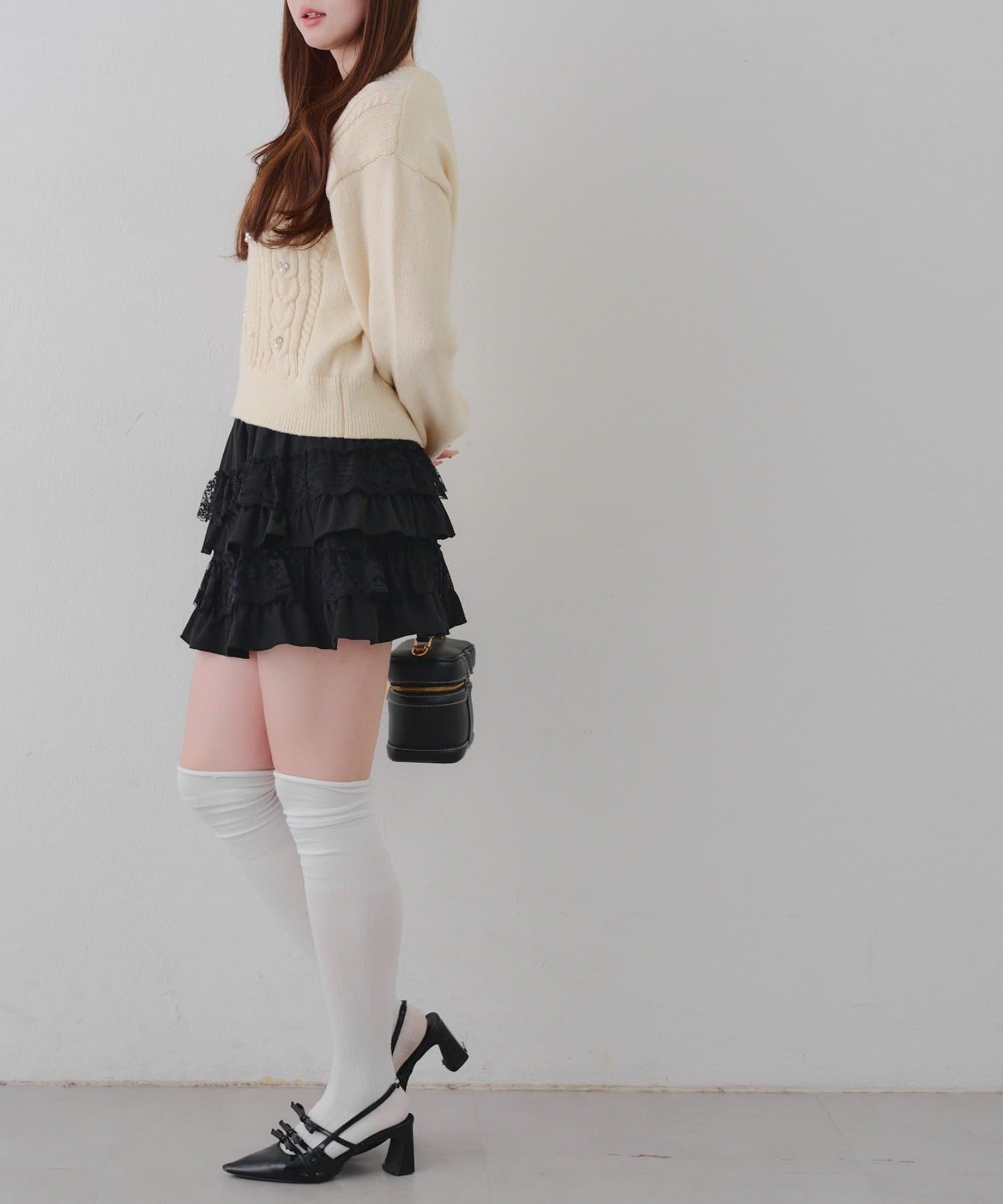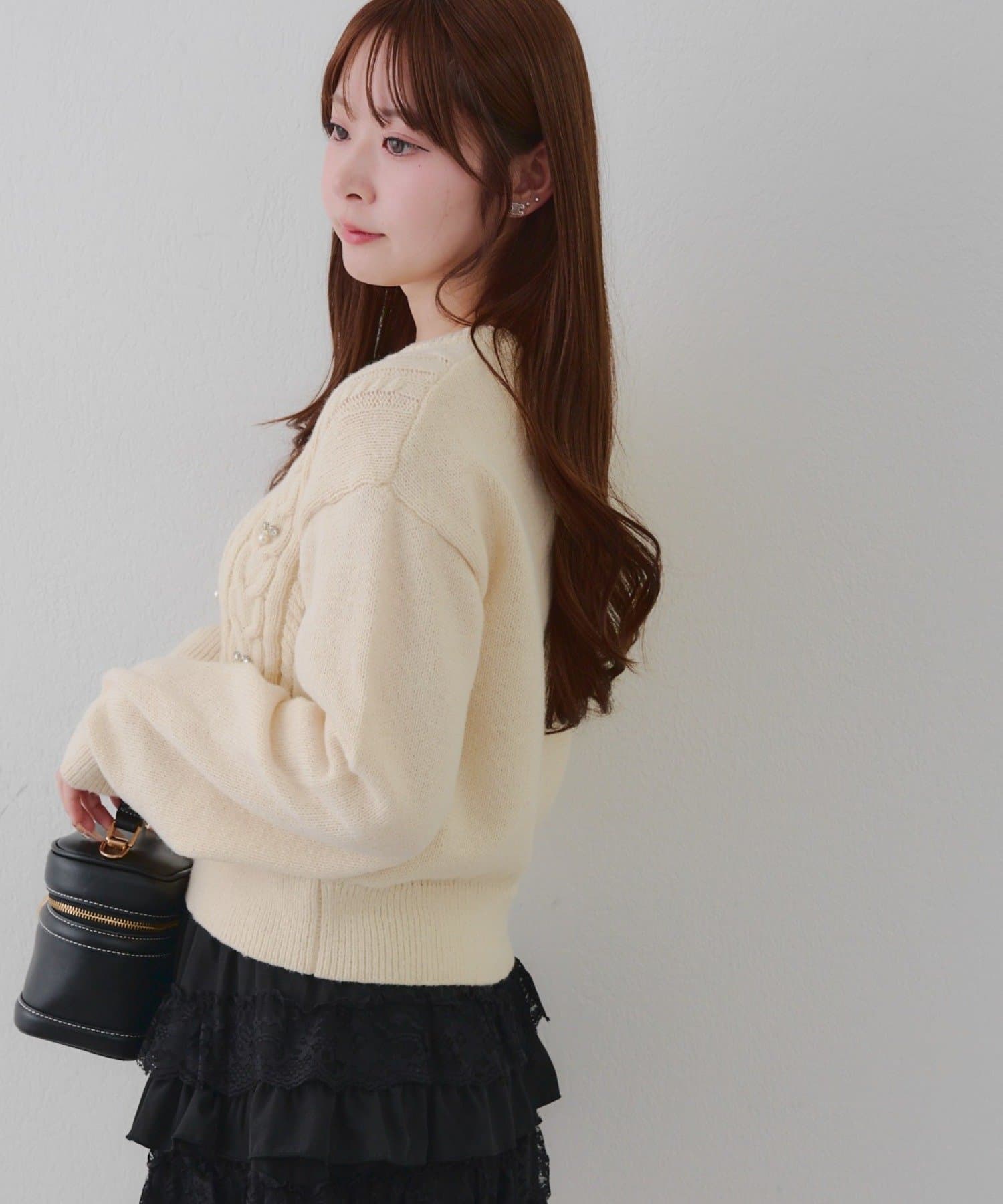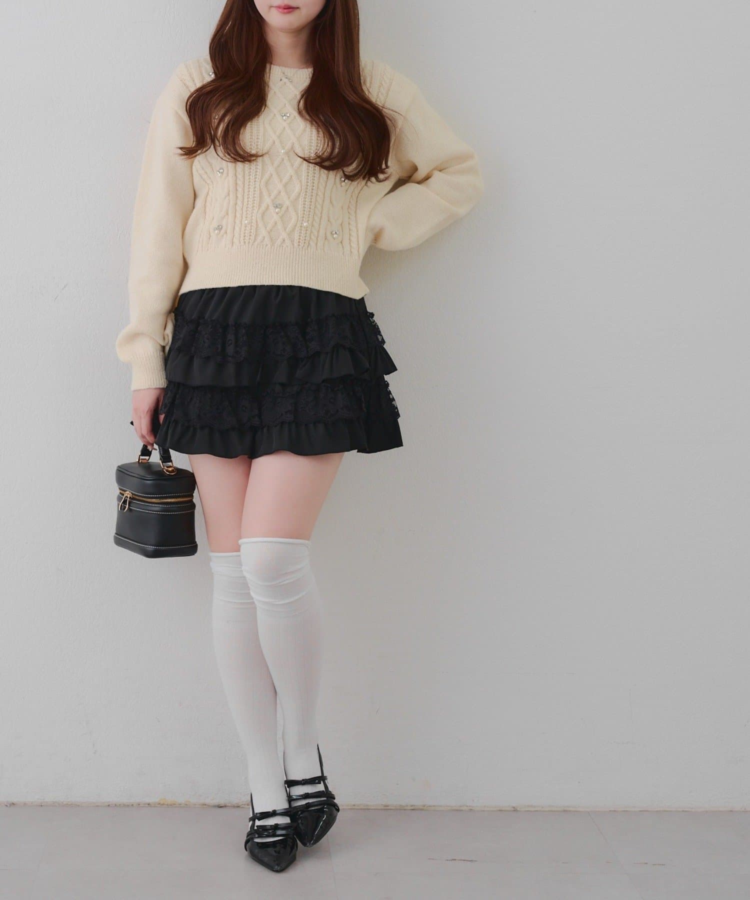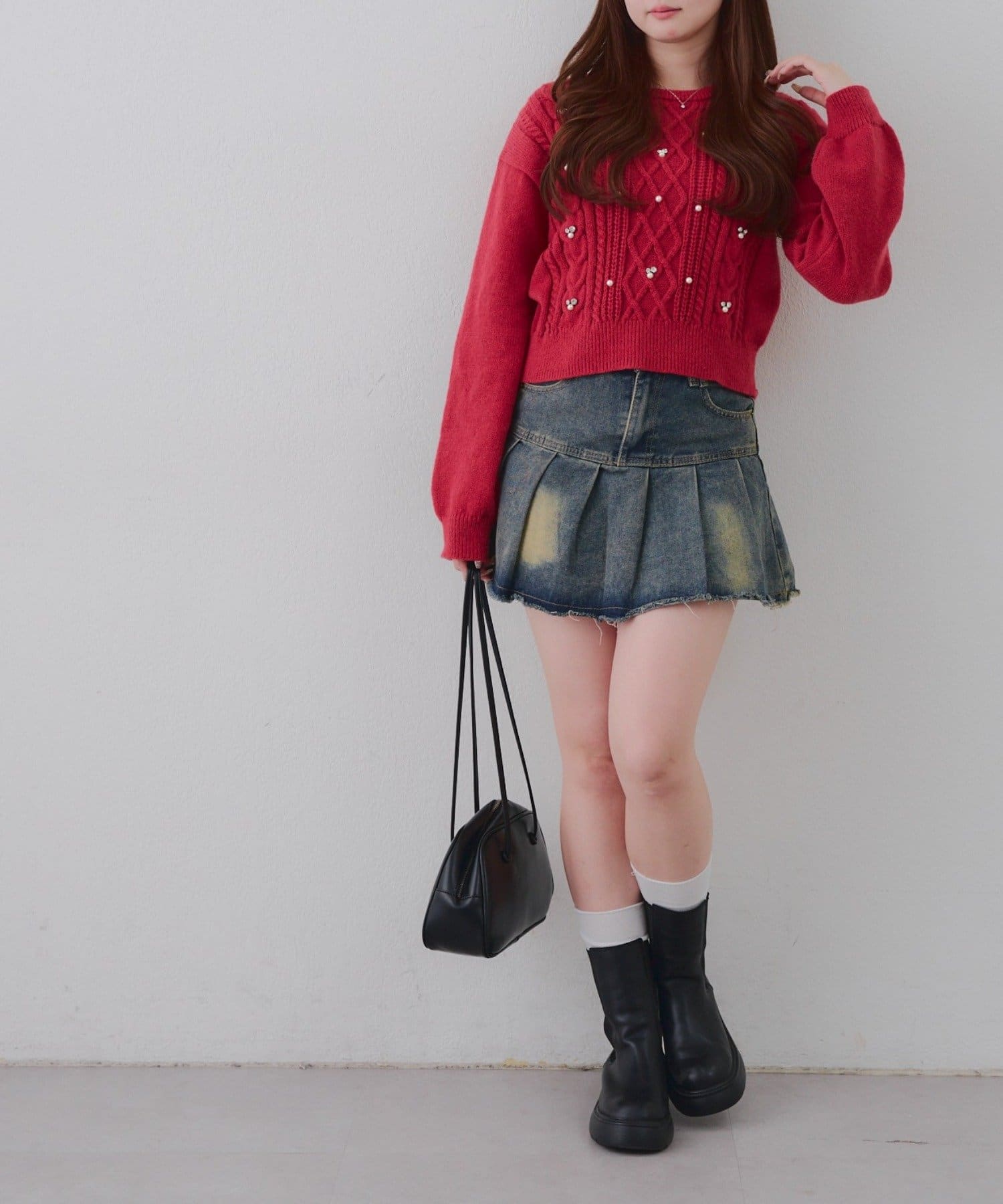 ・パール付きデザインが華やかな印象にしてくれるニットプルオーバー