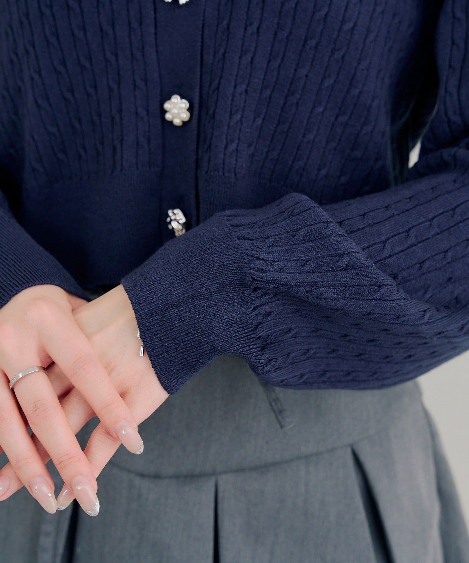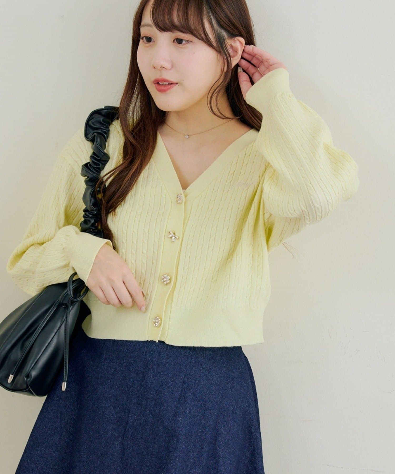 ・アソートボタンがコーデのポイントになるショート丈カーディガン