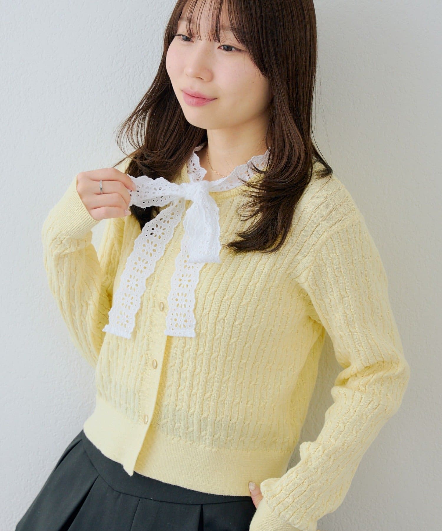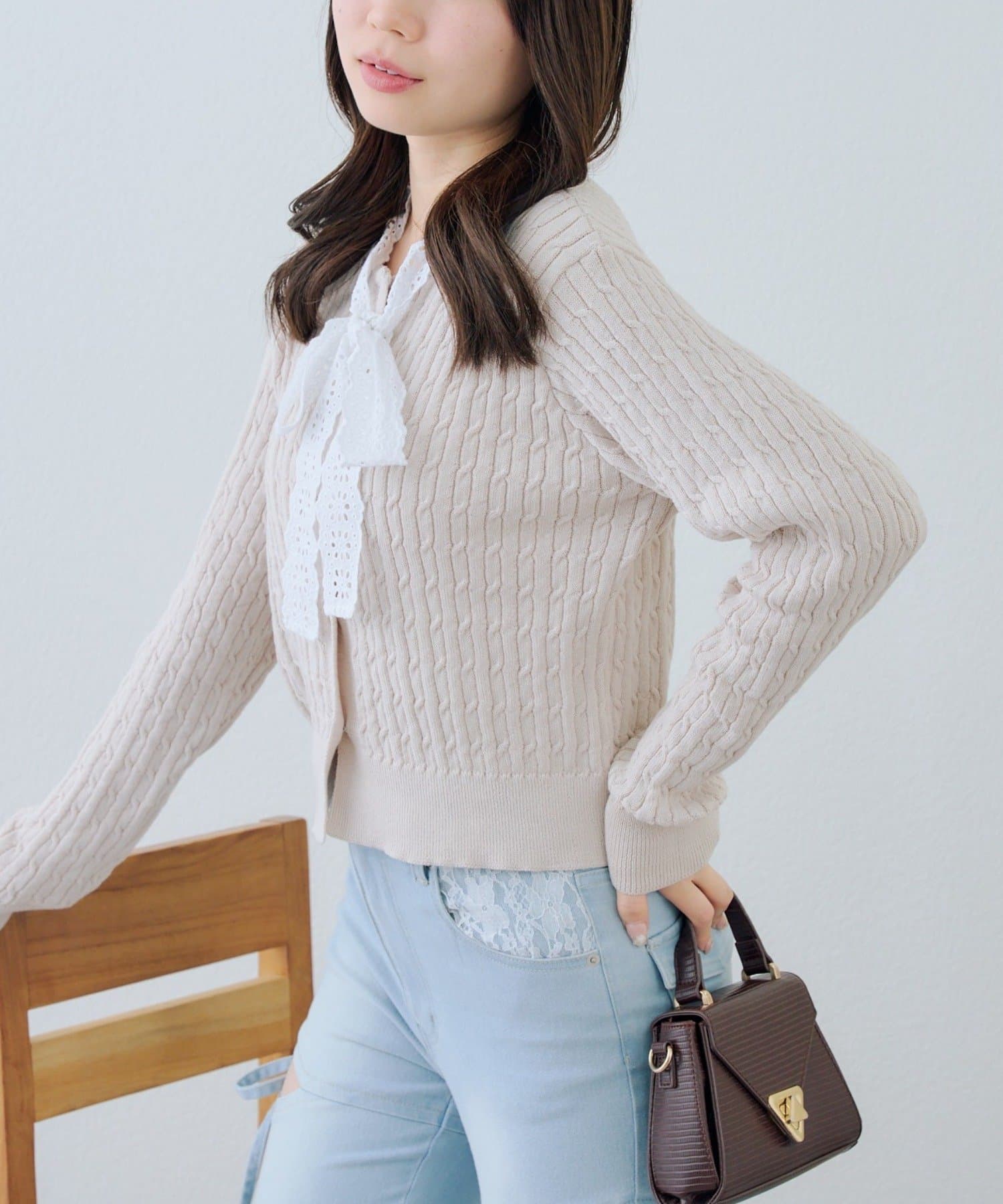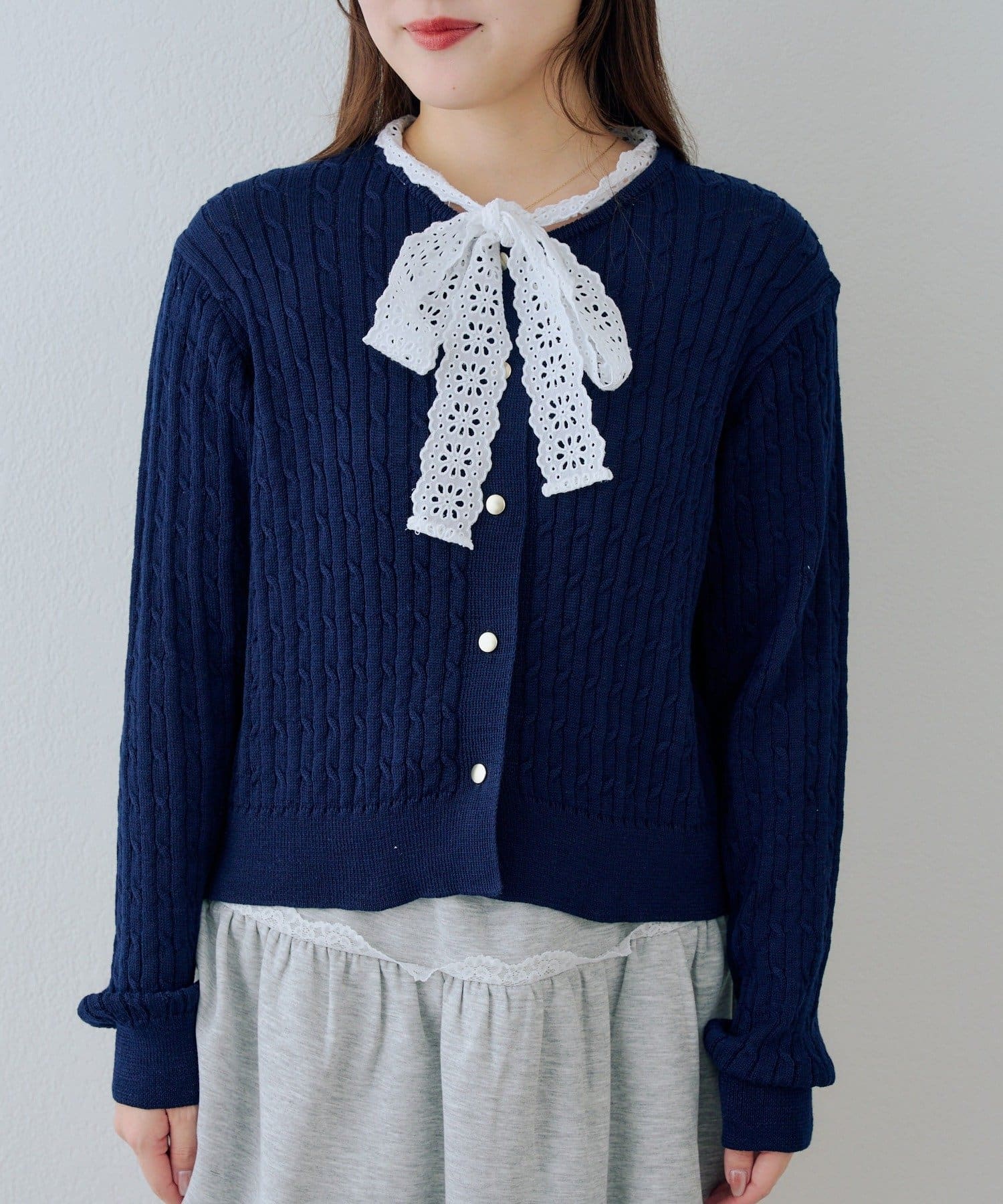TOP > NICE CLAUP / OLIVE des OLIVE OUTLET > レディース > トップス > カーディガン/ボレロ > 【RMAF】レースボウタイ付カーディガン