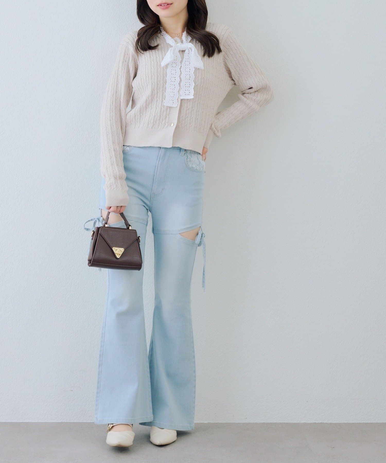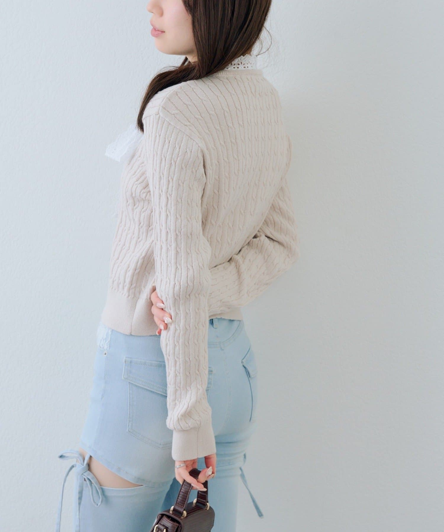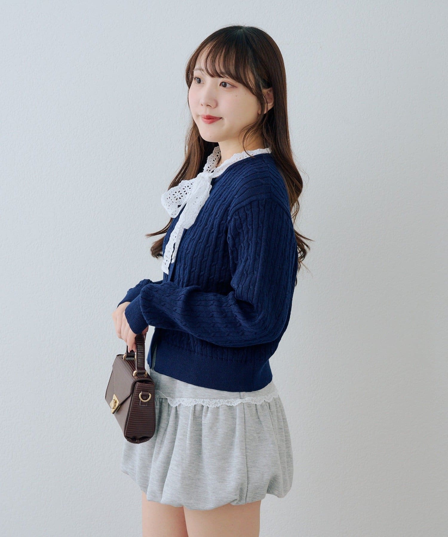TOP > NICE CLAUP / OLIVE des OLIVE OUTLET > レディース > トップス > カーディガン/ボレロ > 【RMAF】レースボウタイ付カーディガン