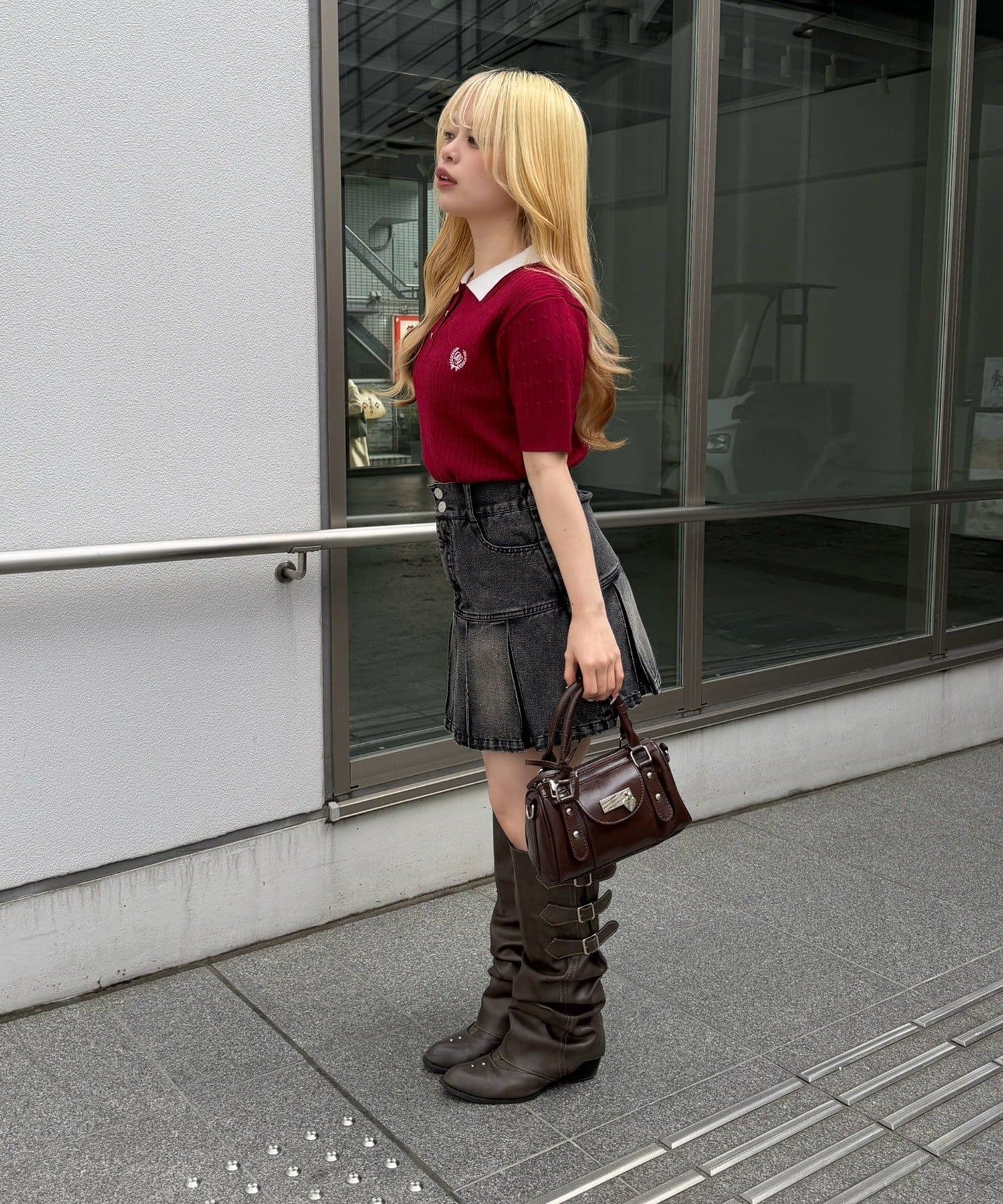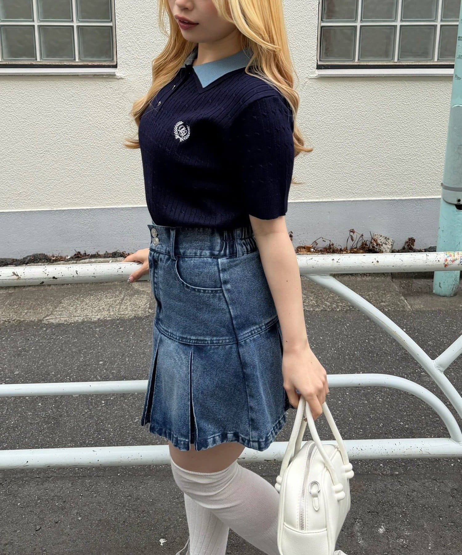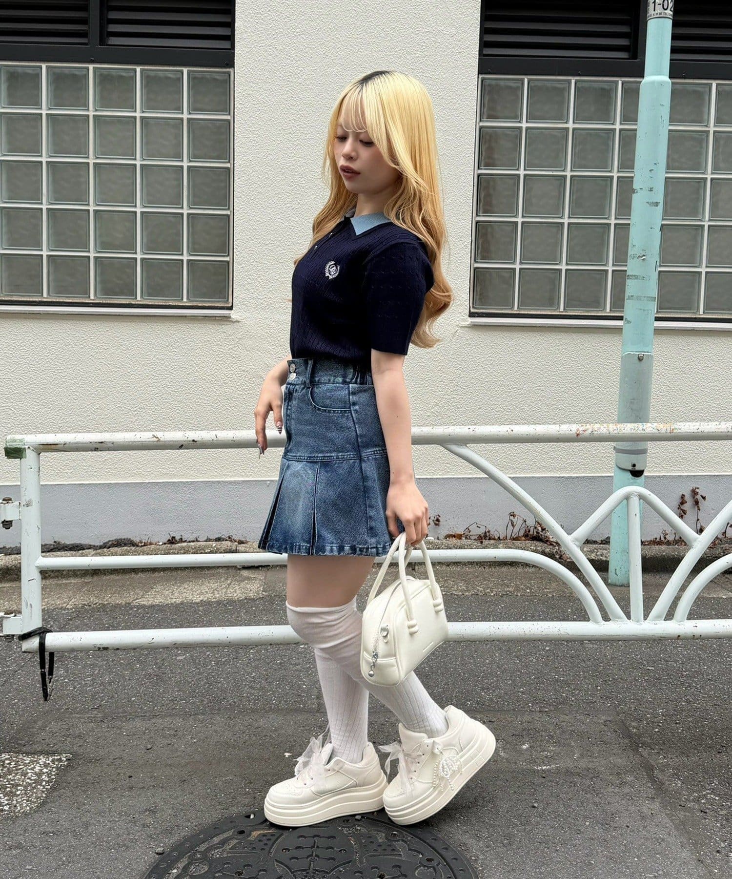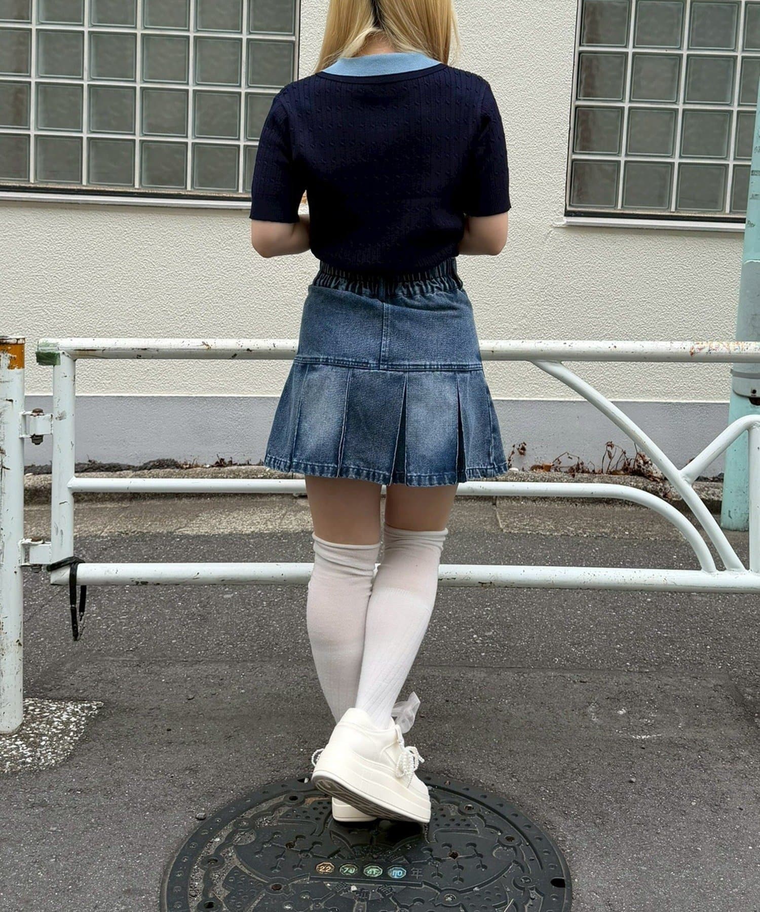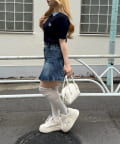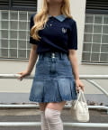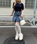 ・デニムミニスカートと合わせて、定番のカジュアルスタイルに