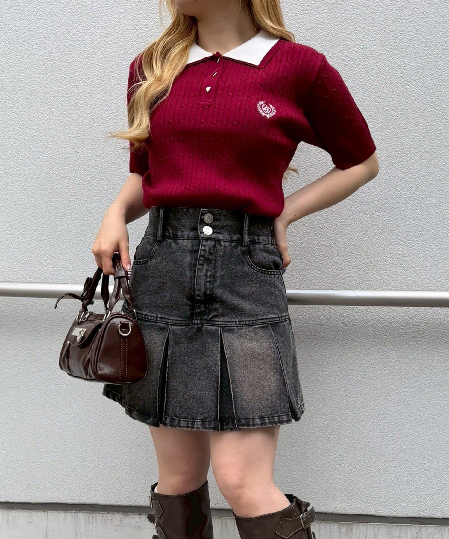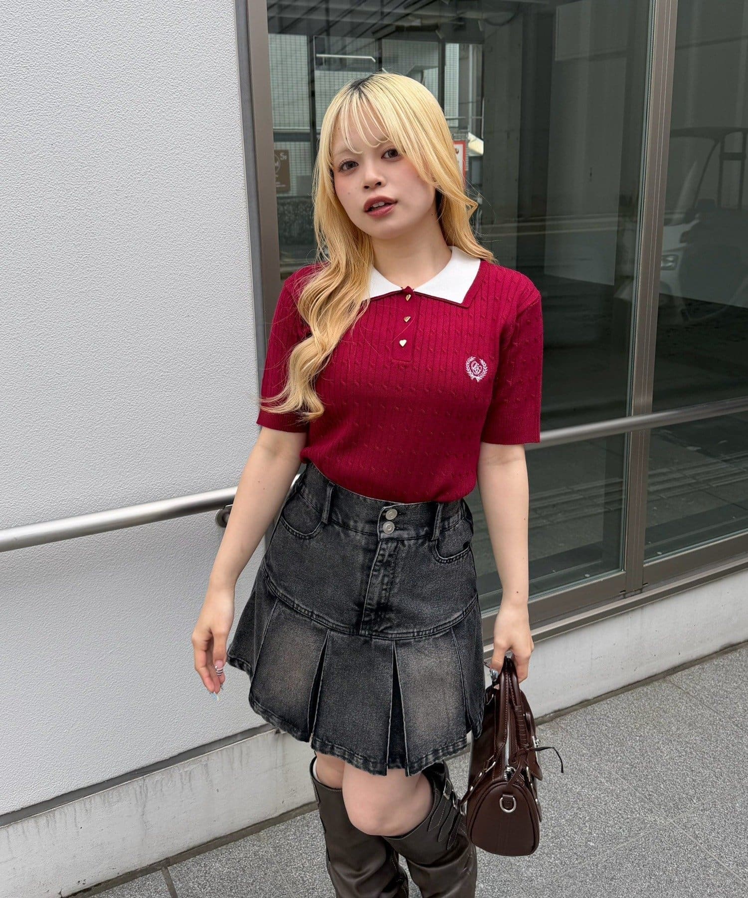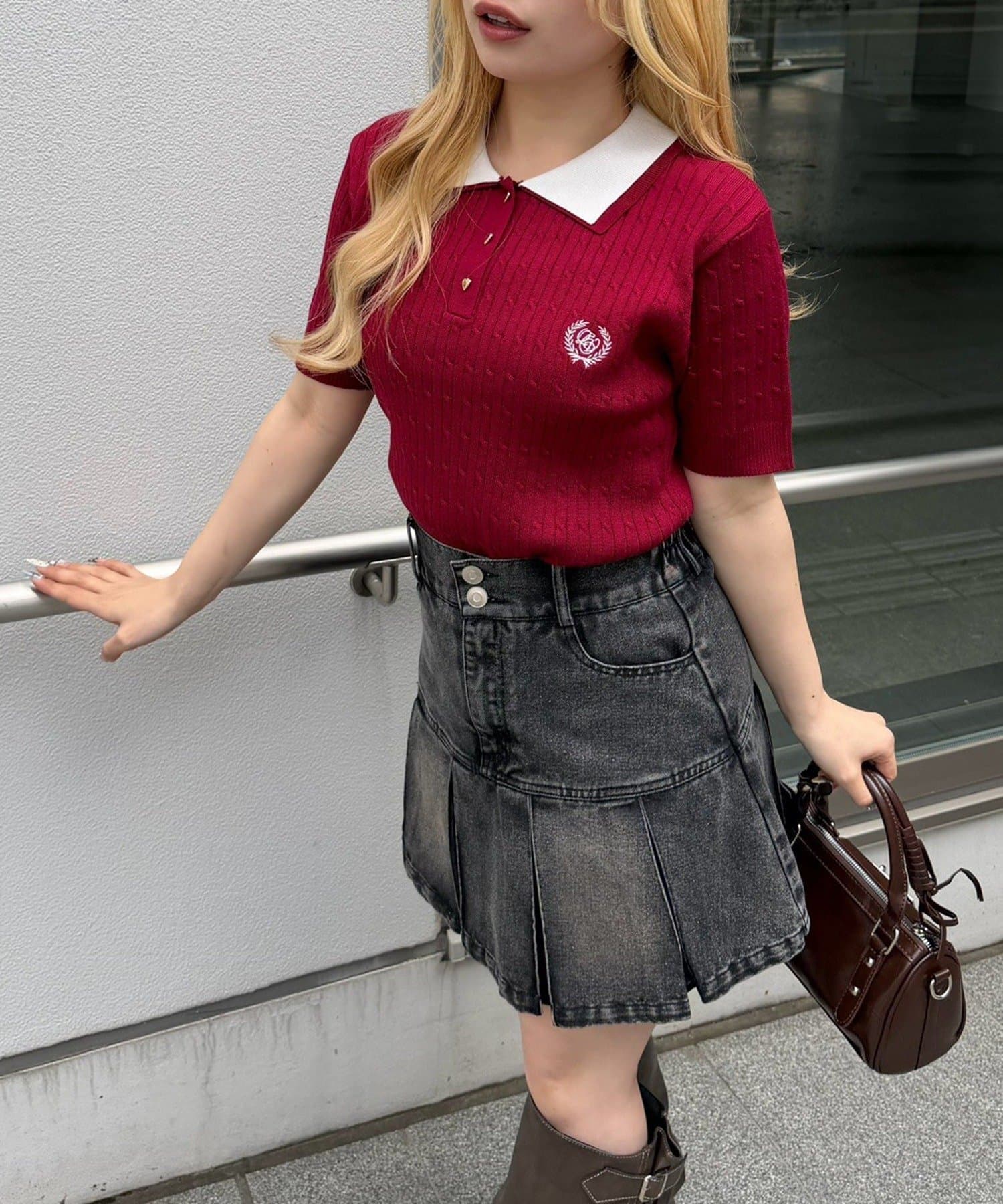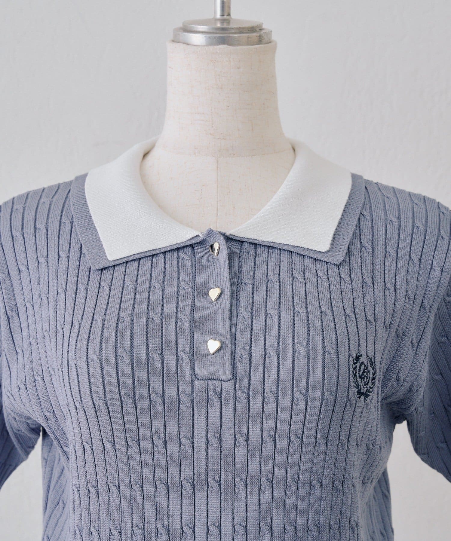 ・上品なケーブル編みが目を引く、大人可愛いポロニット