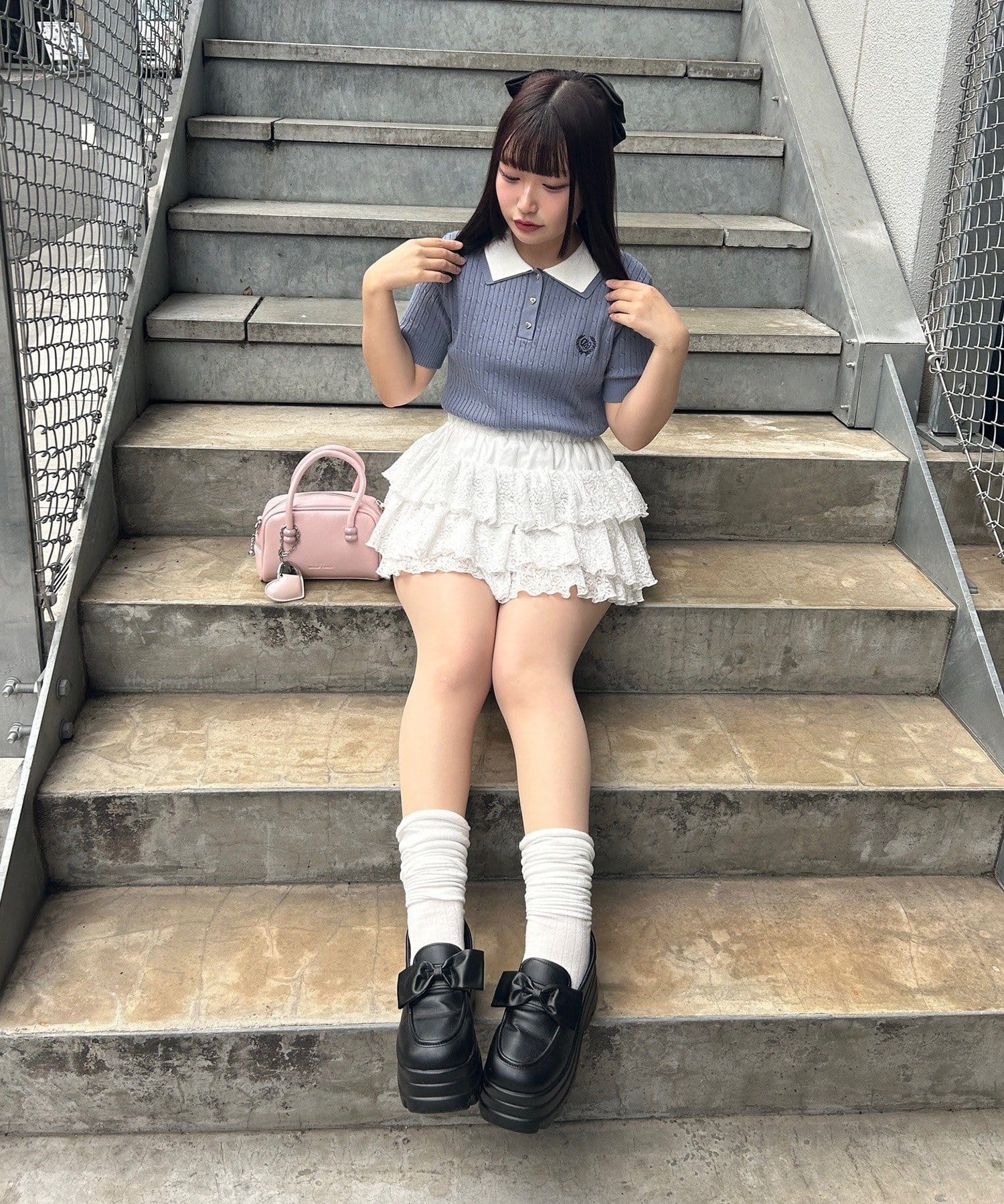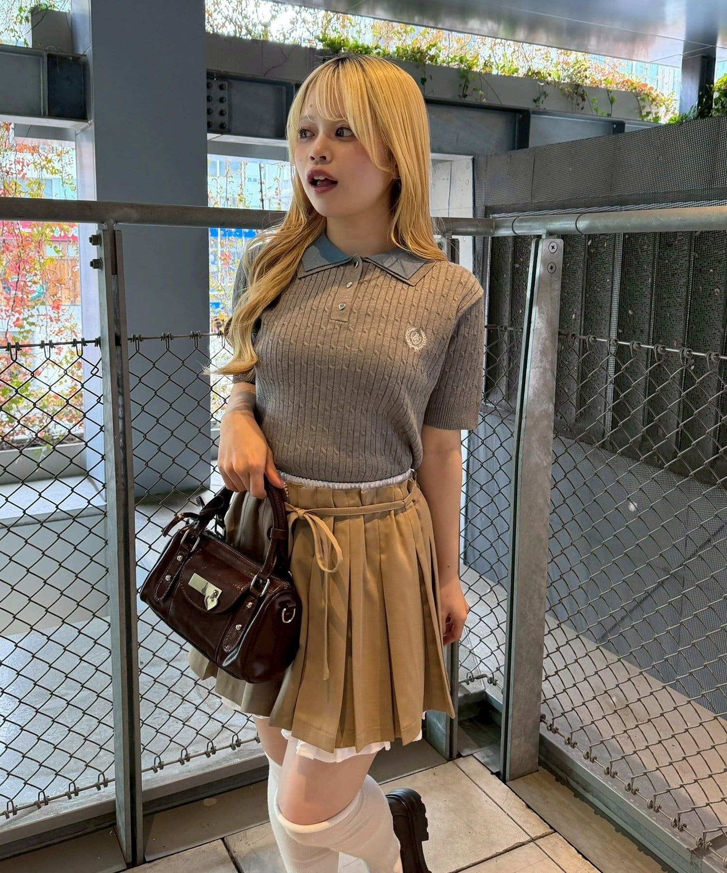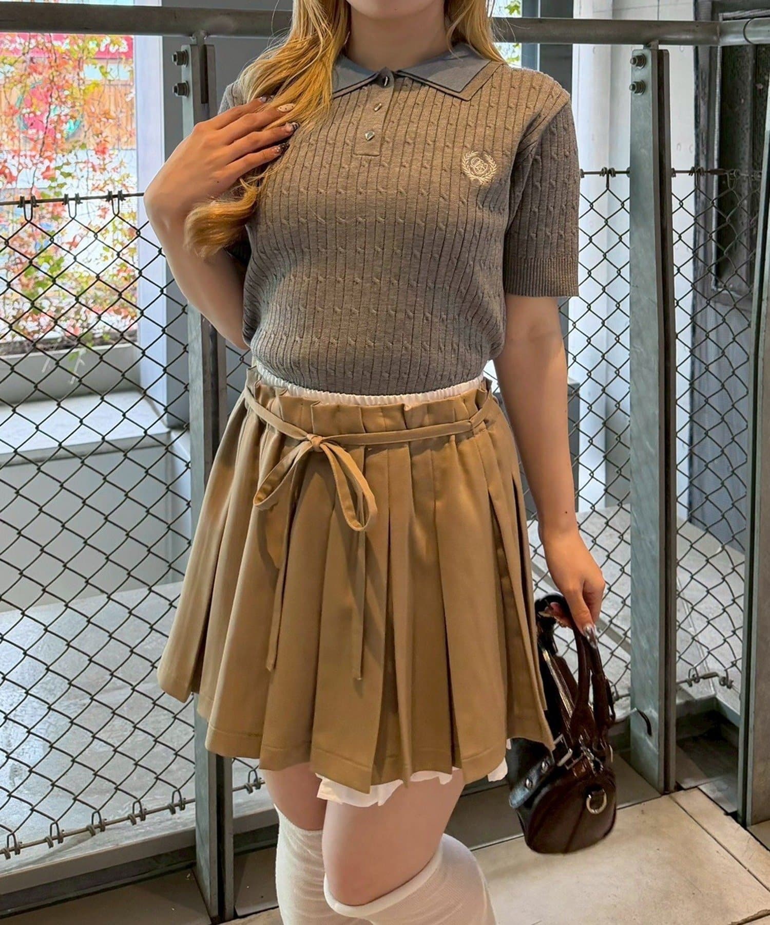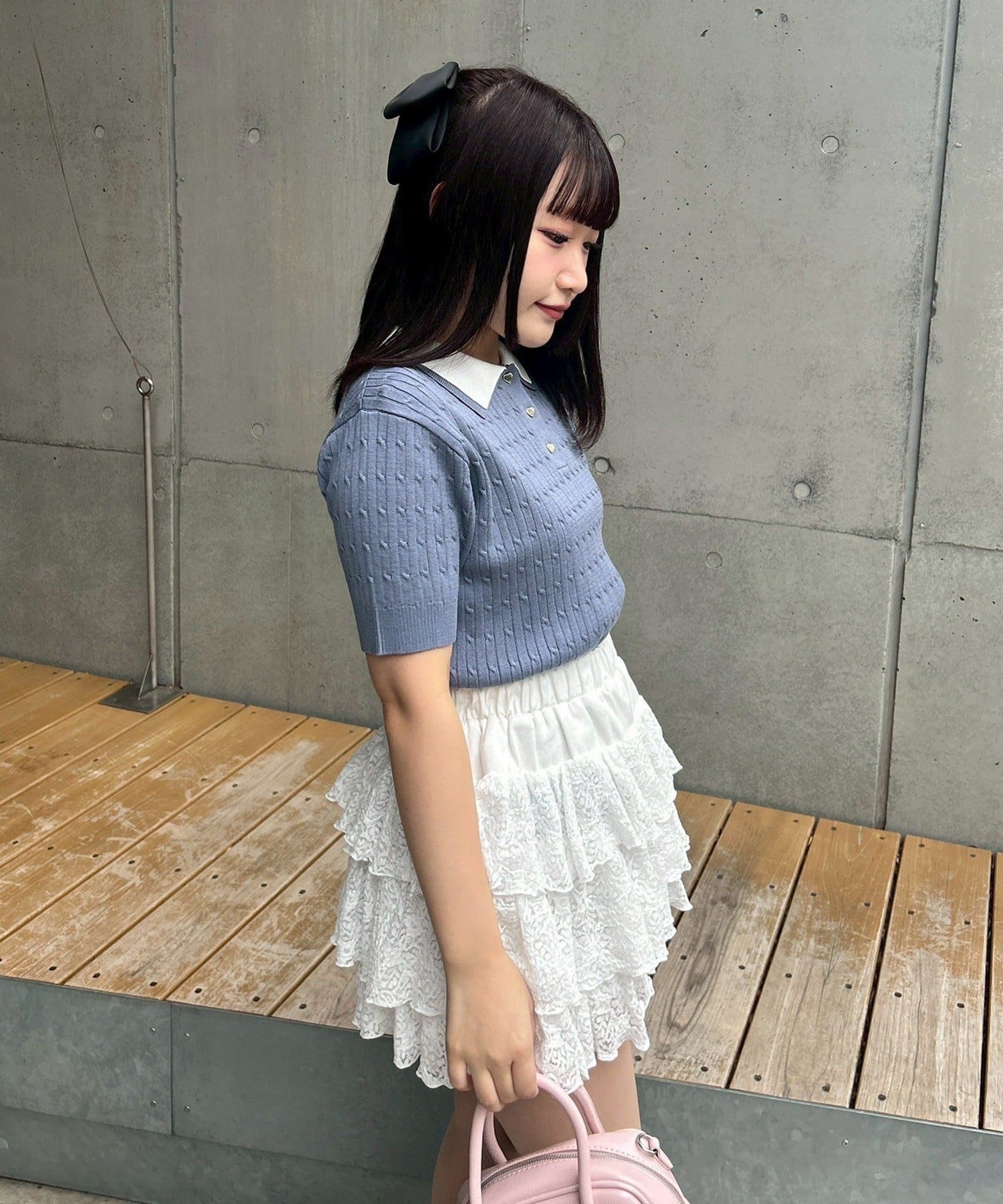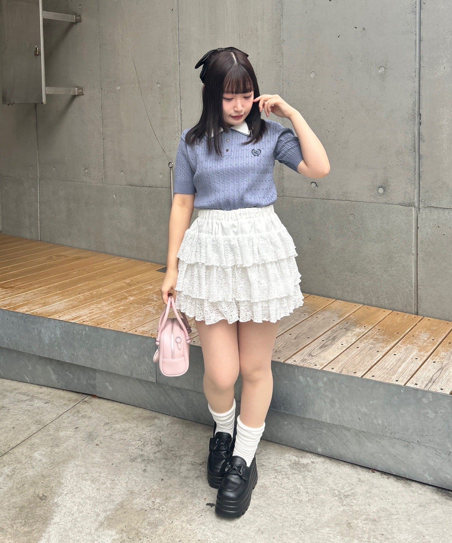 ・上品なケーブル編みが目を引く、大人可愛いポロニット