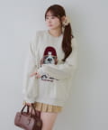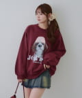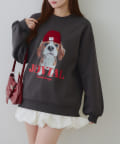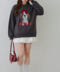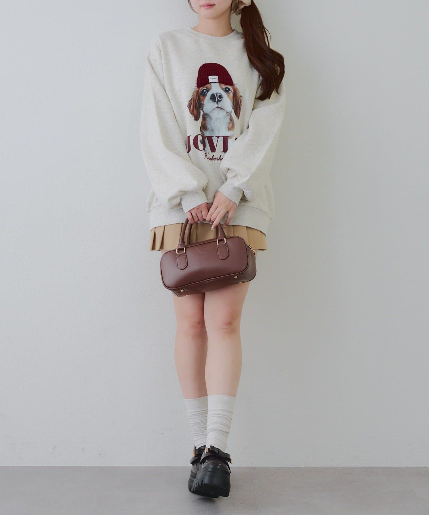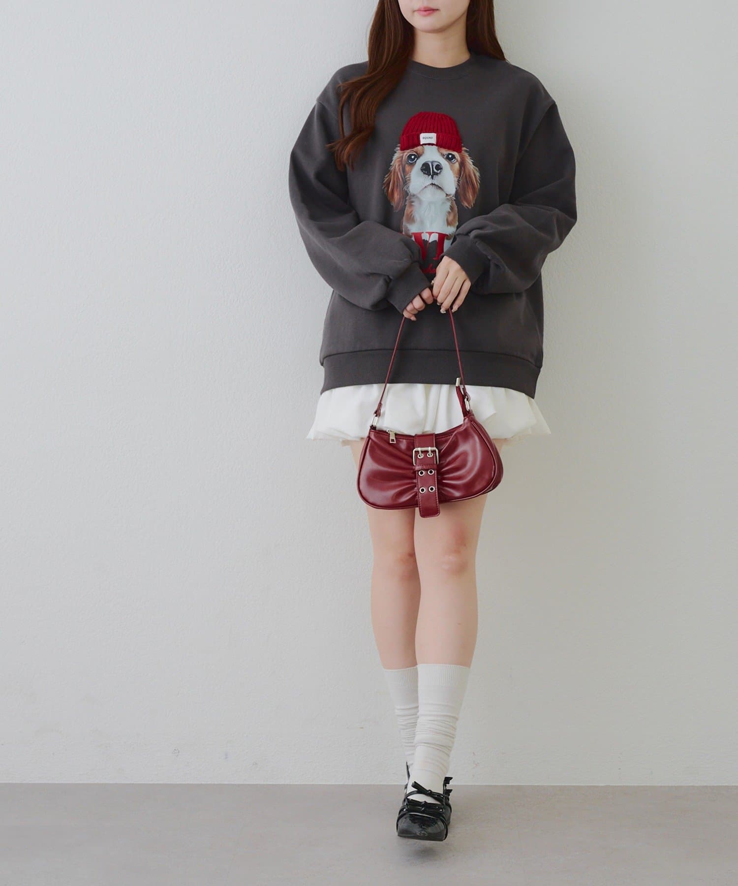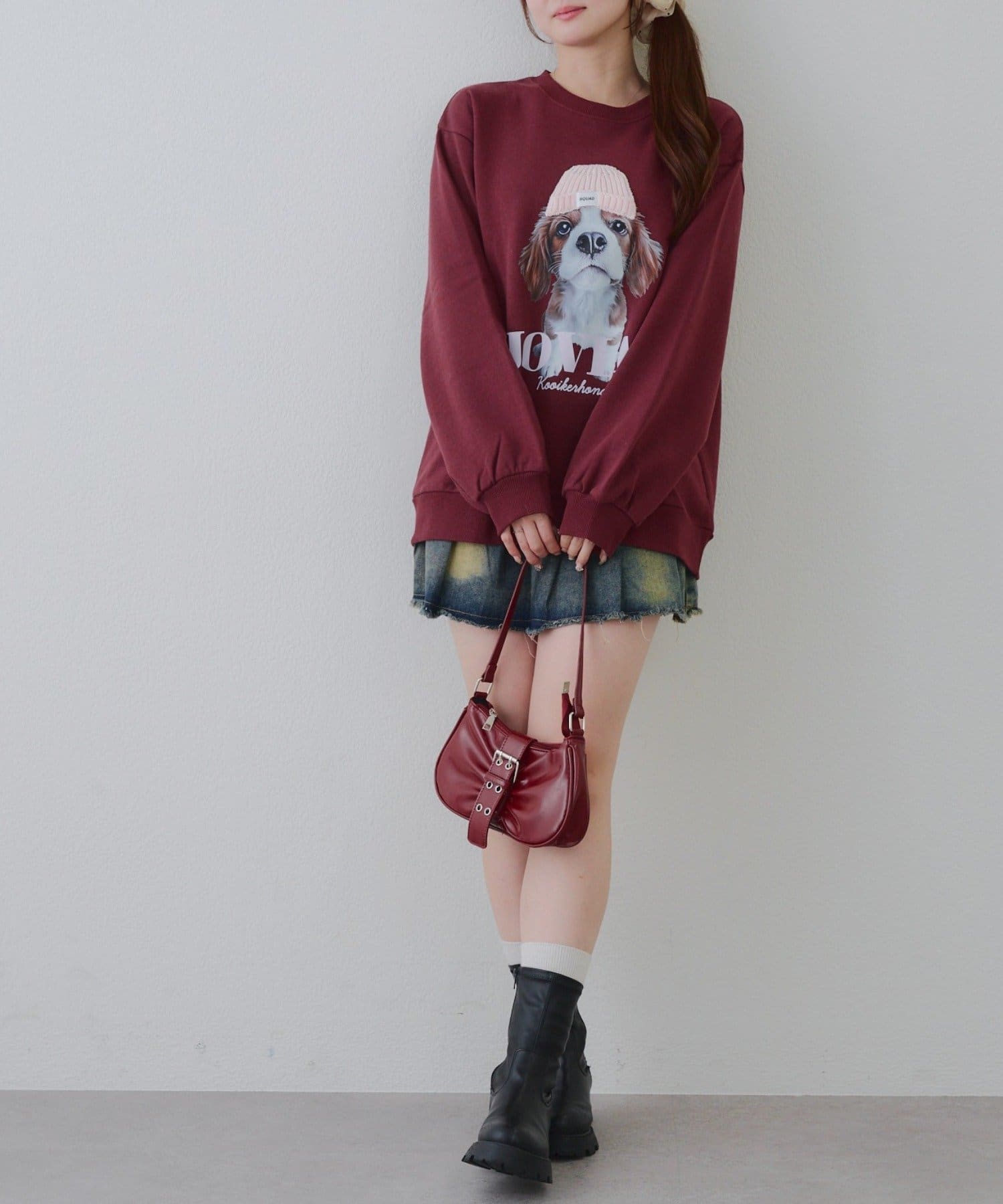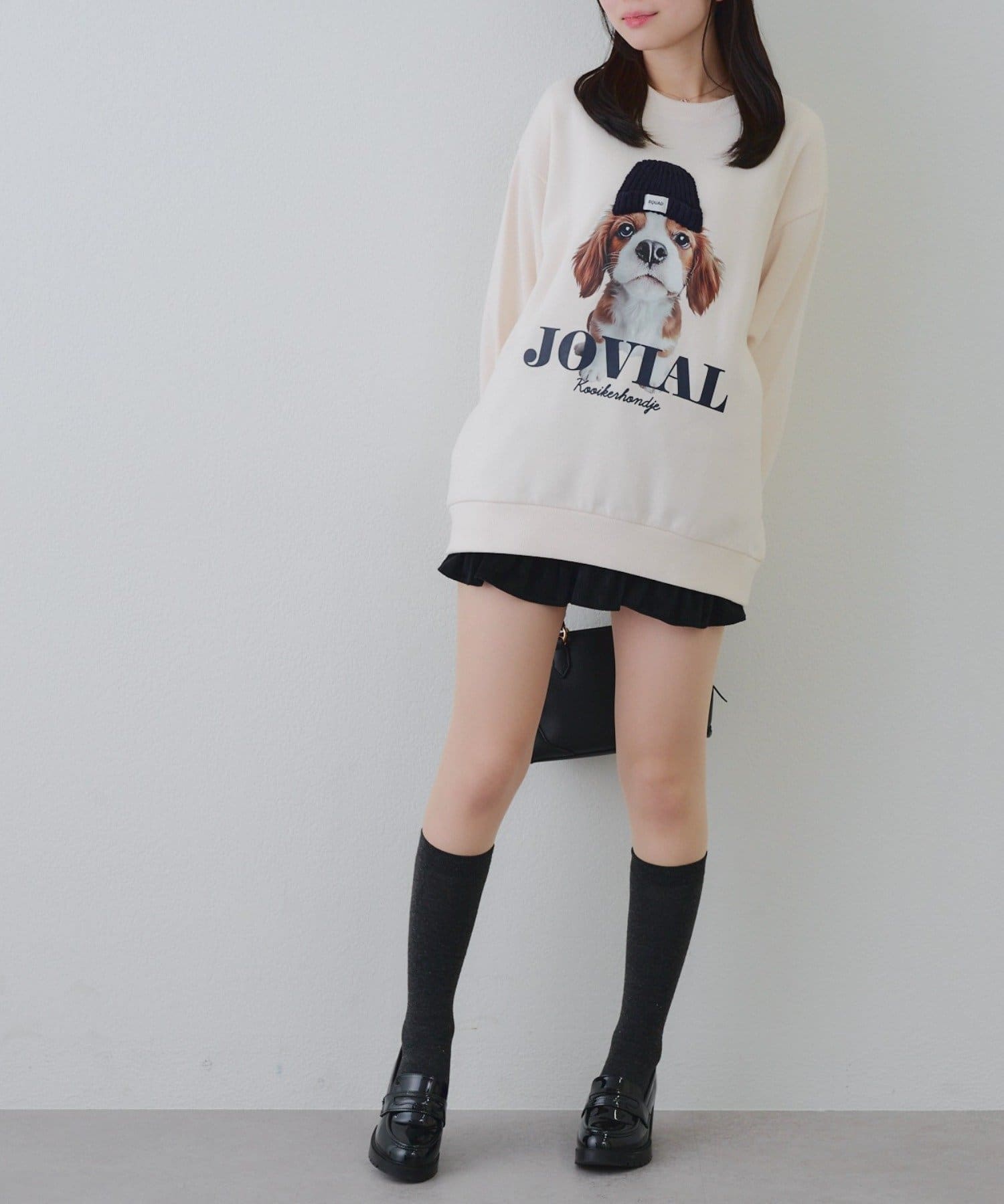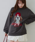 ・本物みたいなニット帽がユニークなデザインの犬プリントスウェット